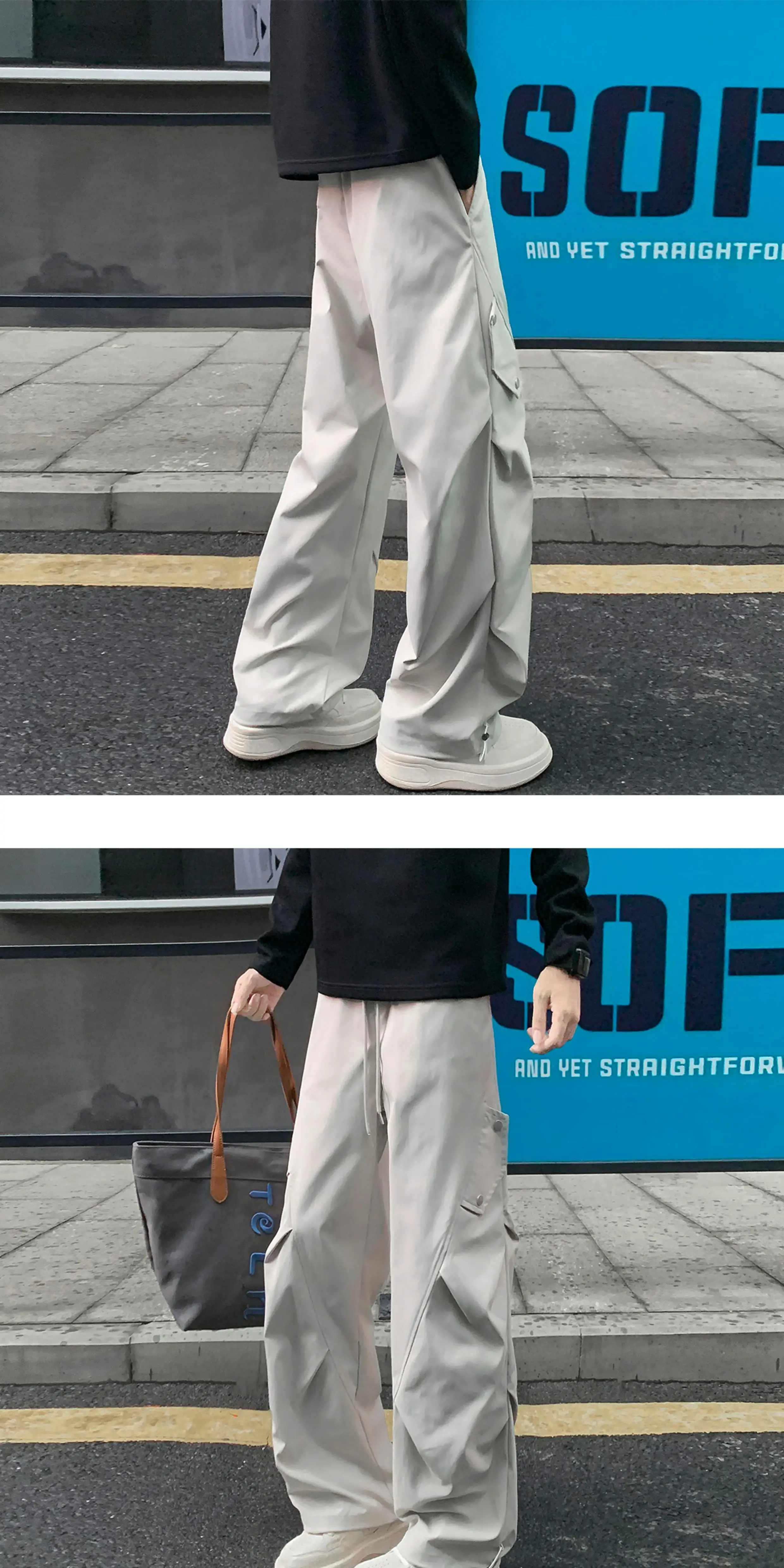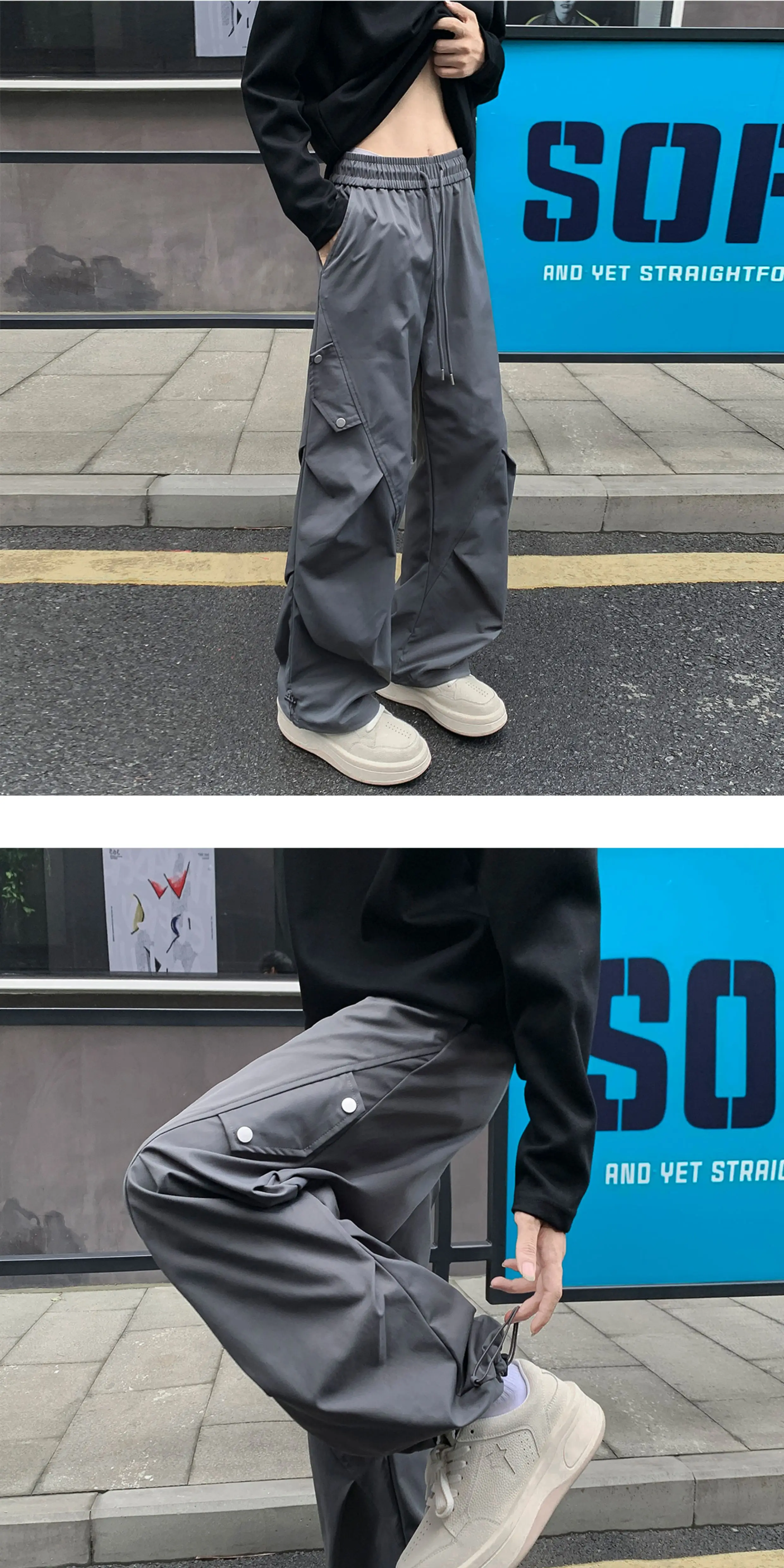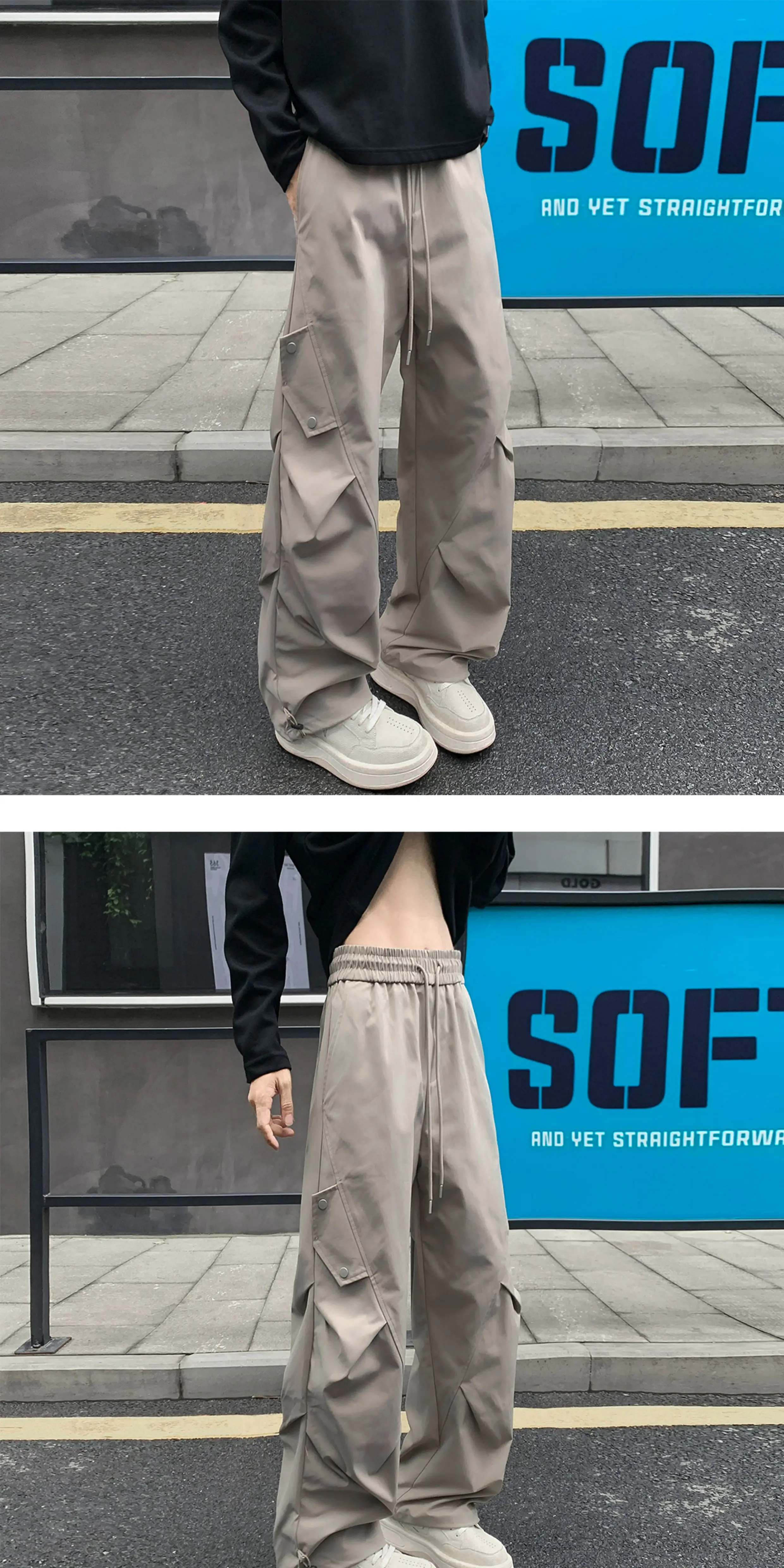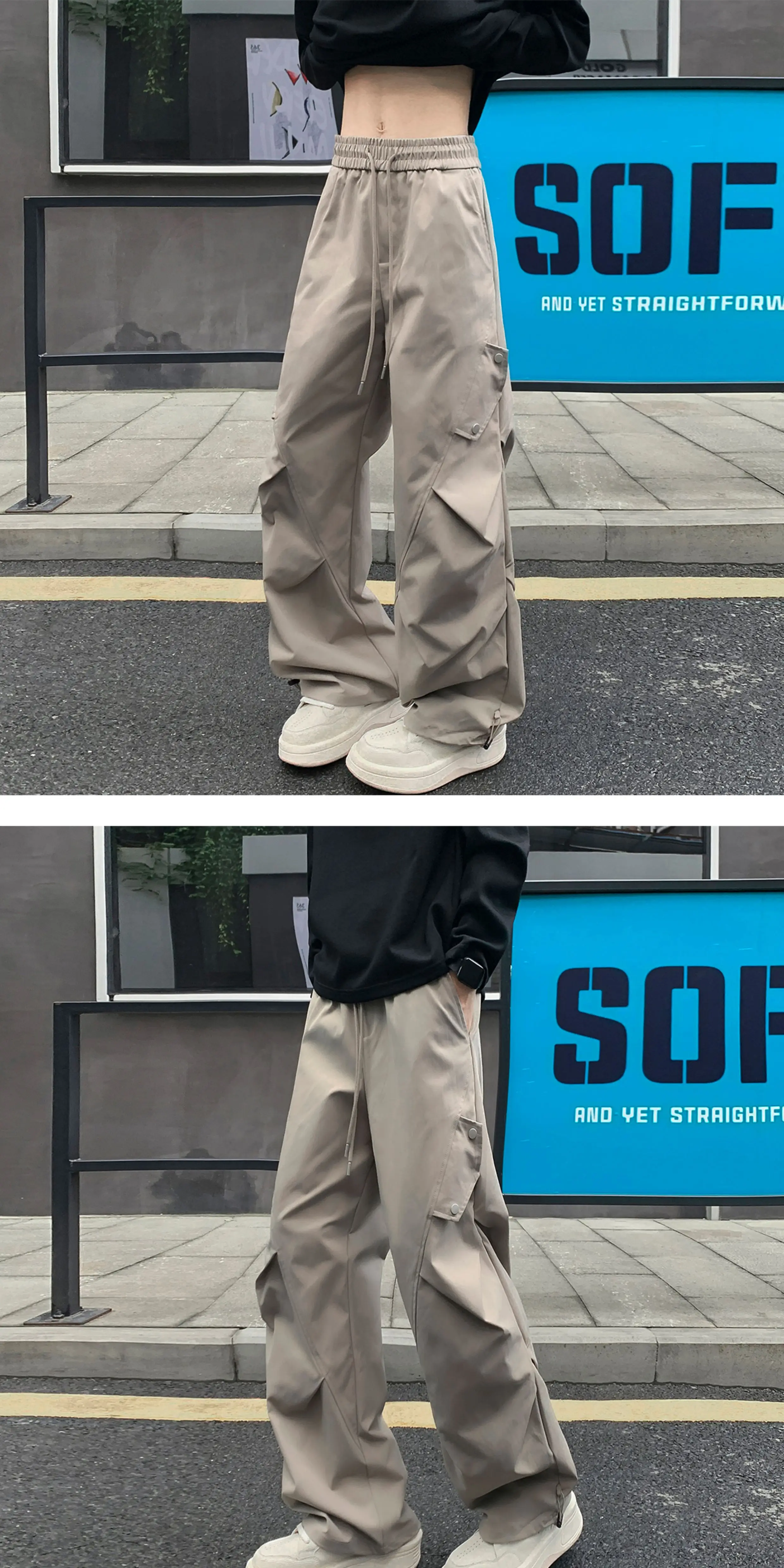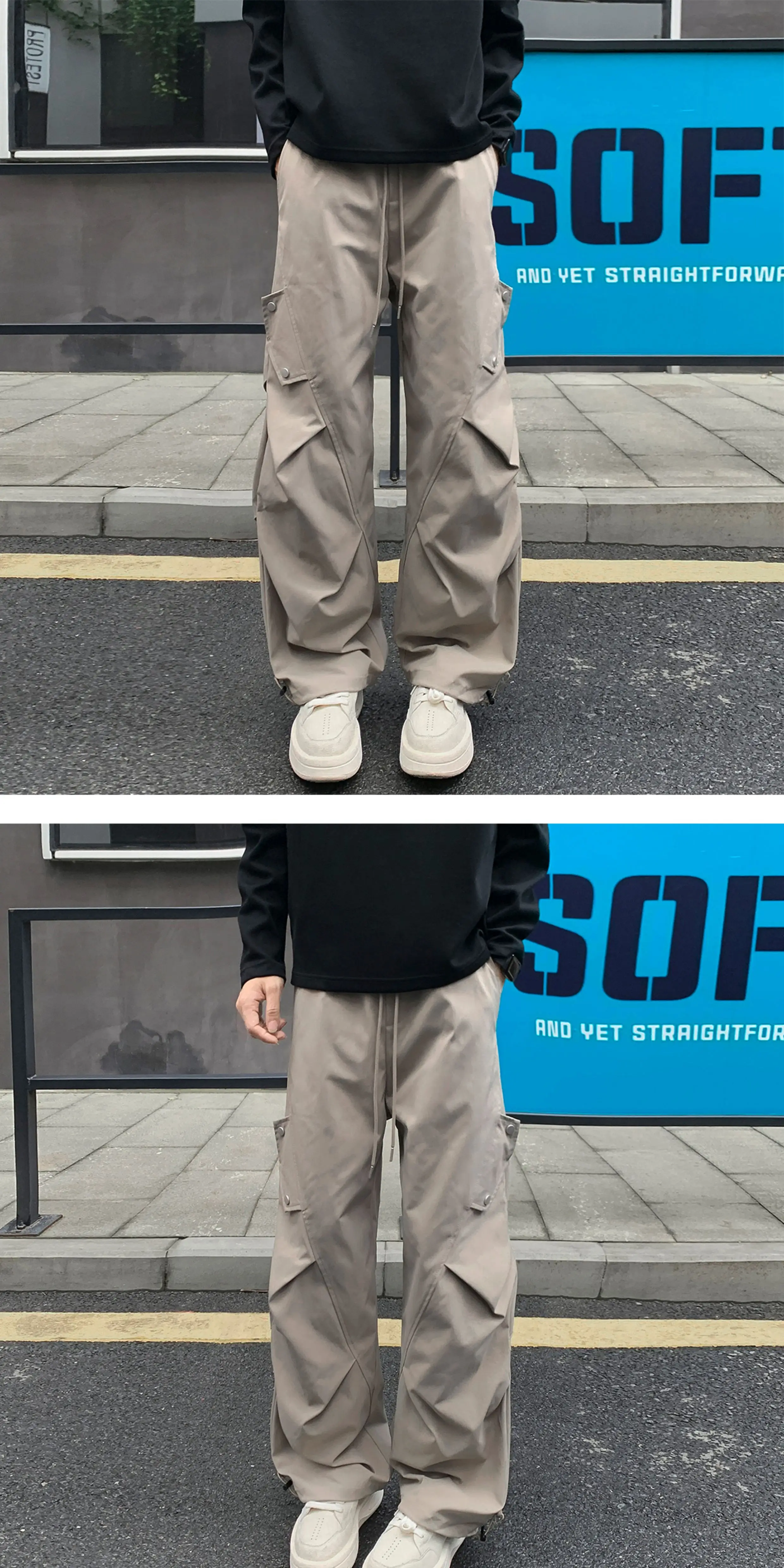 - Quần cargo dù thể thao kiểu Mỹ dành cho nam, quần ống đứng xếp ly thời trang xuân thu, quần jogger ống rộng cá tính.