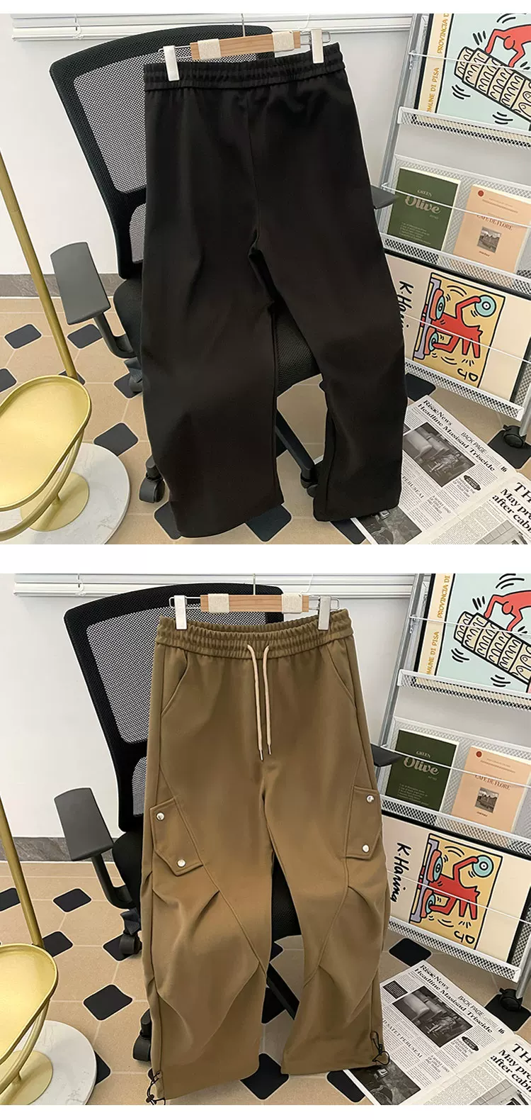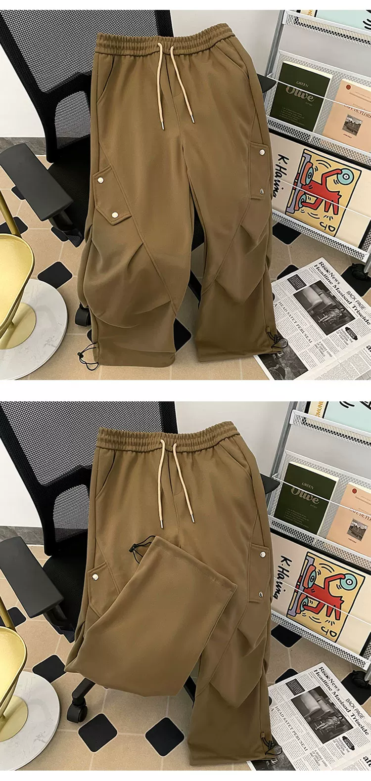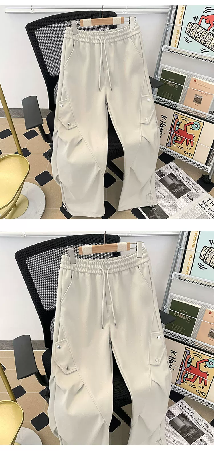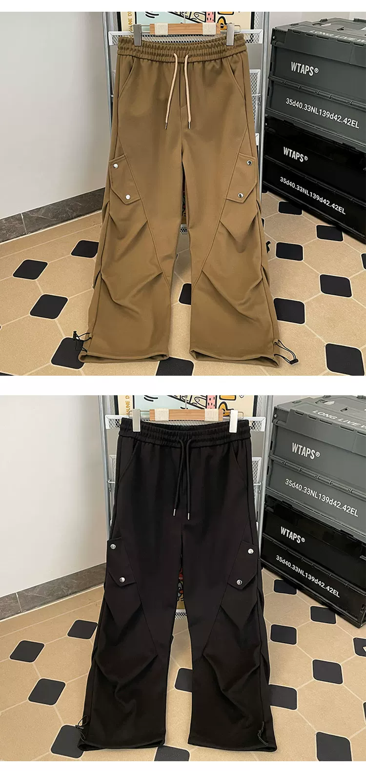 - Quần cargo lính dù xếp ly kiểu Mỹ dành cho nam, quần ống rộng phong cách thời thượng mùa xuân thu, quần dài thiết kế rộng rãi thoải mái.