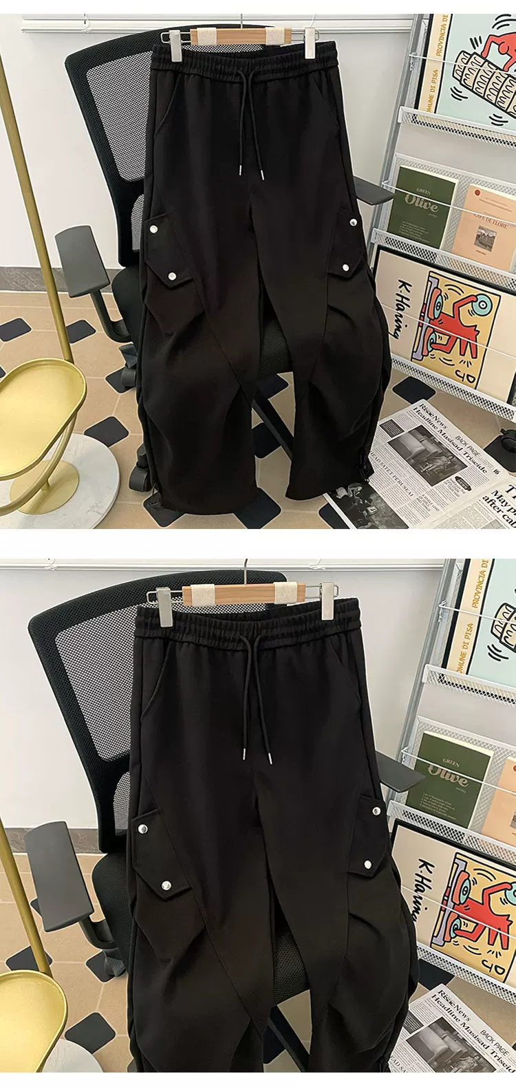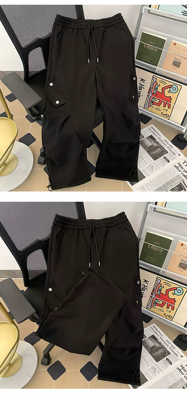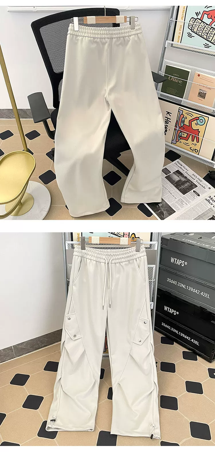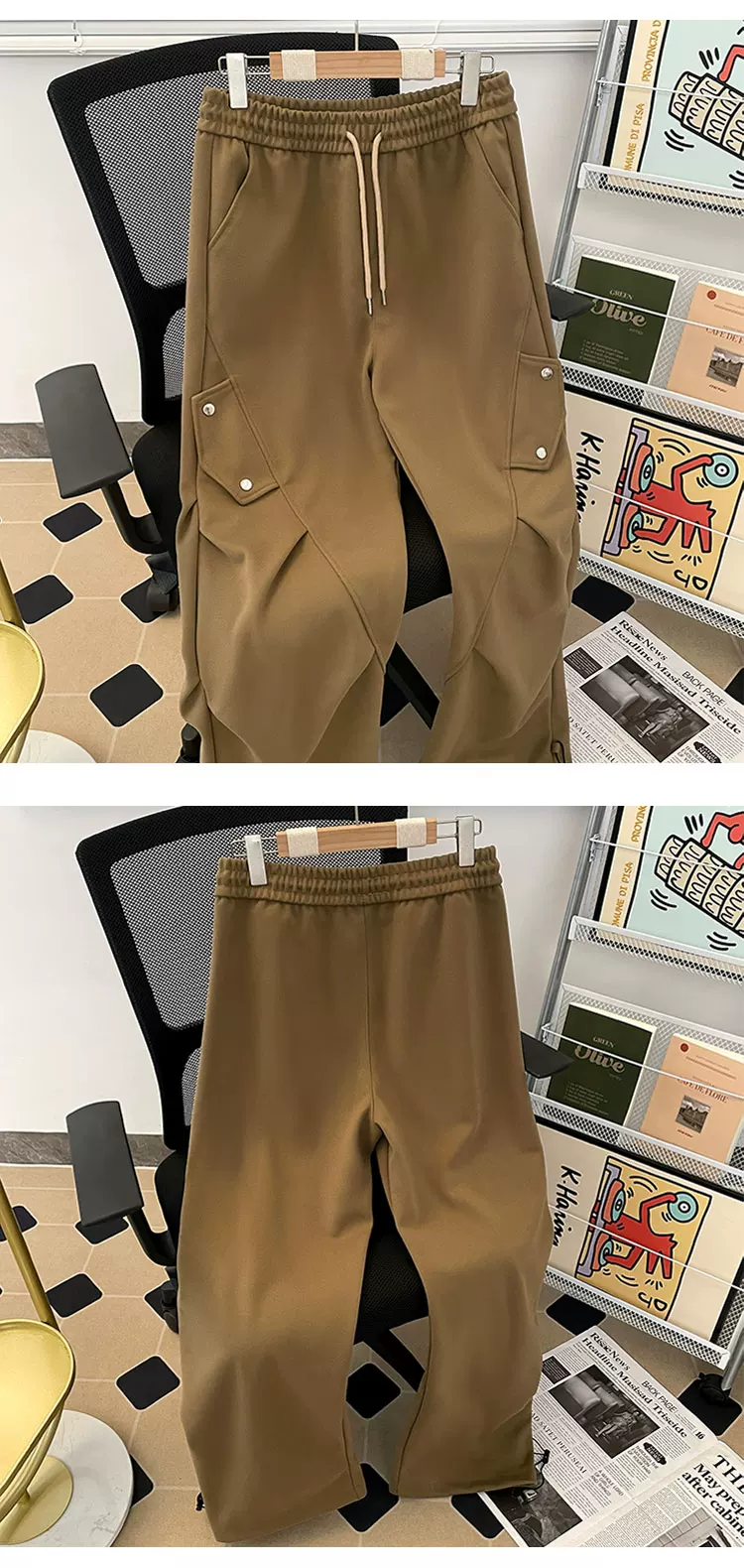 - Quần cargo lính dù xếp ly kiểu Mỹ dành cho nam, quần ống rộng phong cách thời thượng mùa xuân thu, quần dài thiết kế rộng rãi thoải mái.