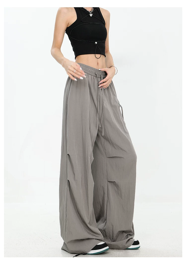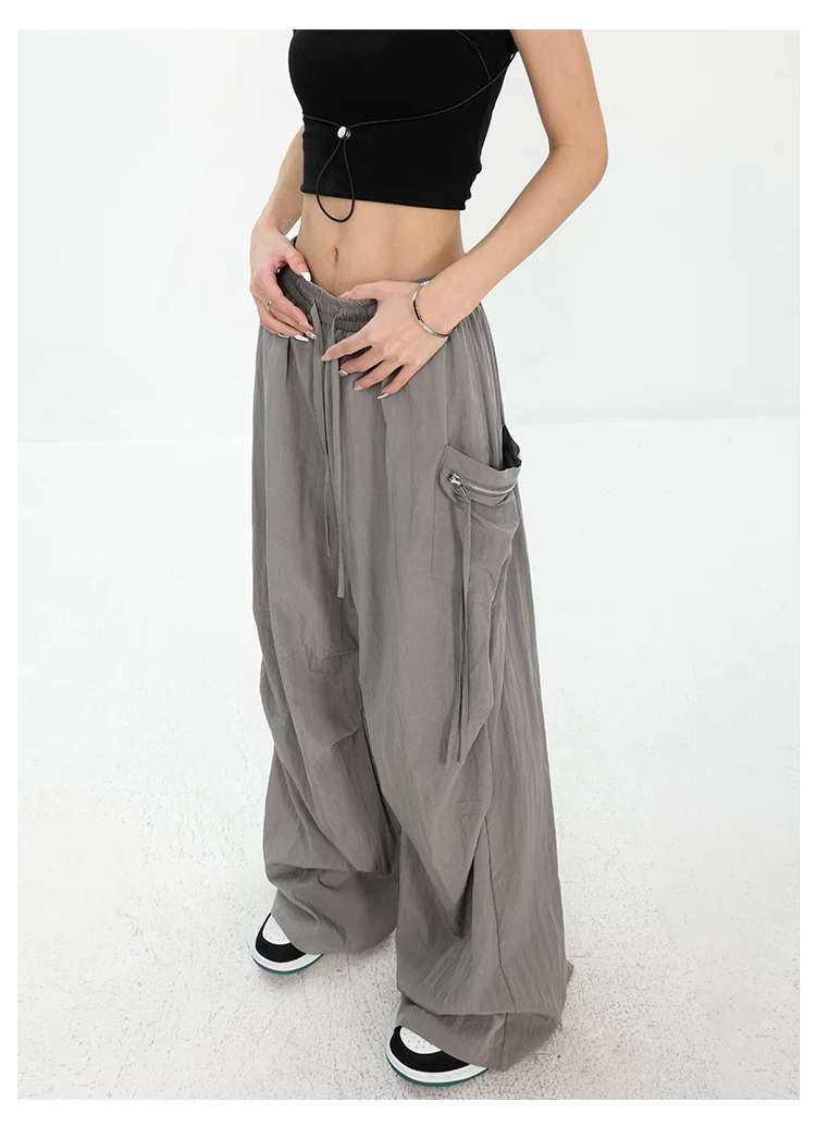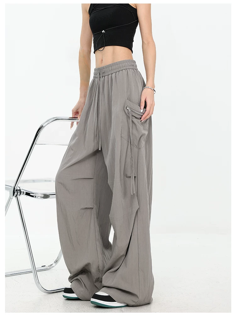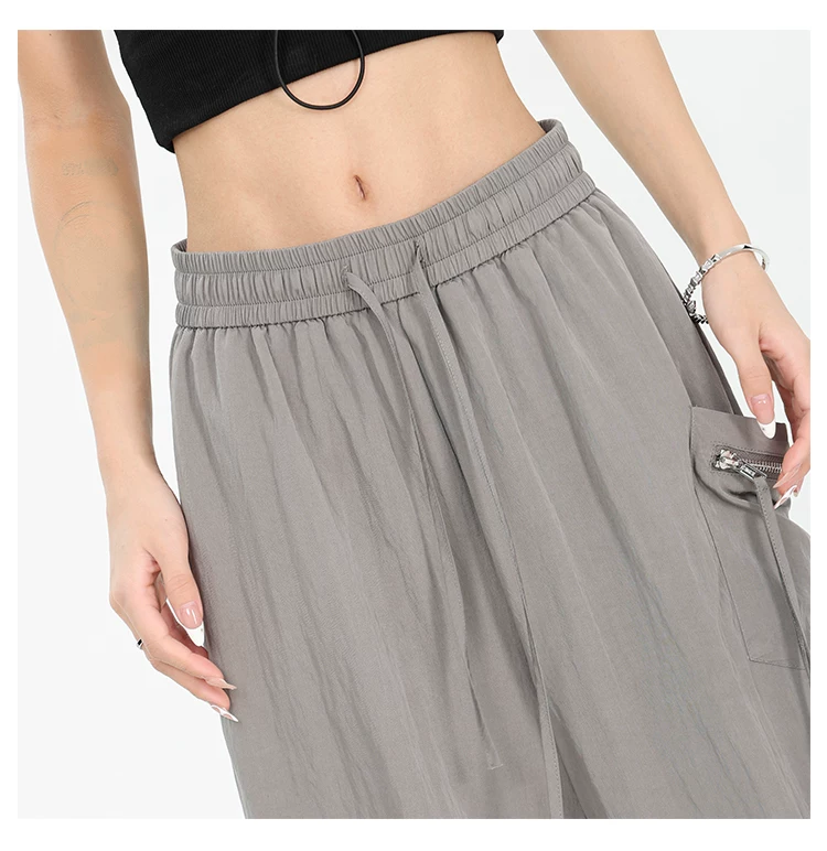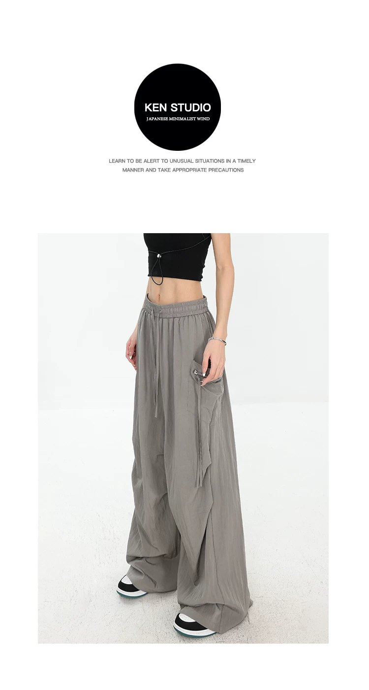 Quần cargo lụa băng thiết kế độc quyền của KEN STUDIO dành cho nữ, quần ống rộng dáng rộng mỏng nhẹ mùa hè.