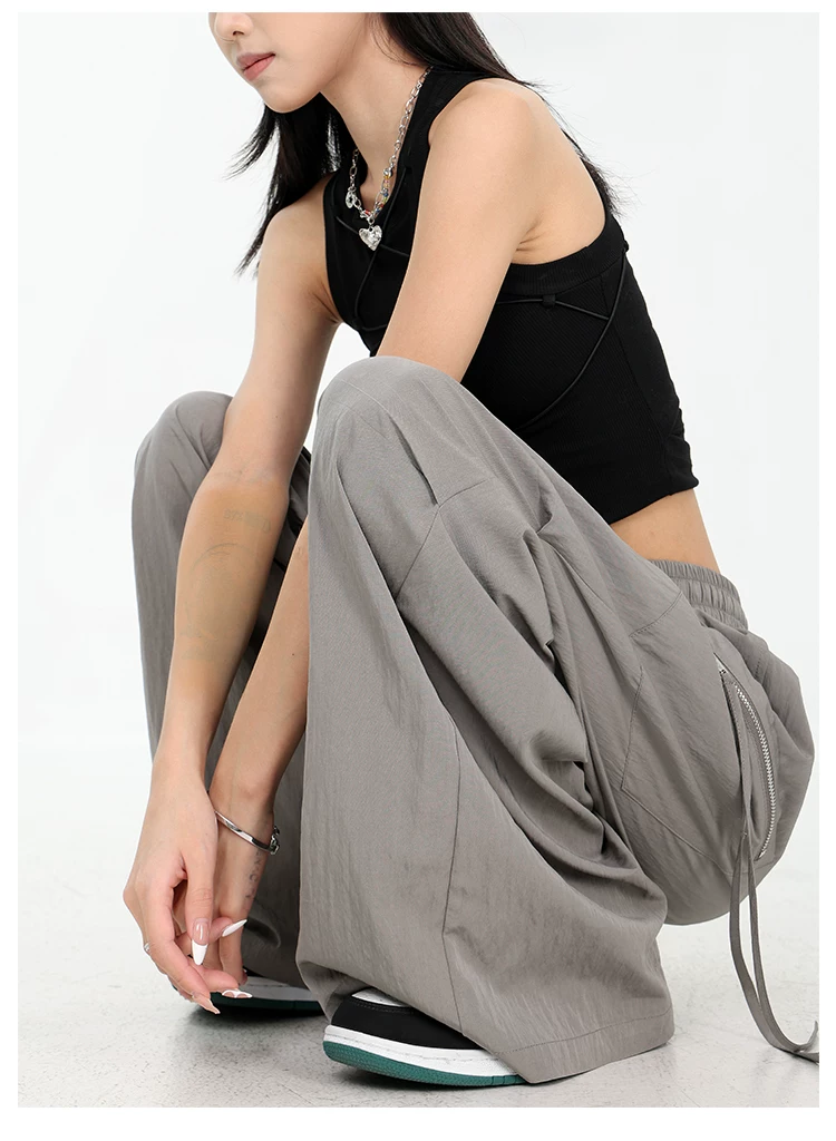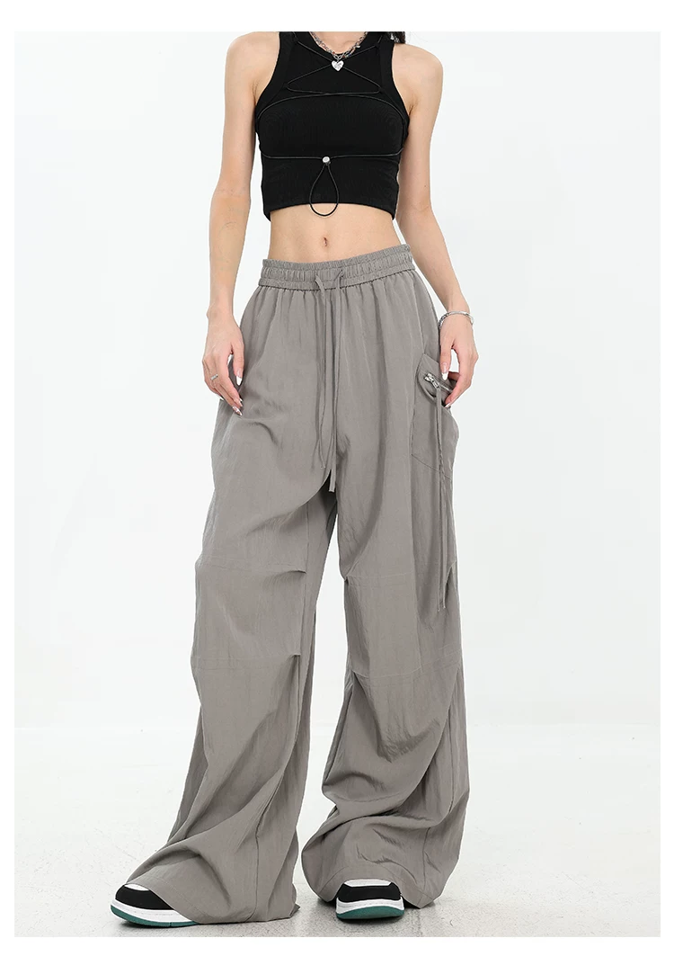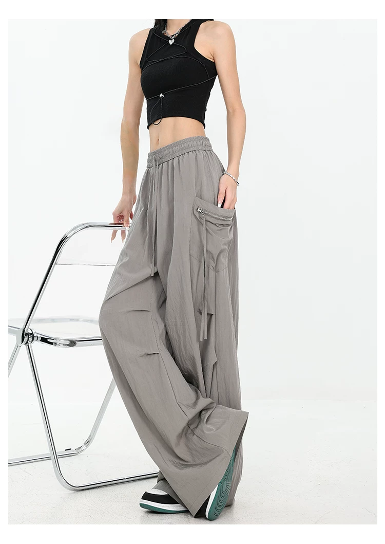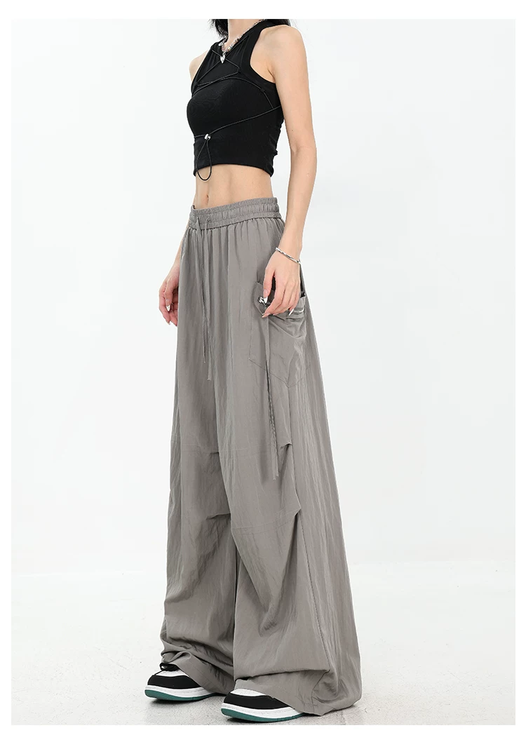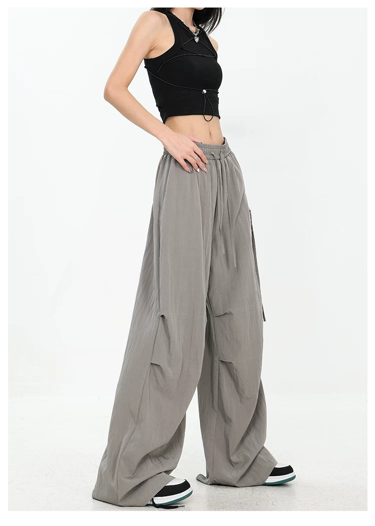 Quần cargo lụa băng thiết kế độc quyền của KEN STUDIO dành cho nữ, quần ống rộng dáng rộng mỏng nhẹ mùa hè.