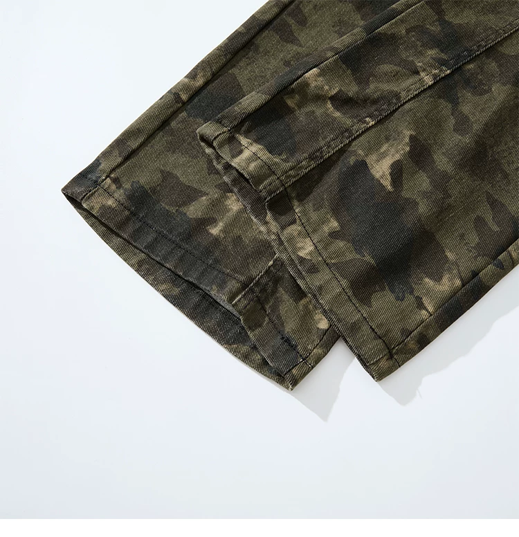 - Quần cargo nhiều túi họa tiết rằn ri dành cho nam, quần dài ống loe dáng thẳng phong cách hip-hop mùa hè, quần jeans retro hợp thời trang.