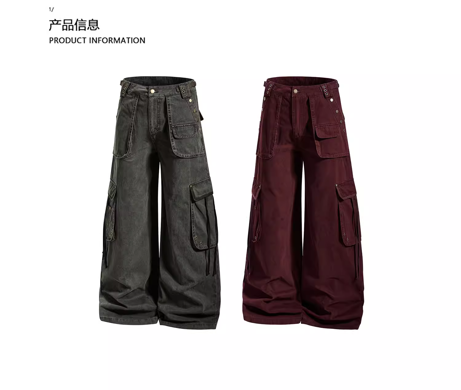 - Quần cargo nhiều túi kiểu Mỹ cổ điển K787 dành cho nam và nữ, quần ống rộng dáng xuông thời trang cao cấp, cạp cao, tôn dáng