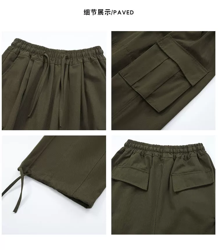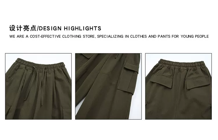 - Quần cargo nhiều túi kiểu Nhật dành cho nam, quần jogger dây rút mùa hè, quần ống đứng cao cấp dáng rộng thời thượng.