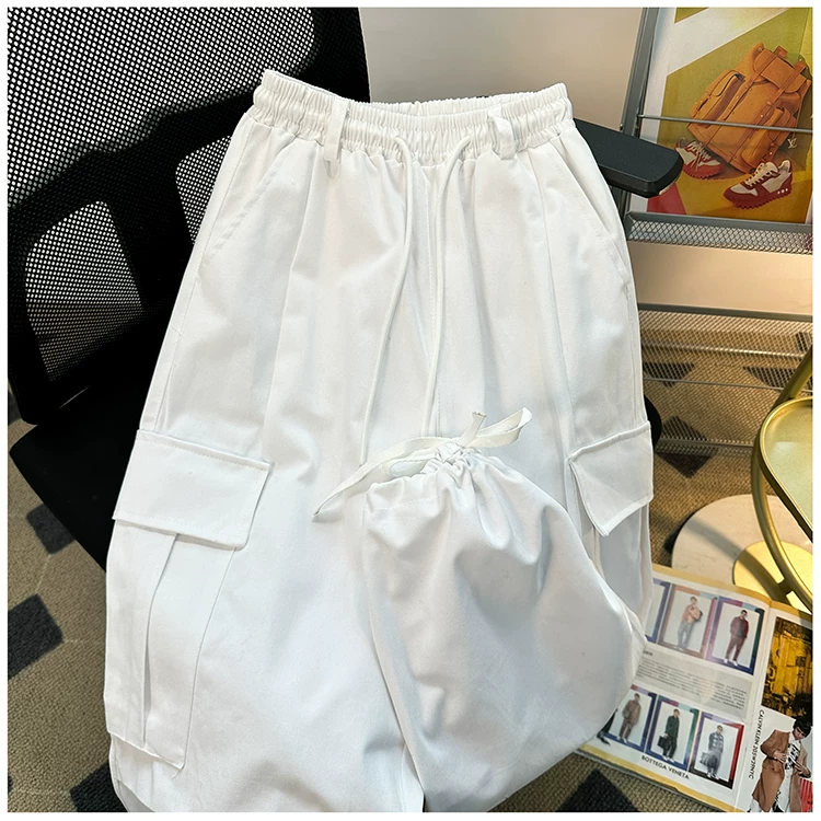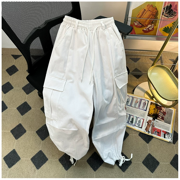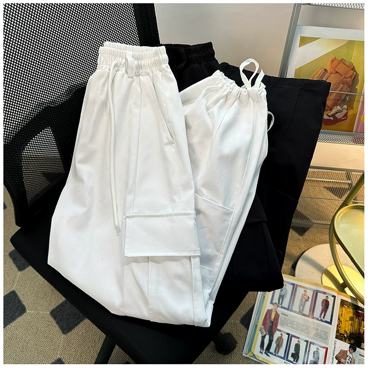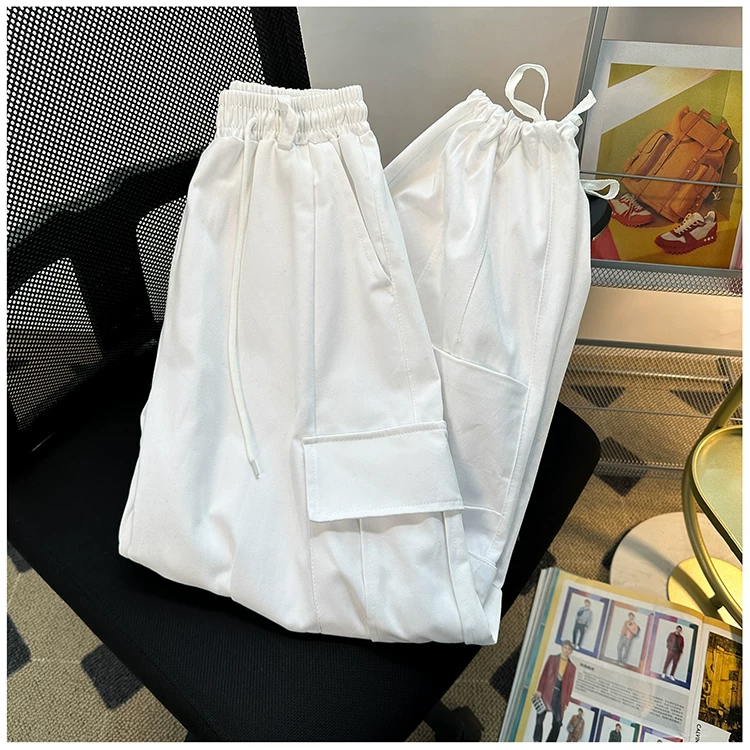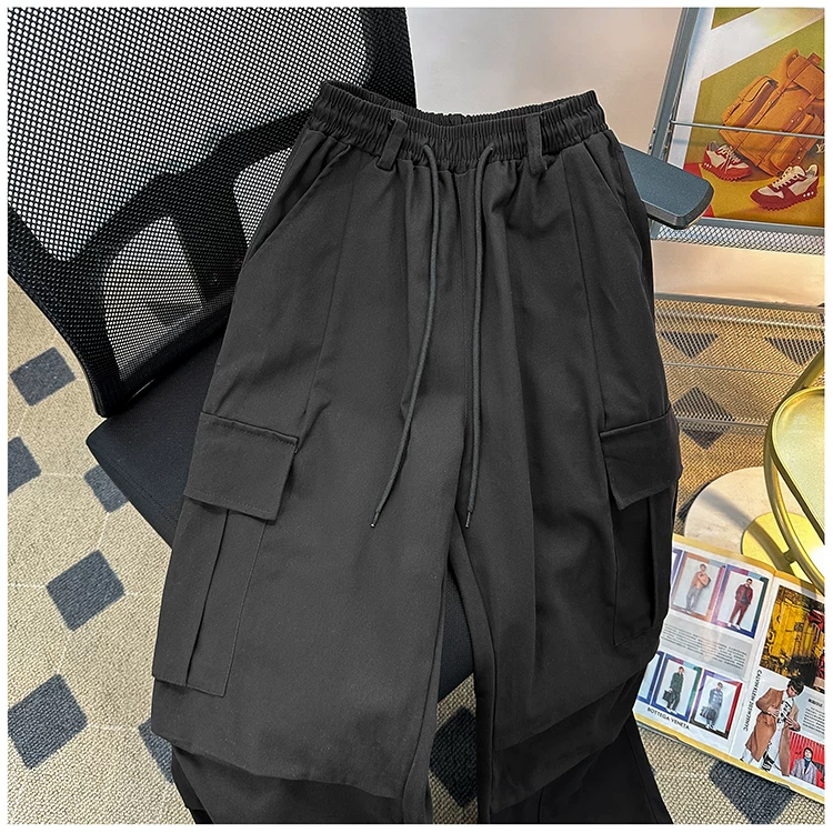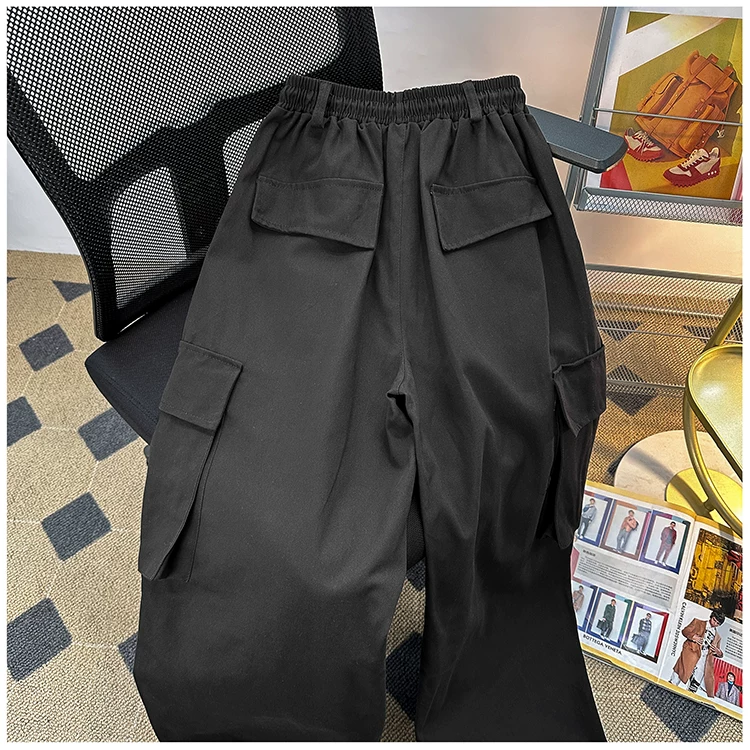 - Quần cargo nhiều túi thời thượng dành cho nam, phong cách thu mới, quần đôi phong cách hip-hop Mỹ, quần dài ống rộng thoải mái.
