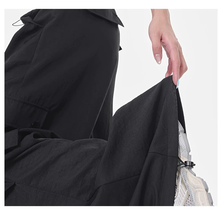 - Quần cargo ống rộng màu đen của KEN STUDIO dành cho nữ, quần ống đứng mỏng mùa hè, quần thể thao nhanh khô, quần lính dù
