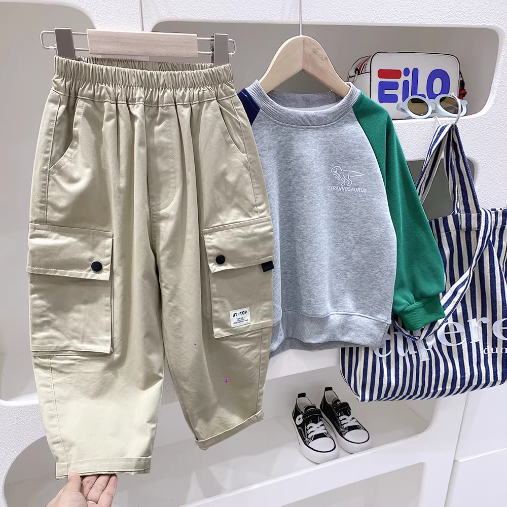 - Quần cargo trẻ em cho bé trai, kiểu mới xuân 2025, quần trẻ em đa năng, túi lớn, thời trang xuân thu cho bé