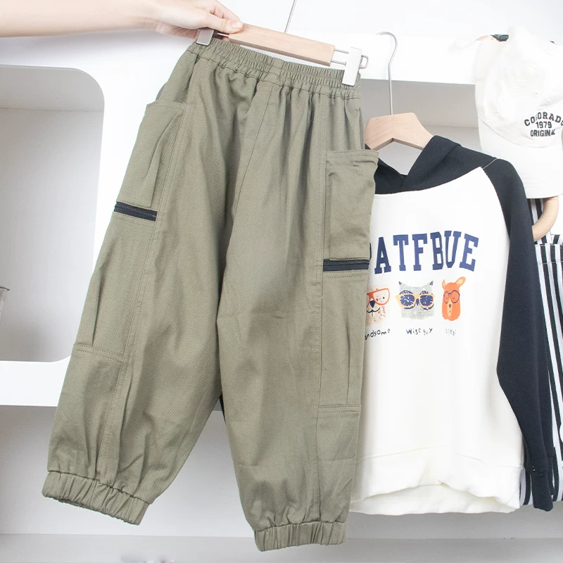 - Quần cargo túi lớn cho bé trai, quần cotton dệt thông thường, kiểu dáng xuân thu mới, quần dài rộng rãi cho trẻ lớn, kiểu dáng thời thượng.