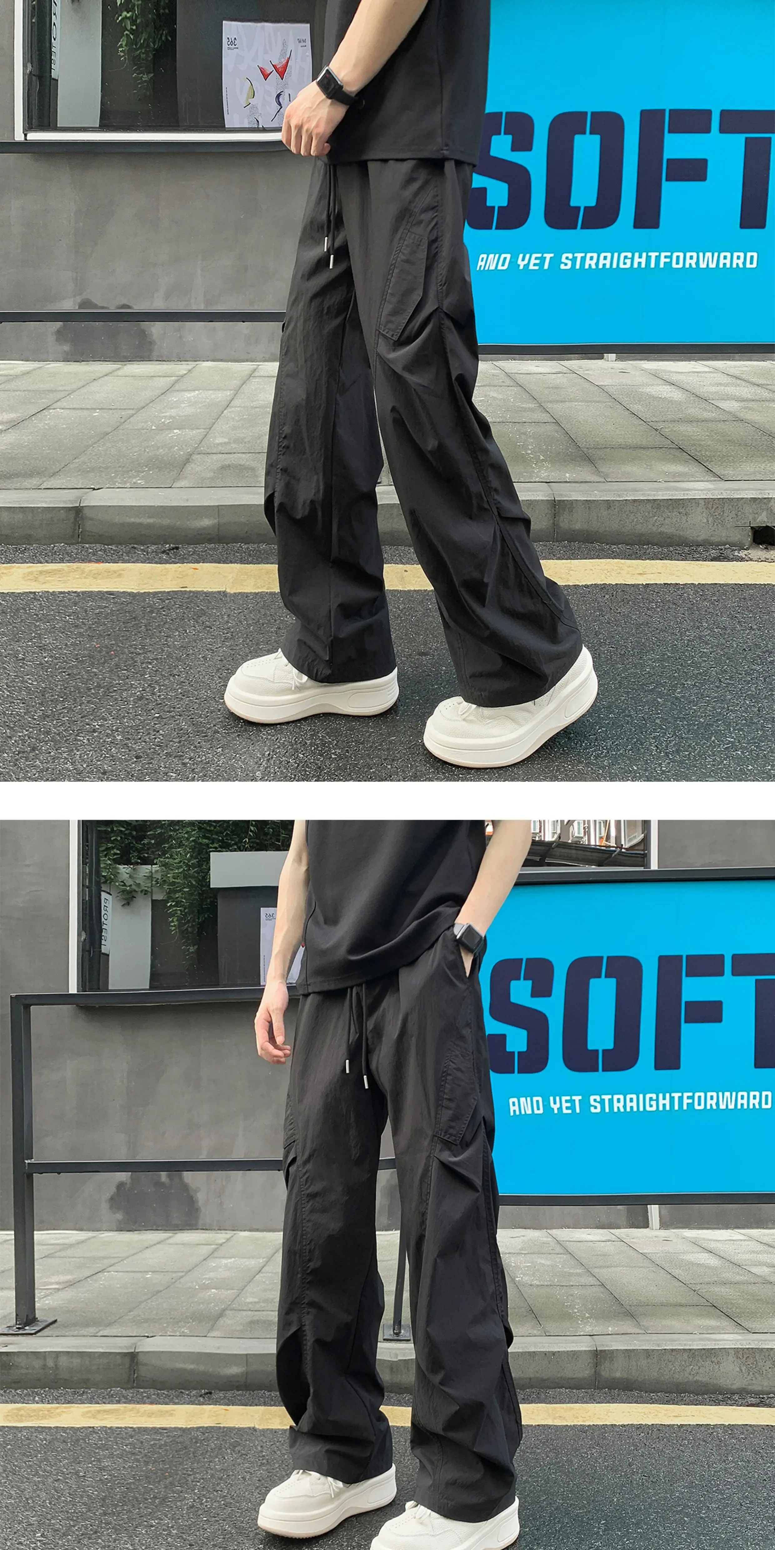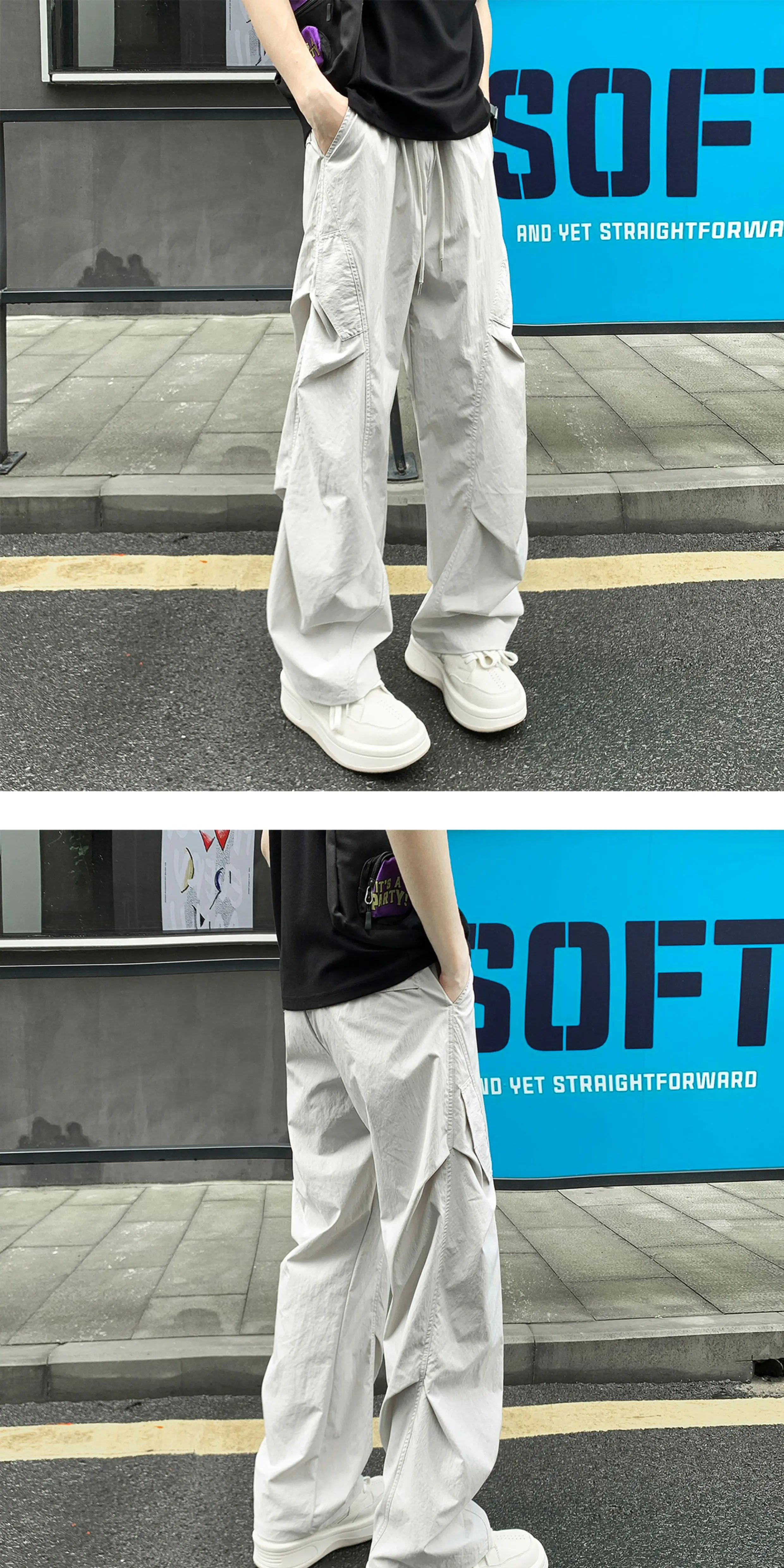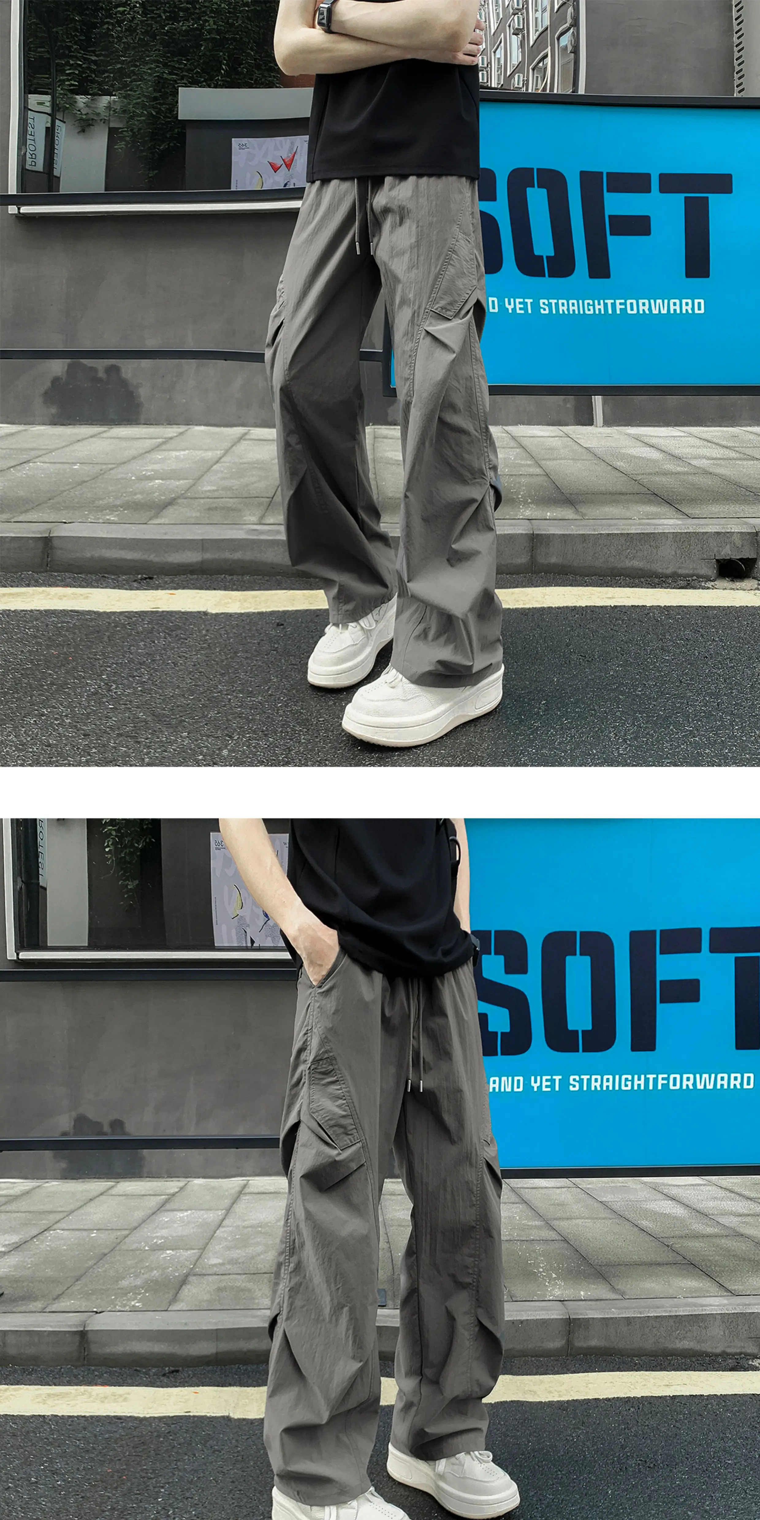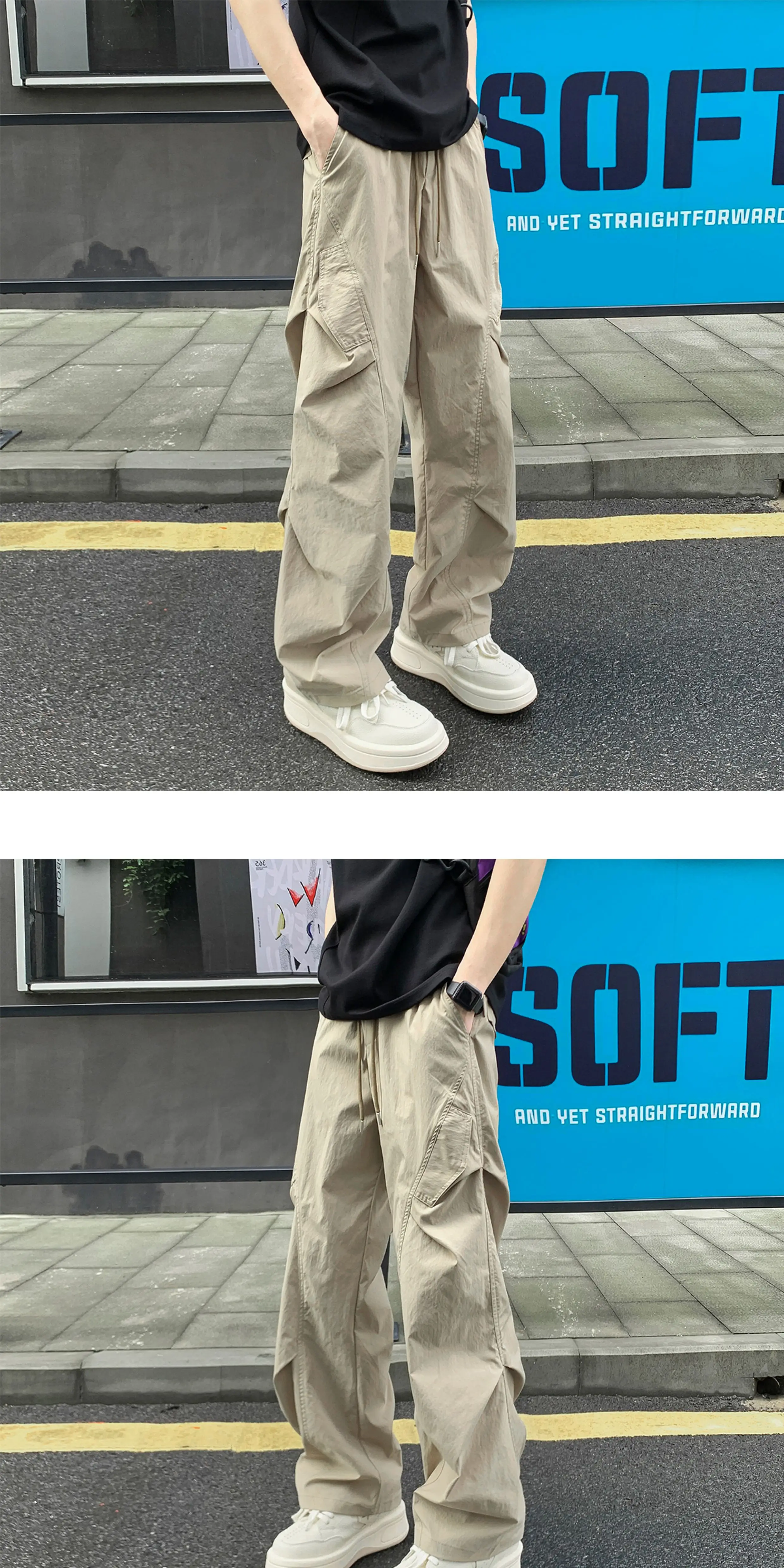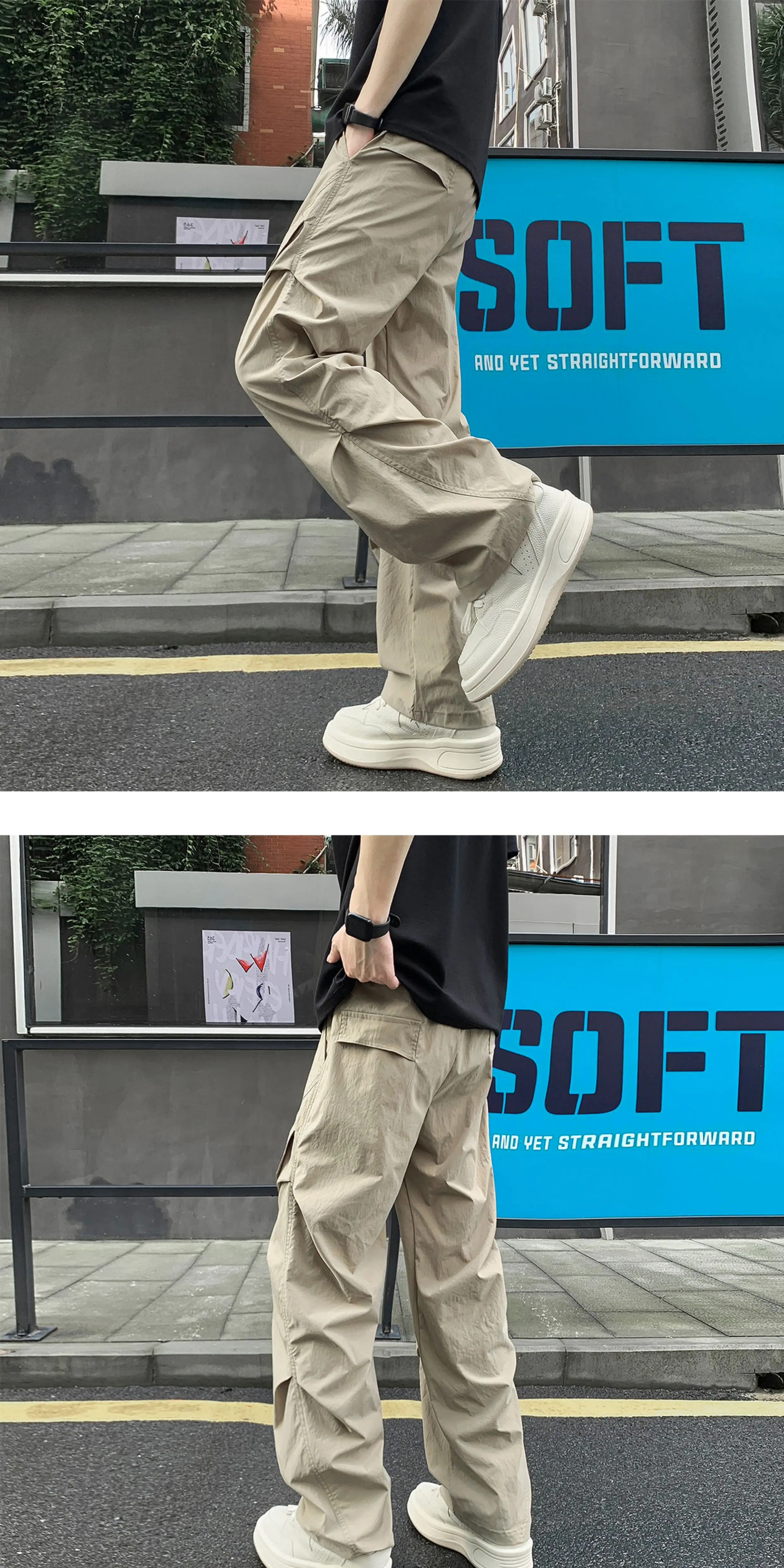 - Quần cargo xếp ly dành cho nam, thương hiệu thời thượng, quần thể thao ngoài trời ống đứng nhanh khô mùa thu.