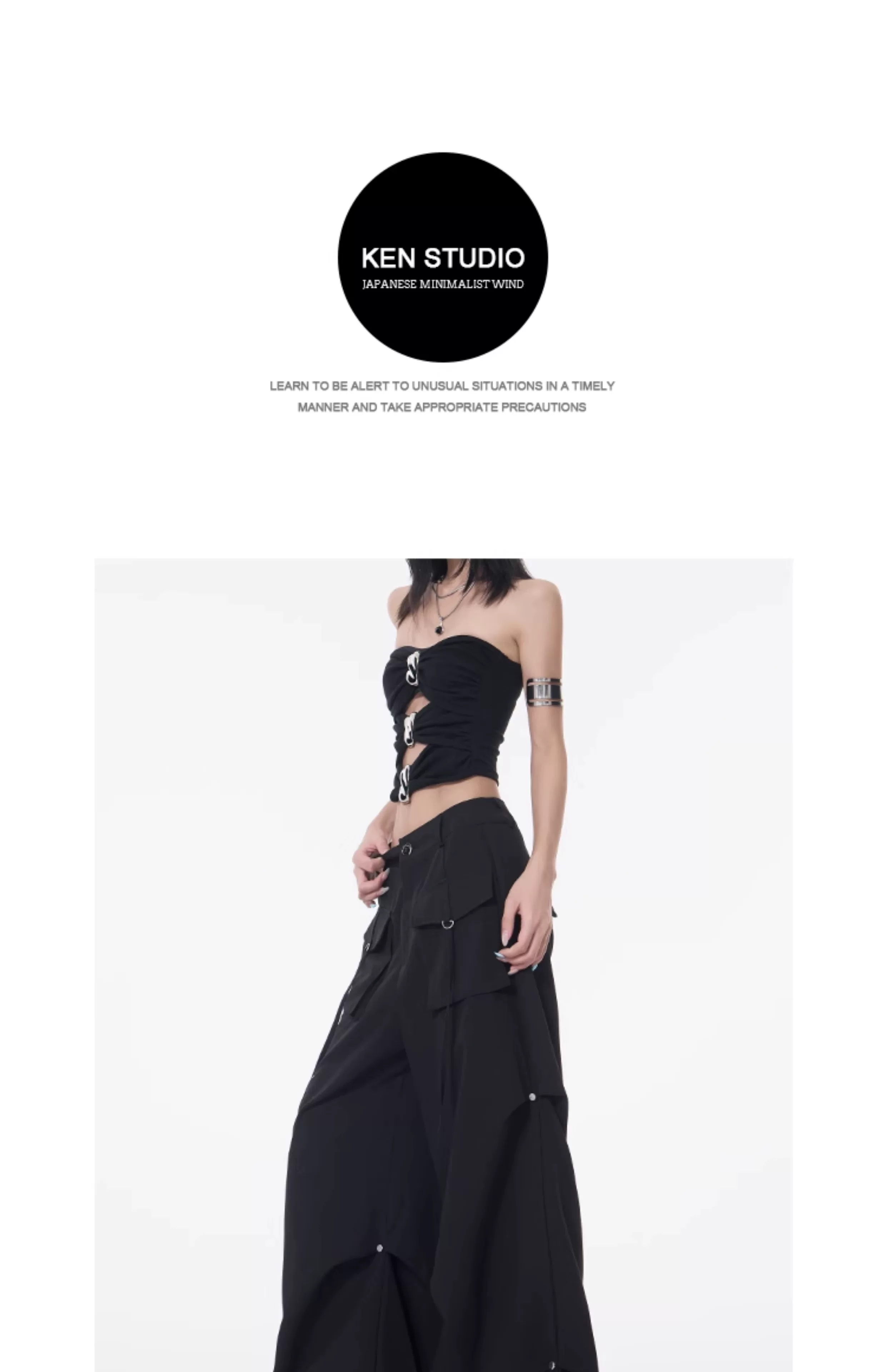 - Quần cargo xếp ly màu đen phong cách đường phố KEN STUDIO dành cho nữ, quần dài dáng rộng lưng cao mới mùa hè