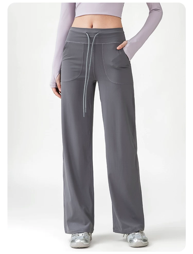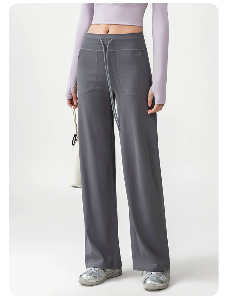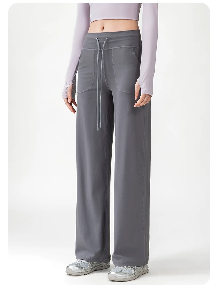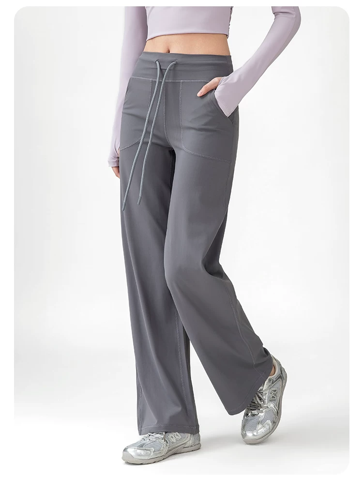 Quần chạy bộ ống rộng dáng suông, có hiệu ứng xếp ly, quần thể thao giúp thon gọn, quần tập yoga ống rộng size lớn