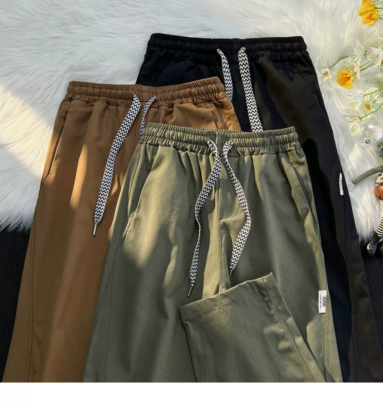 - Quần công sở màu trơn cơ bản mùa xuân thu thương hiệu thời trang phong cách Nhật Bản quần nam giản dị đa năng quần dài ống rộng