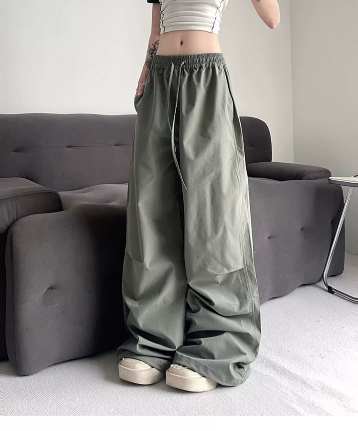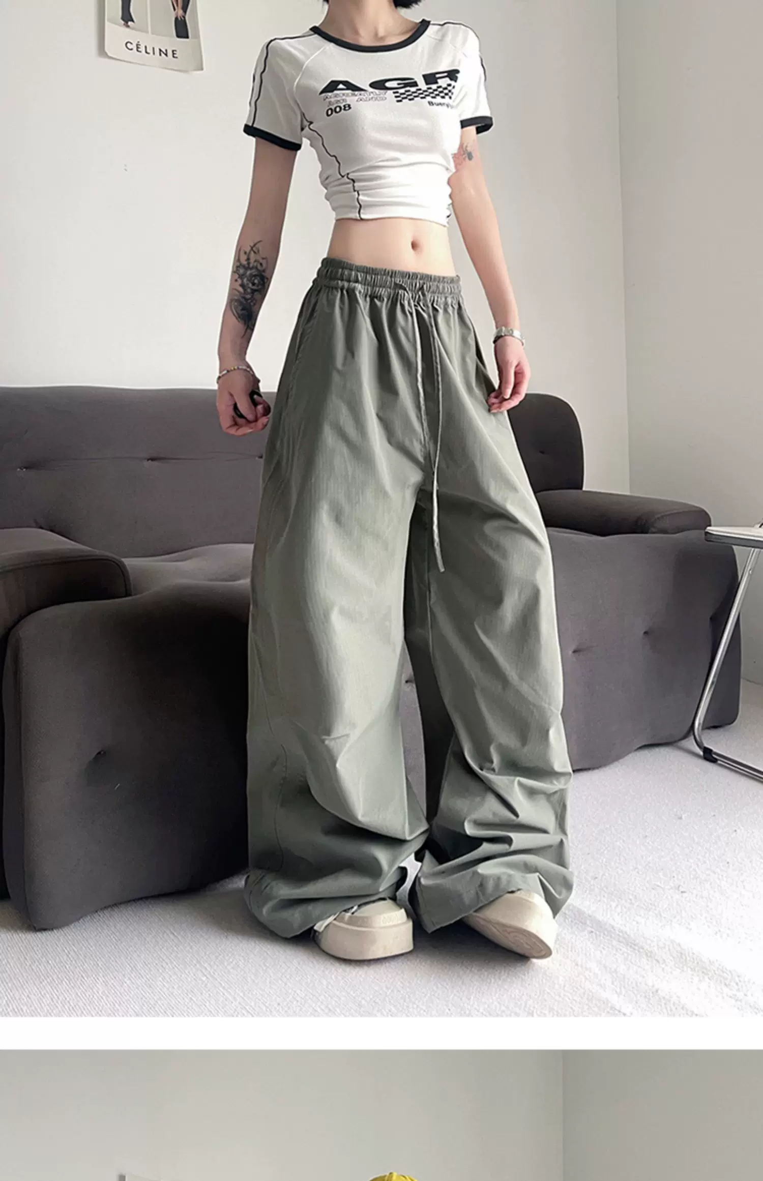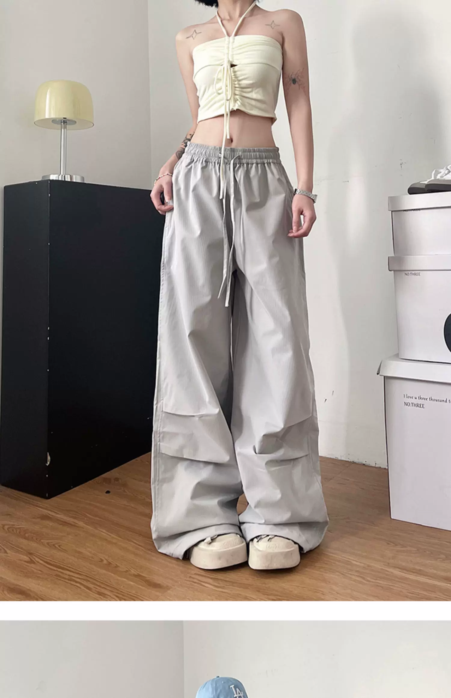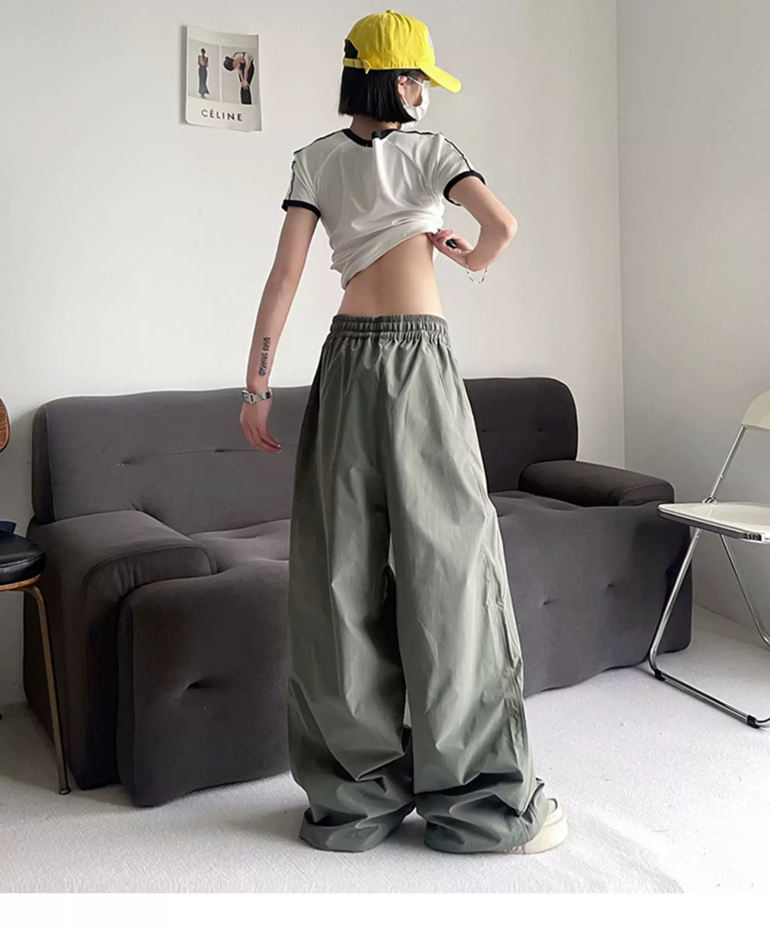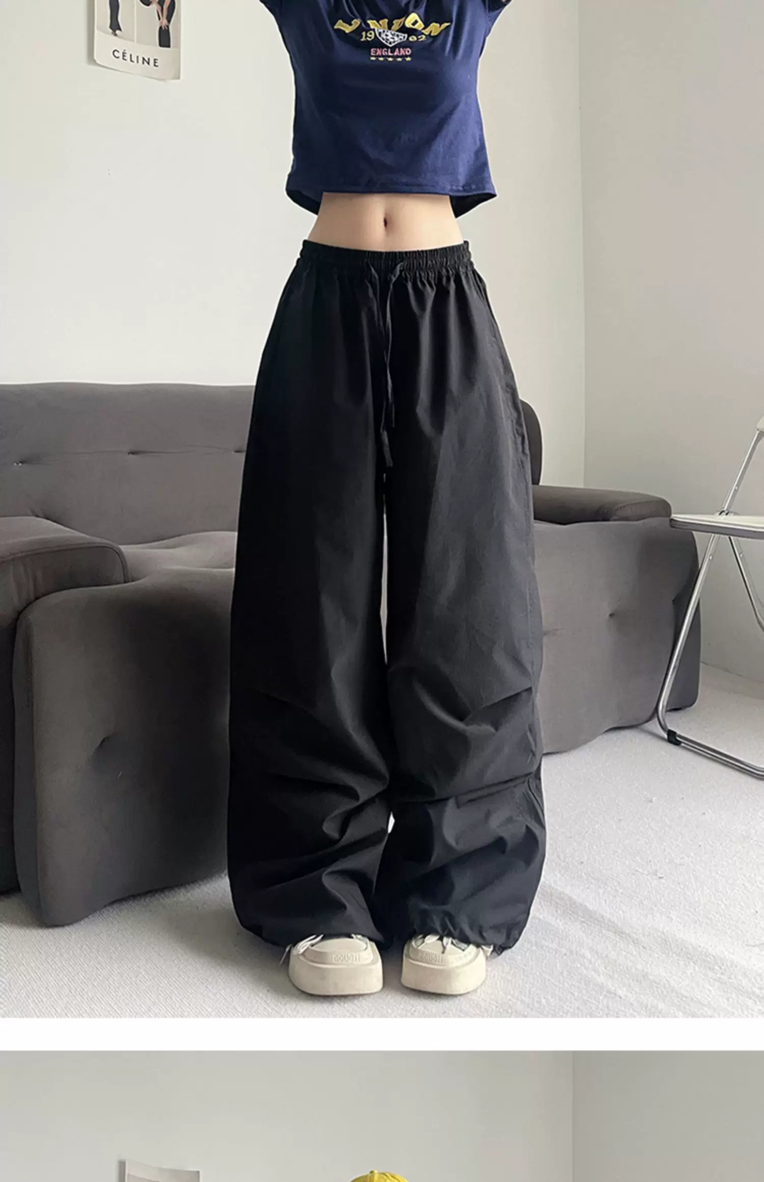- Quần công sở phong cách hip-hop kiểu Mỹ dành cho nam, mùa xuân hè, quần dù cặp đôi thương hiệu thời thượng, quần thể thao ống rộng dài chạm sàn.
