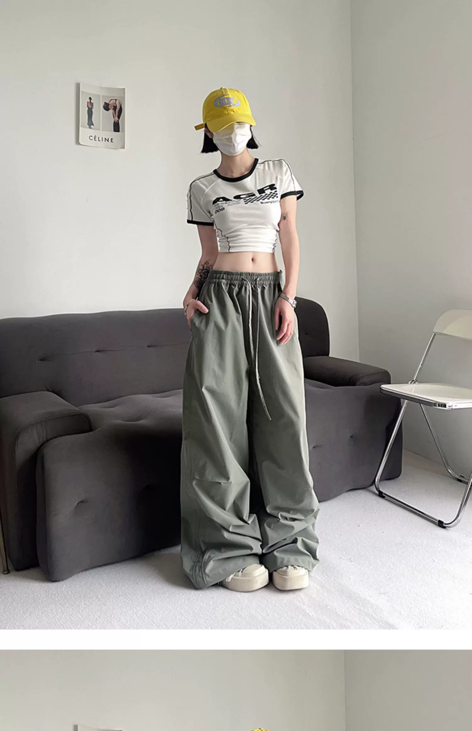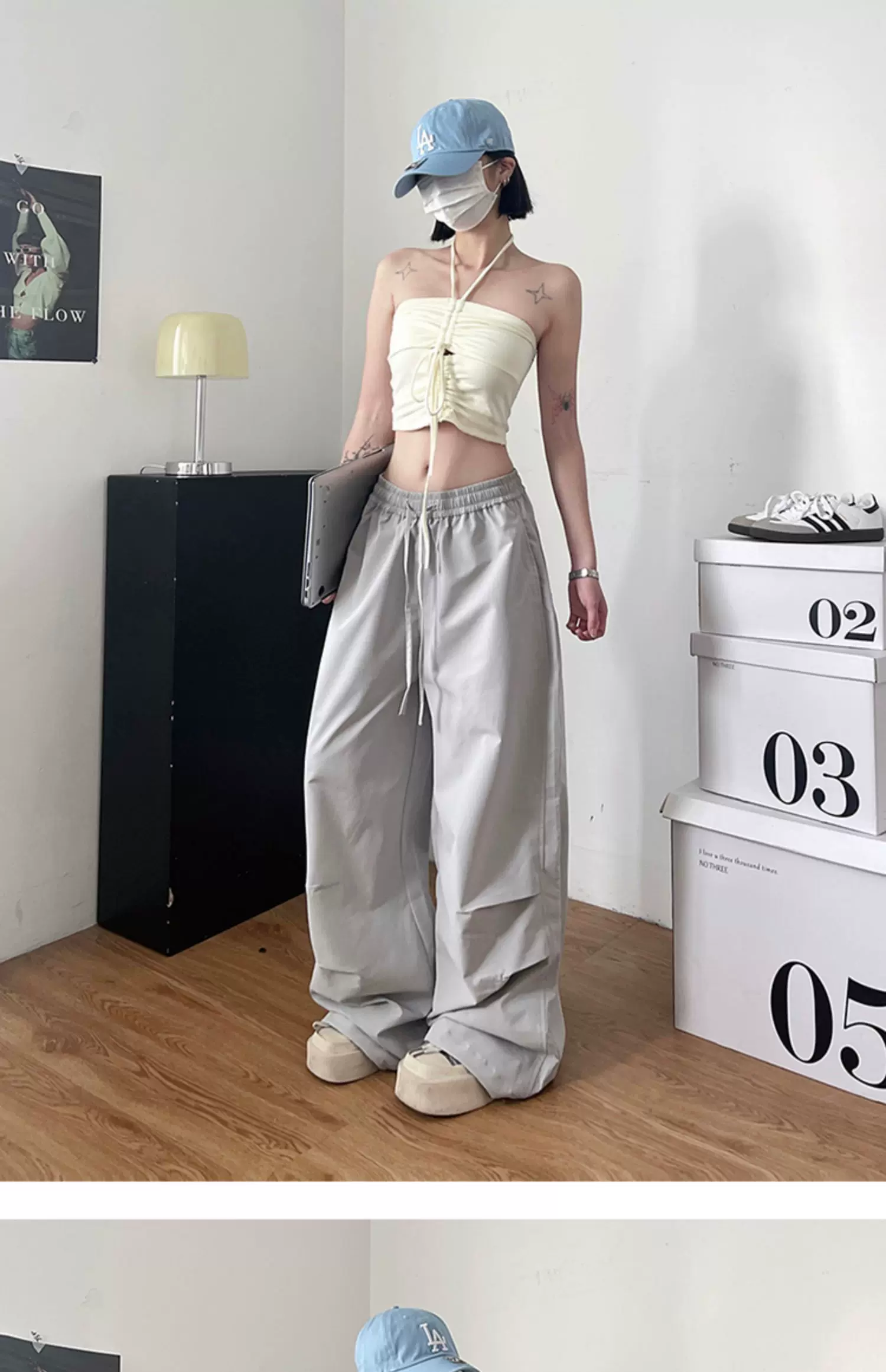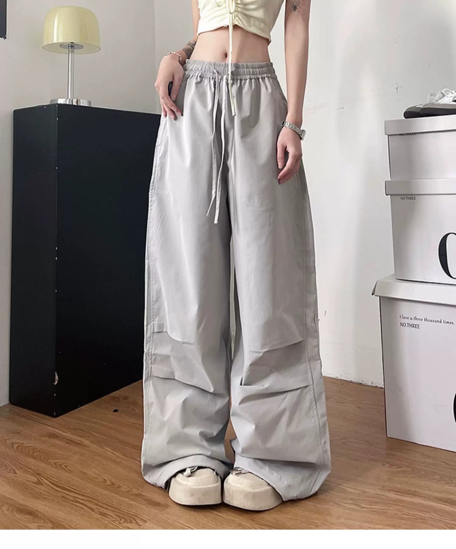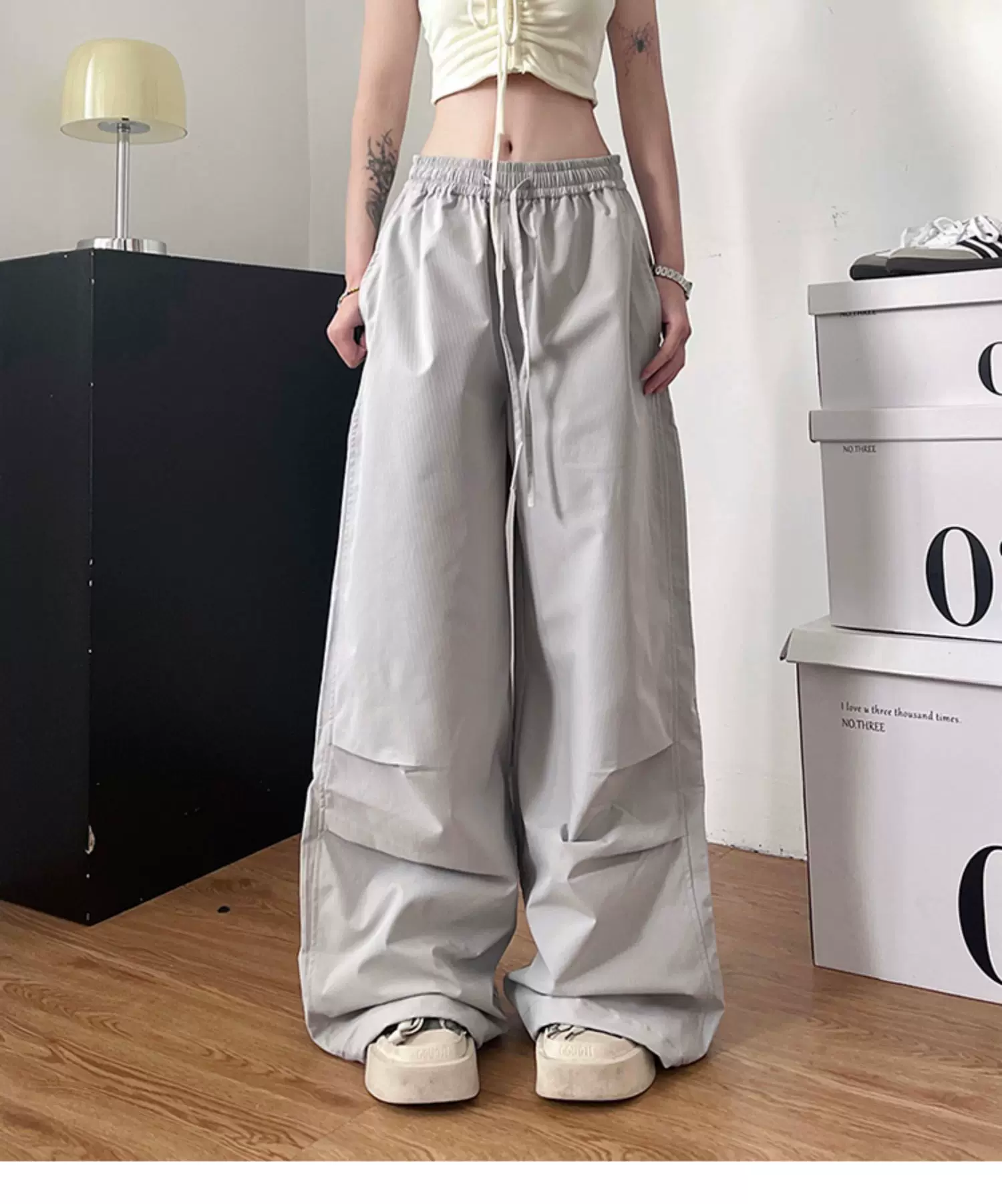 - Quần công sở phong cách hip-hop kiểu Mỹ dành cho nam, mùa xuân hè, quần dù cặp đôi thương hiệu thời thượng, quần thể thao ống rộng dài chạm sàn.
