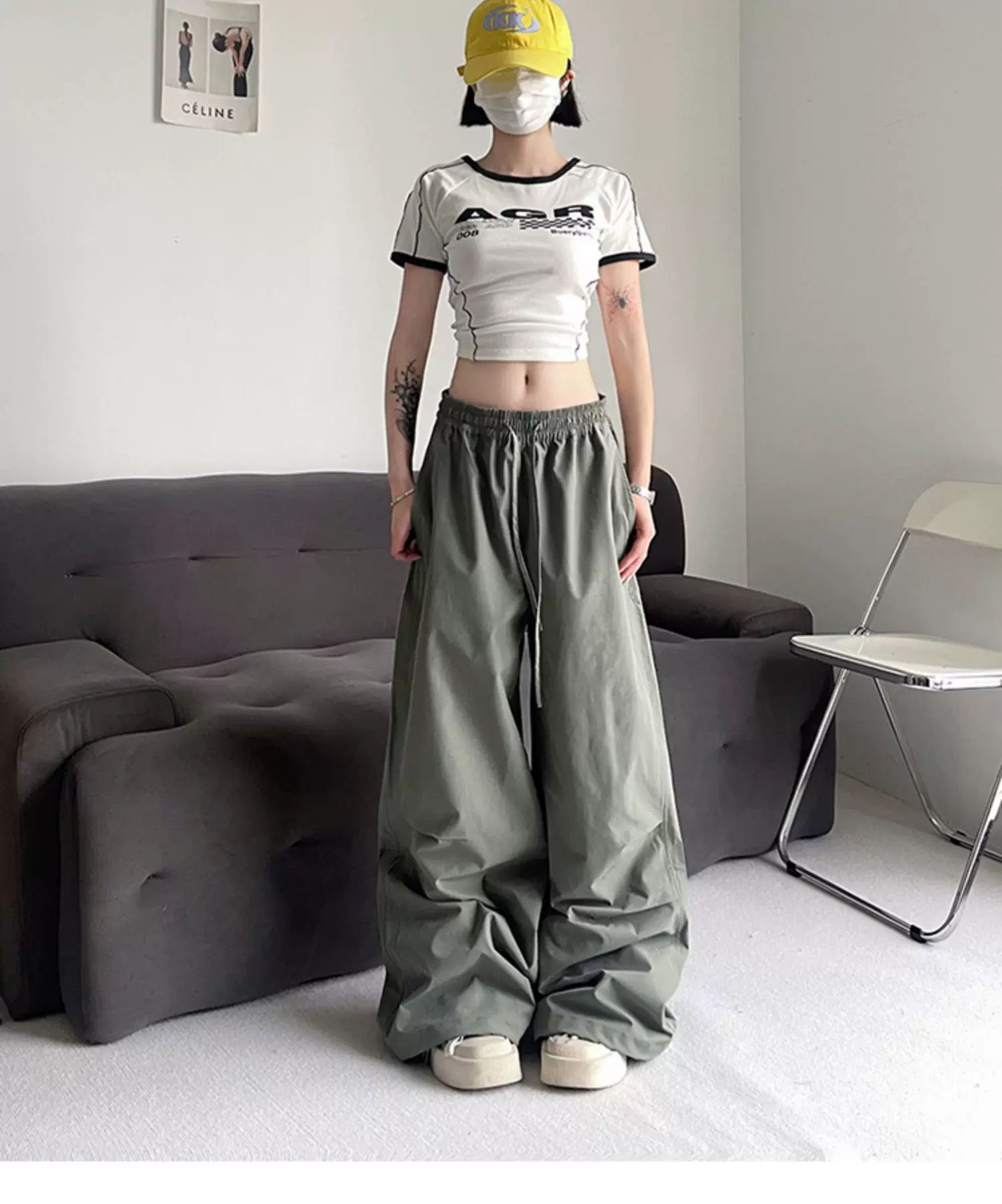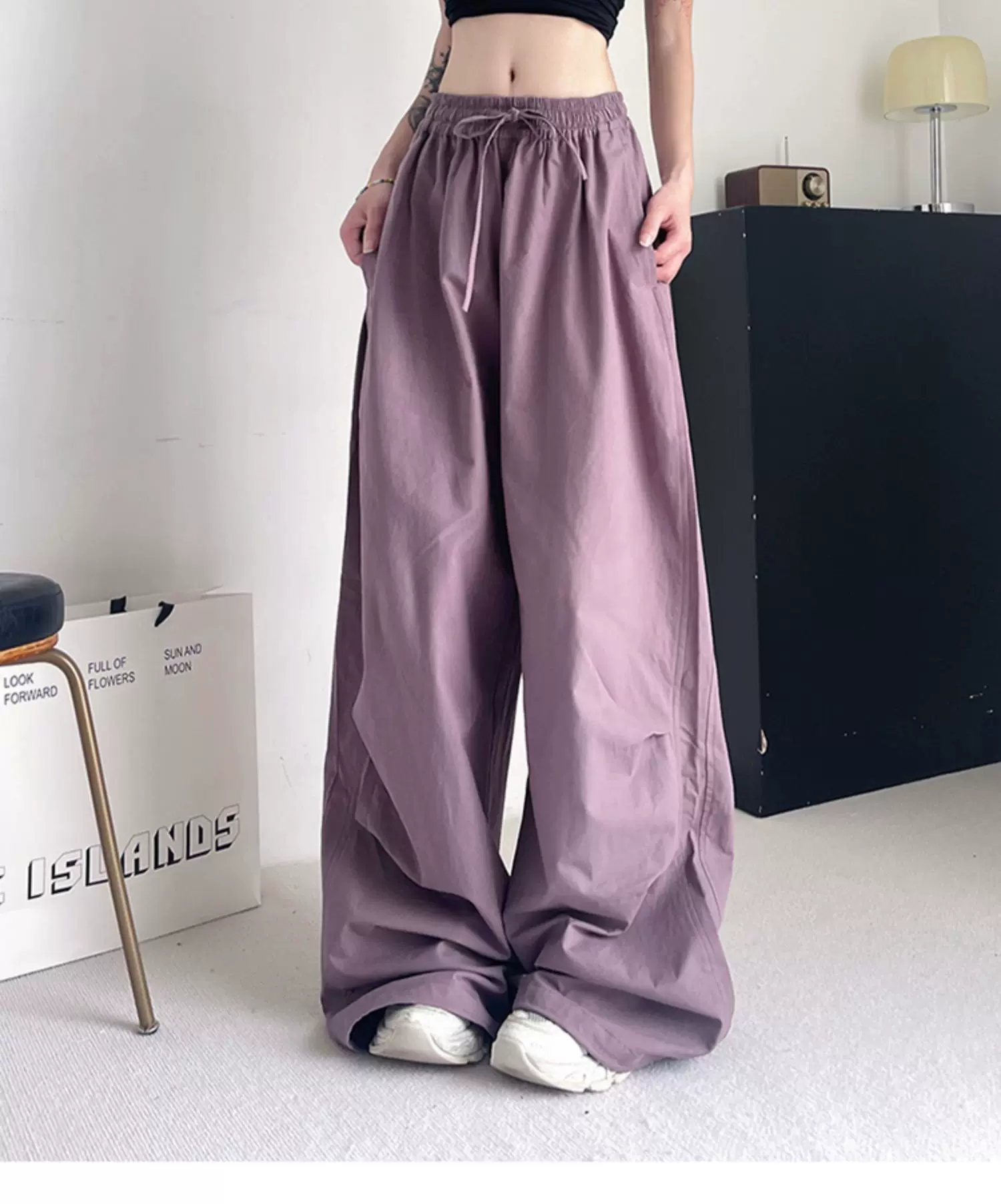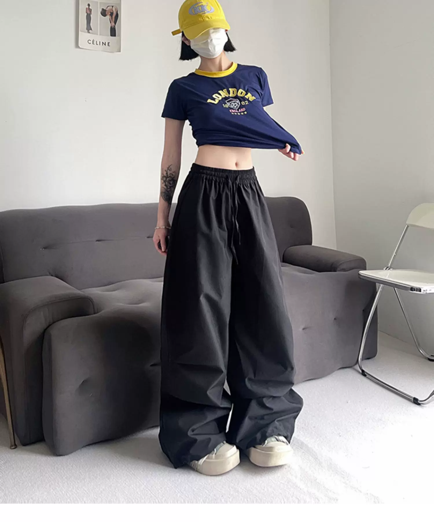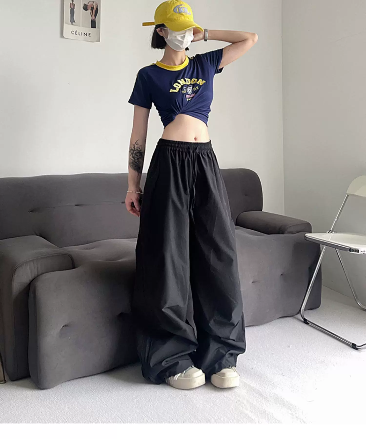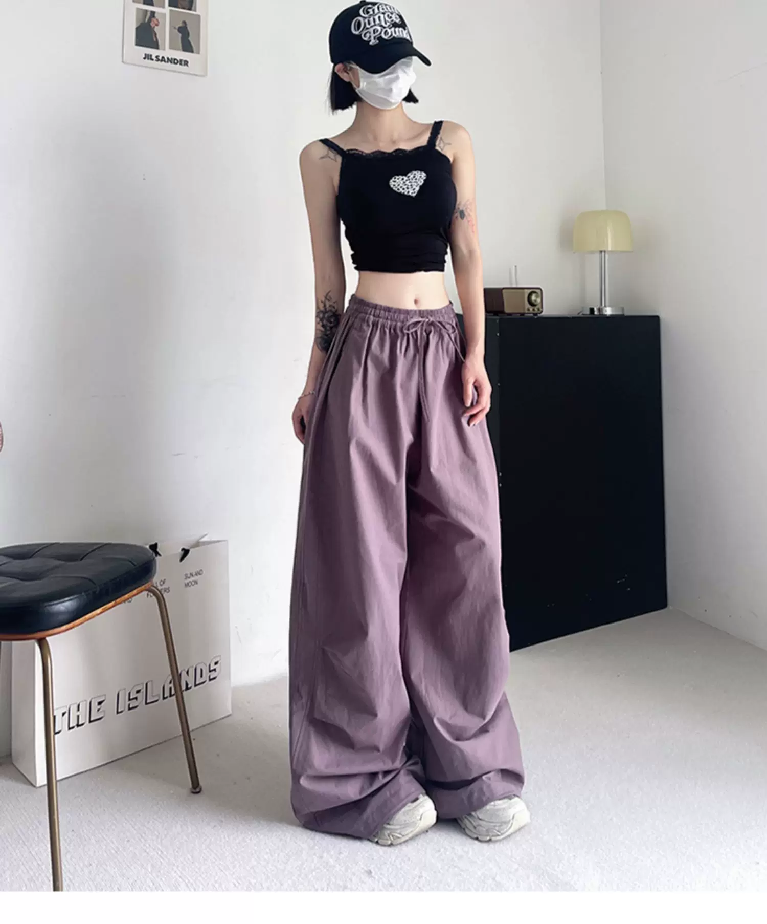 - Quần công sở phong cách hip-hop kiểu Mỹ dành cho nam, mùa xuân hè, quần dù cặp đôi thương hiệu thời thượng, quần thể thao ống rộng dài chạm sàn.