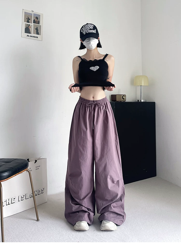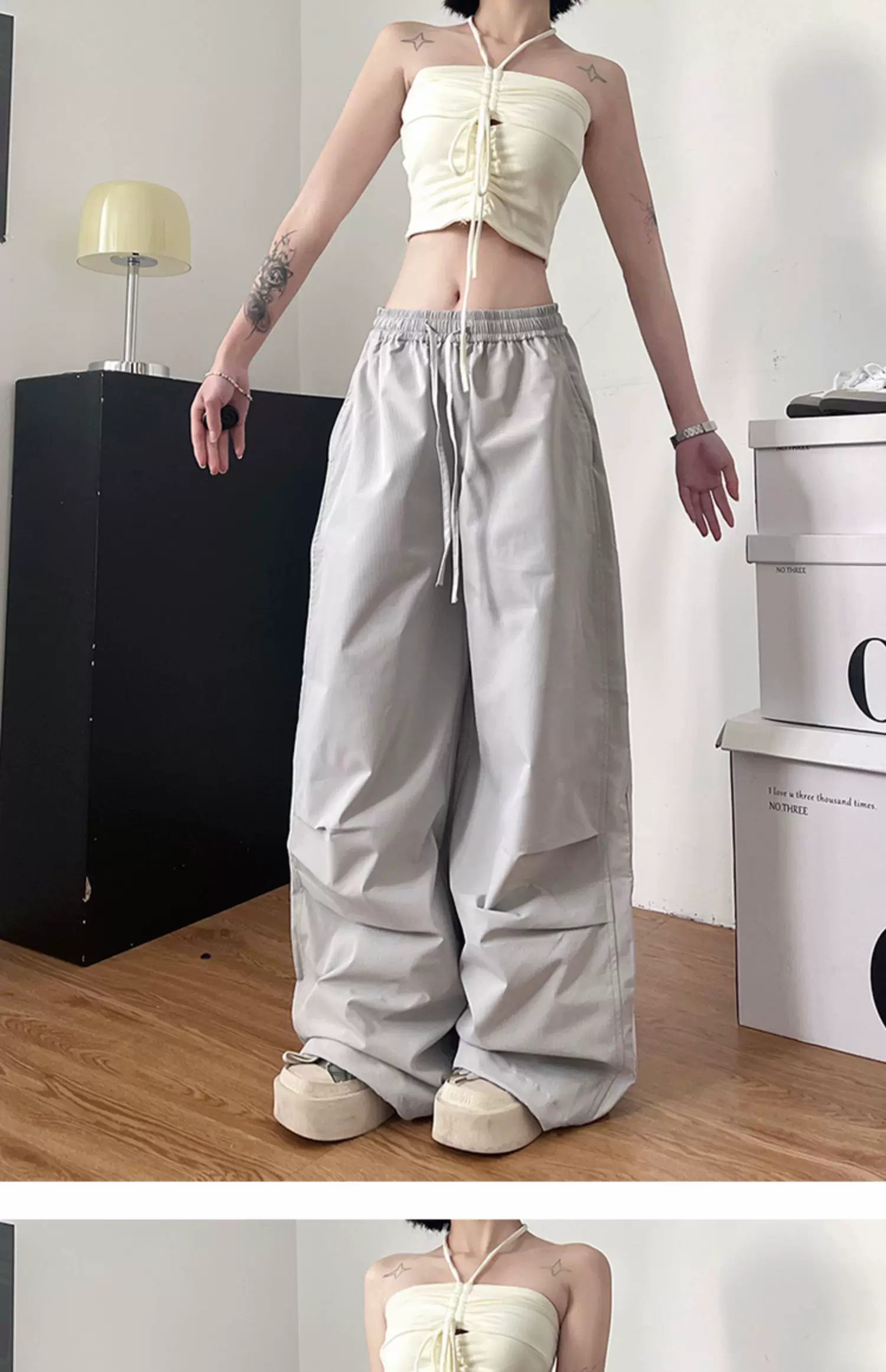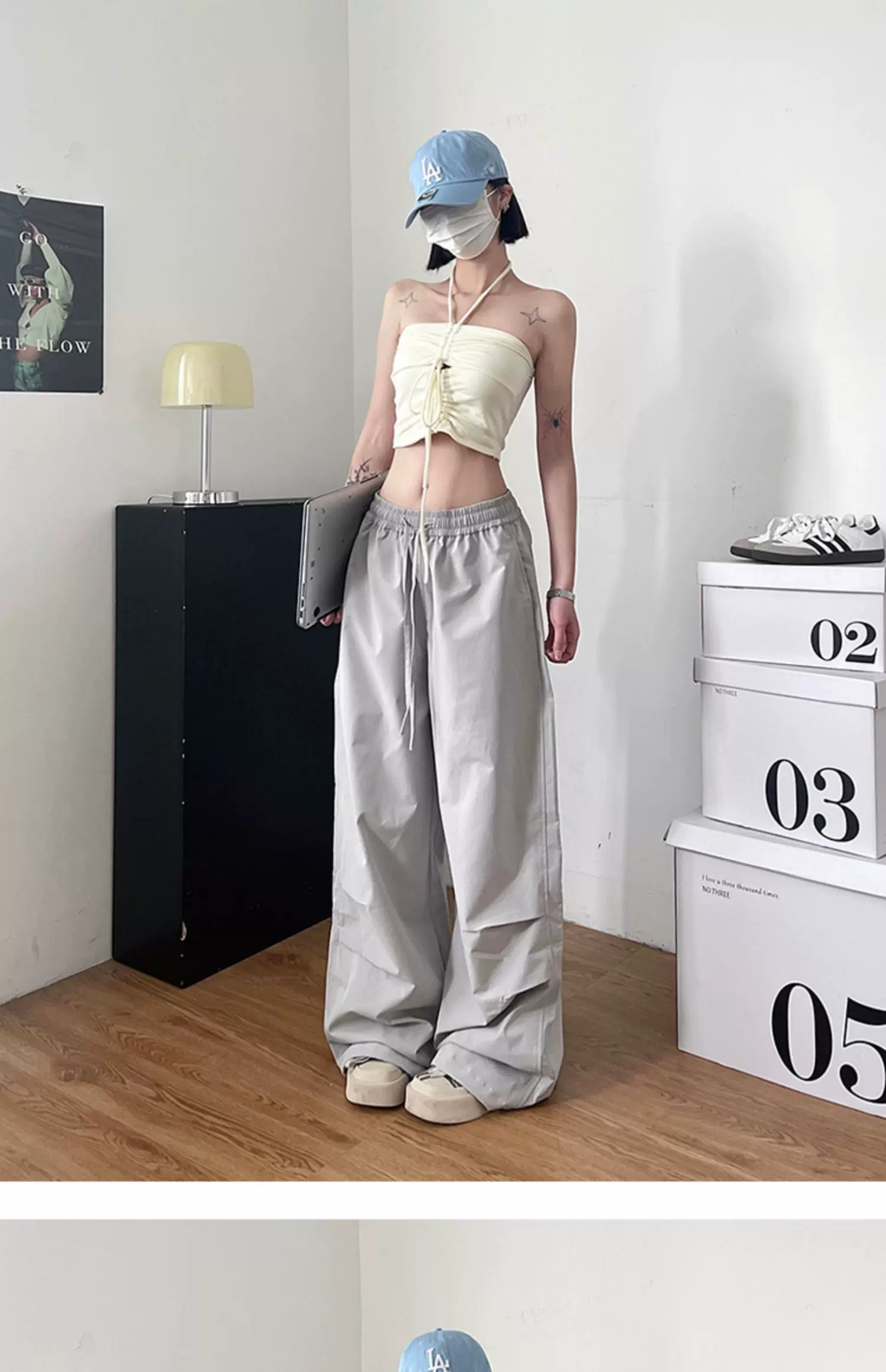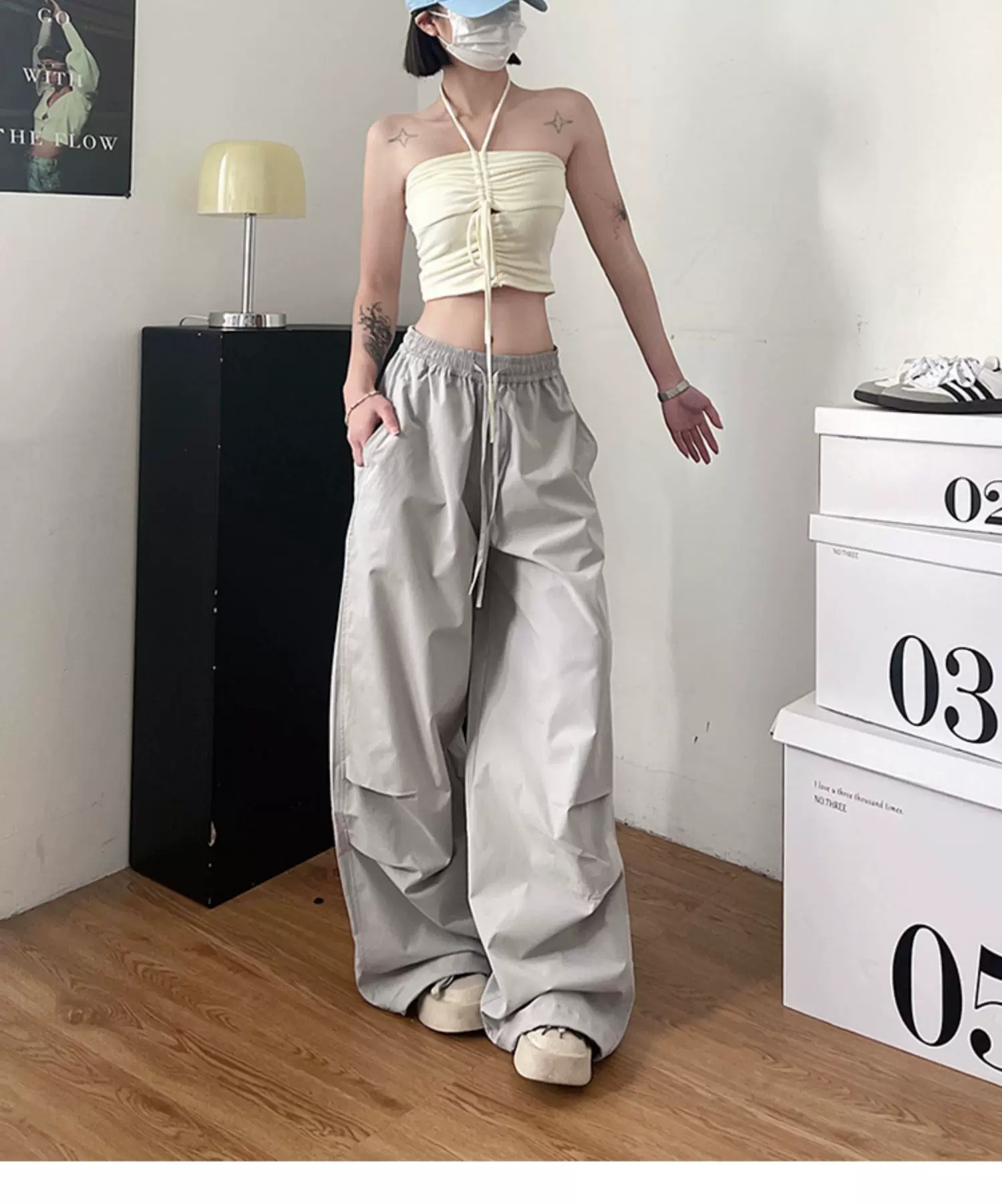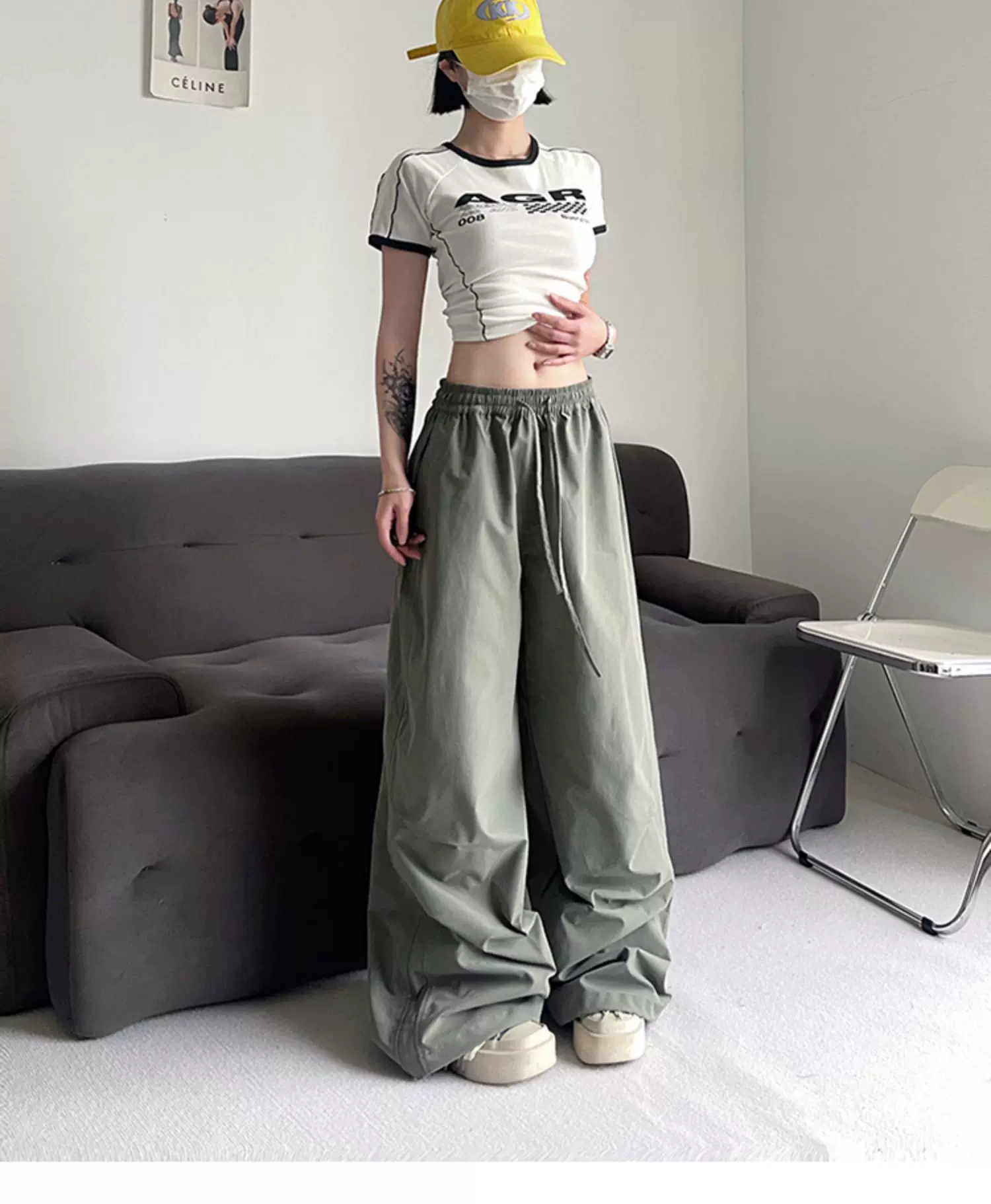 - Quần công sở phong cách hip-hop kiểu Mỹ dành cho nam, mùa xuân hè, quần dù cặp đôi thương hiệu thời thượng, quần thể thao ống rộng dài chạm sàn.