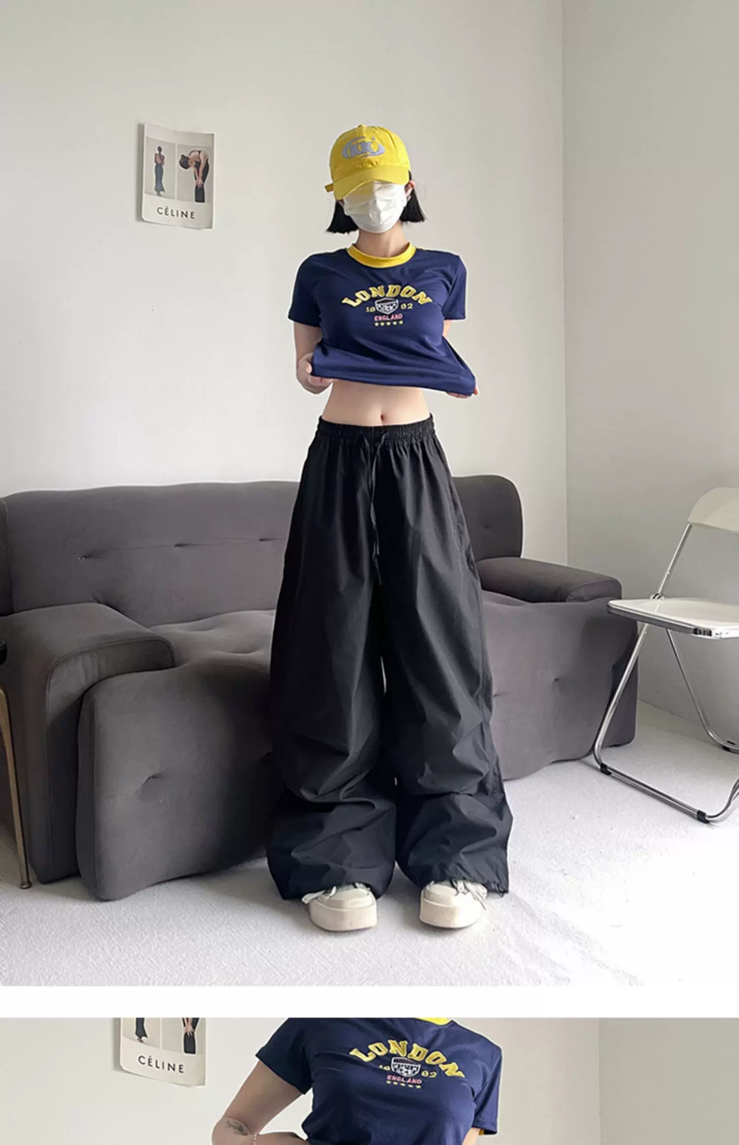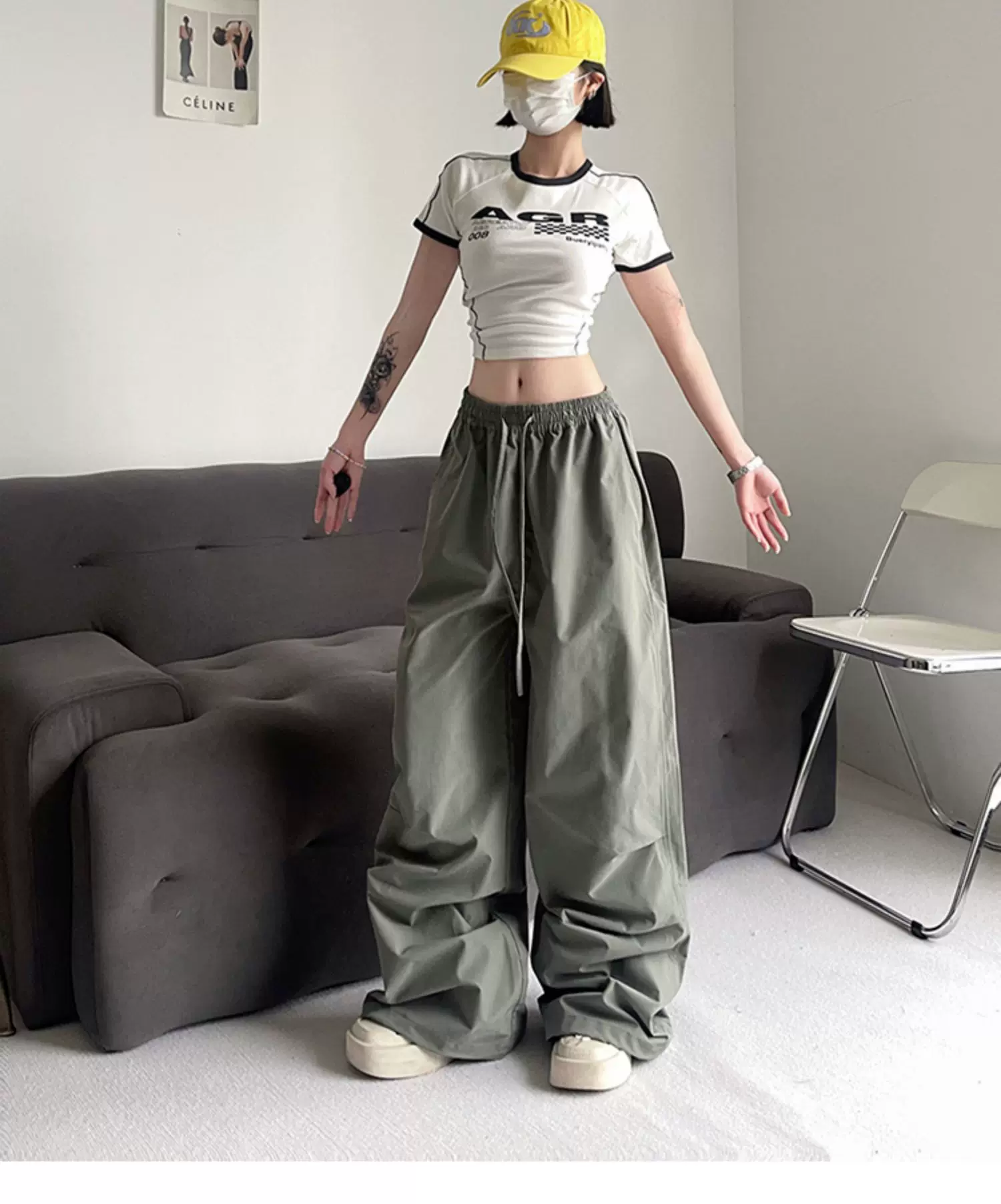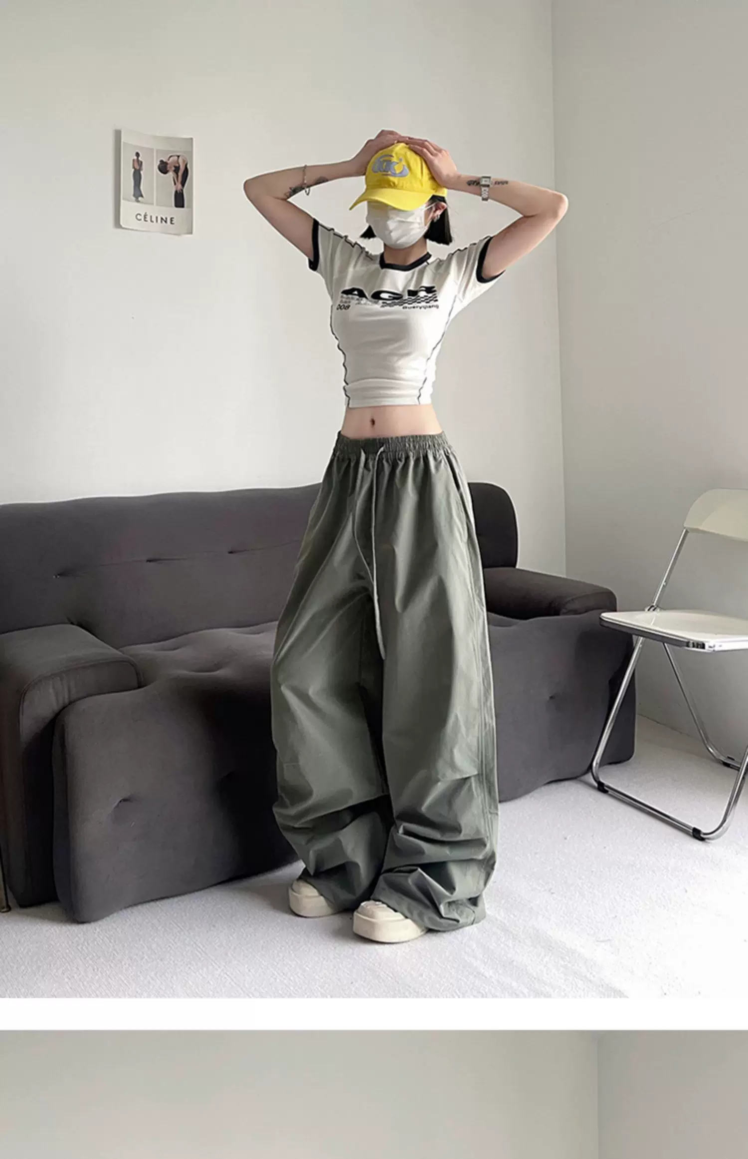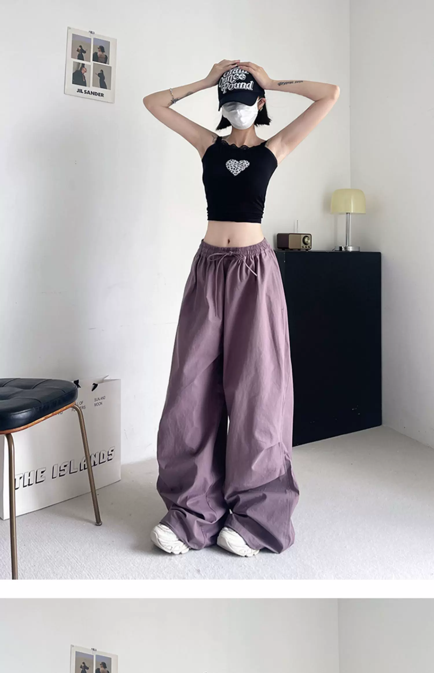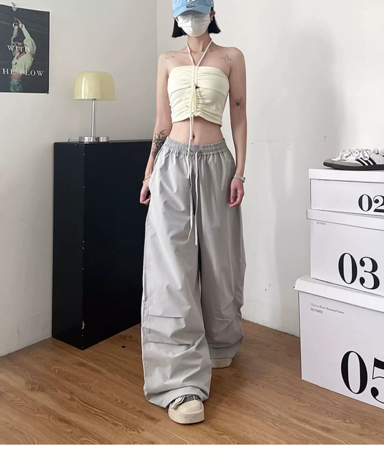 - Quần công sở phong cách hip-hop kiểu Mỹ dành cho nam, mùa xuân hè, quần dù cặp đôi thương hiệu thời thượng, quần thể thao ống rộng dài chạm sàn.