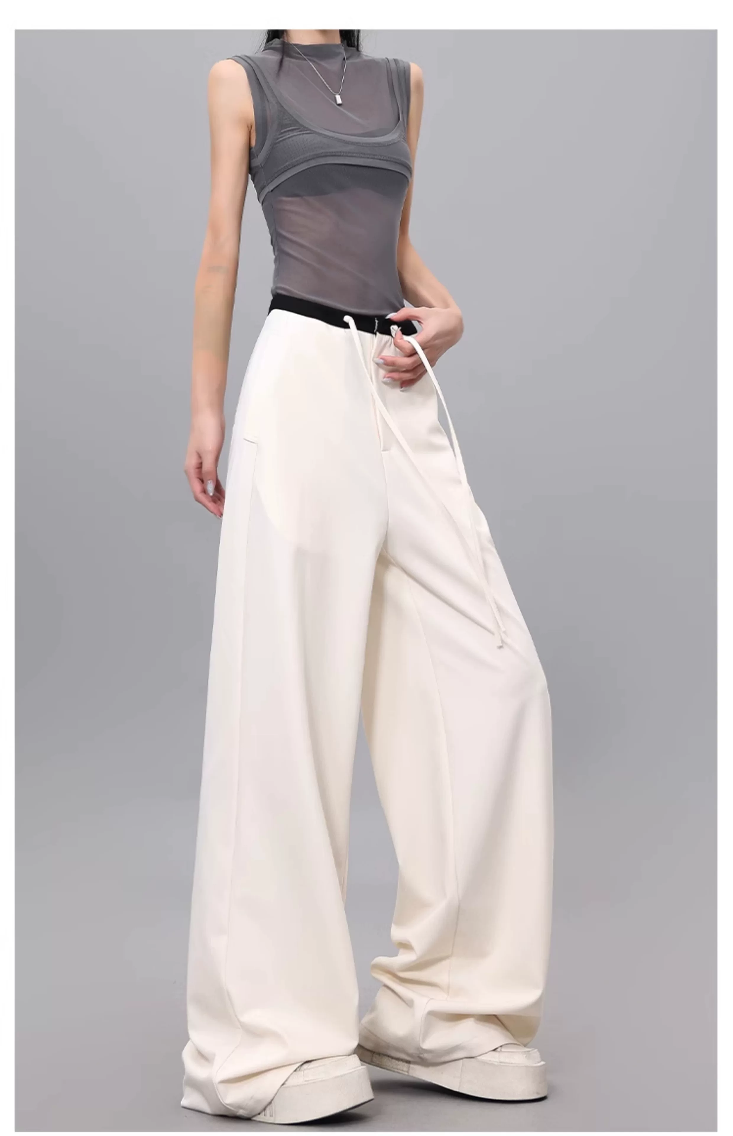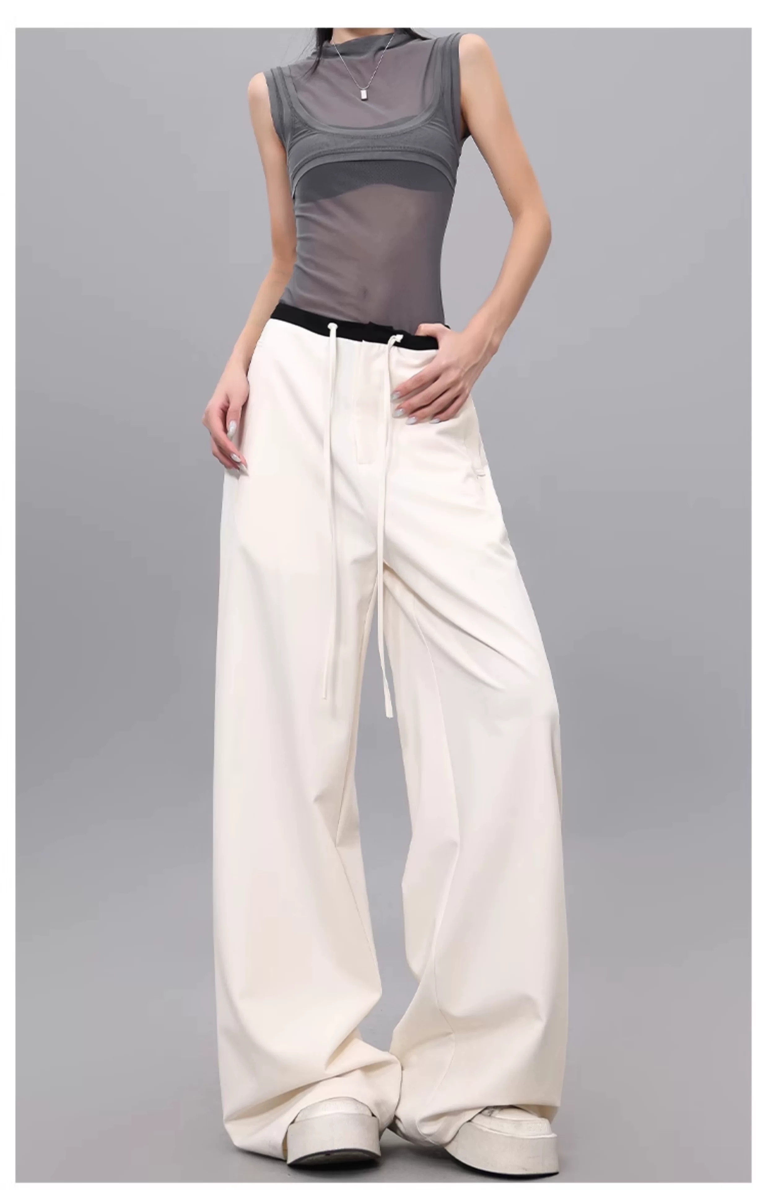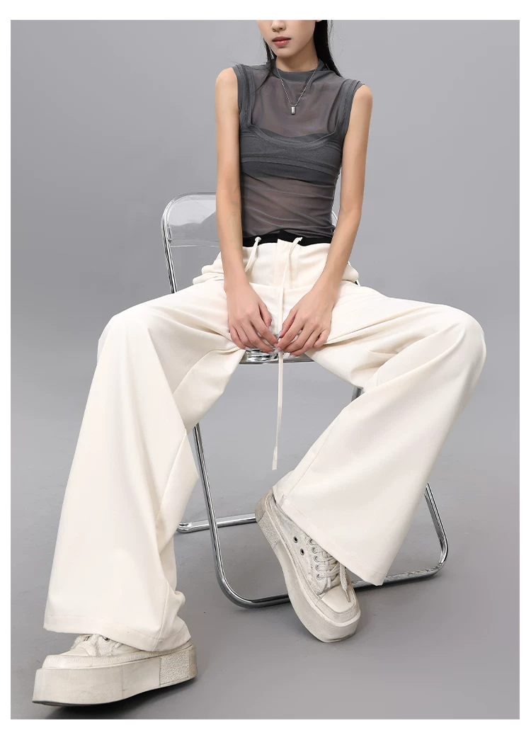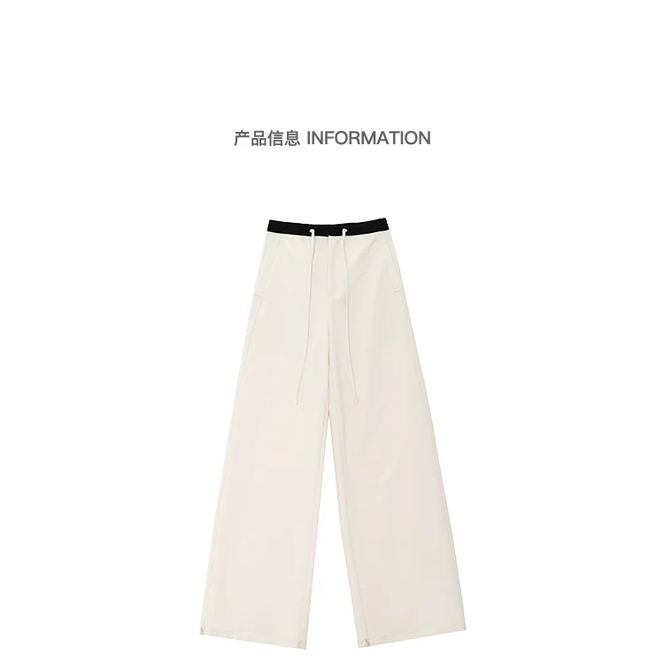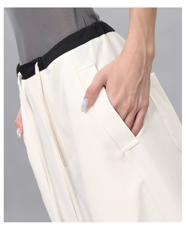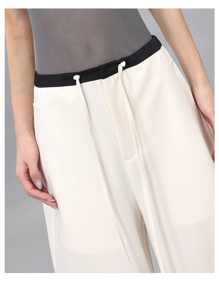 - Quần dài dây rút phối màu KEN STUDIO dành cho nữ, phong cách mùa hè mới, đa năng, dáng rộng, dáng rộng, quần ống rộng