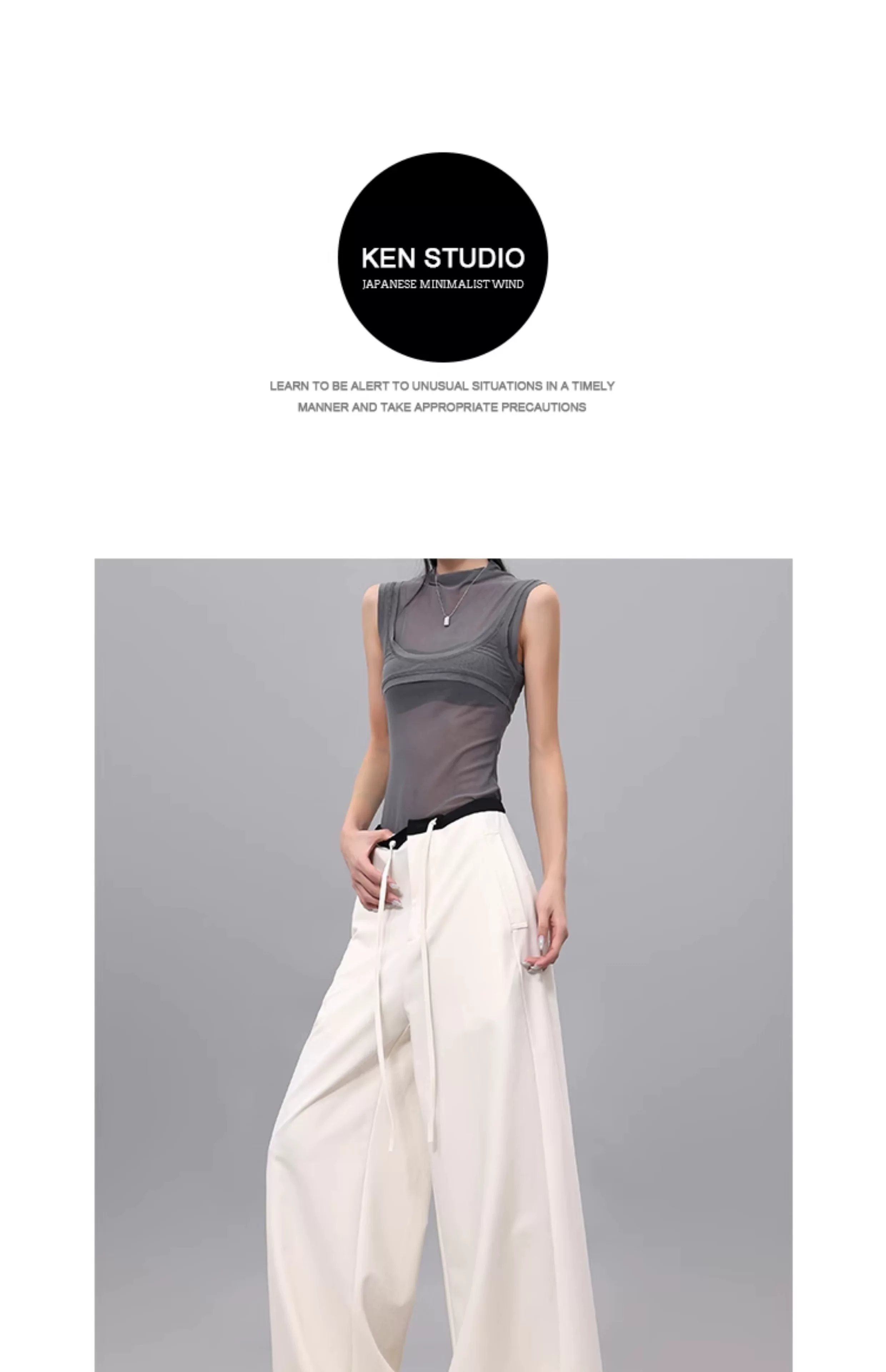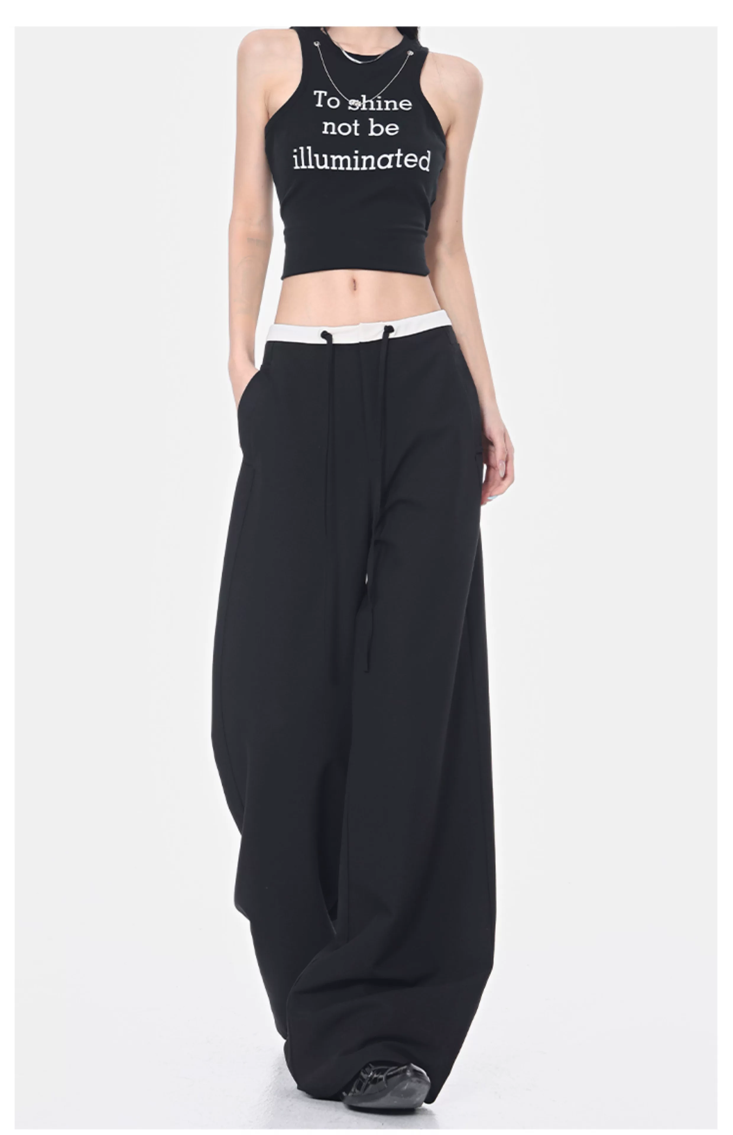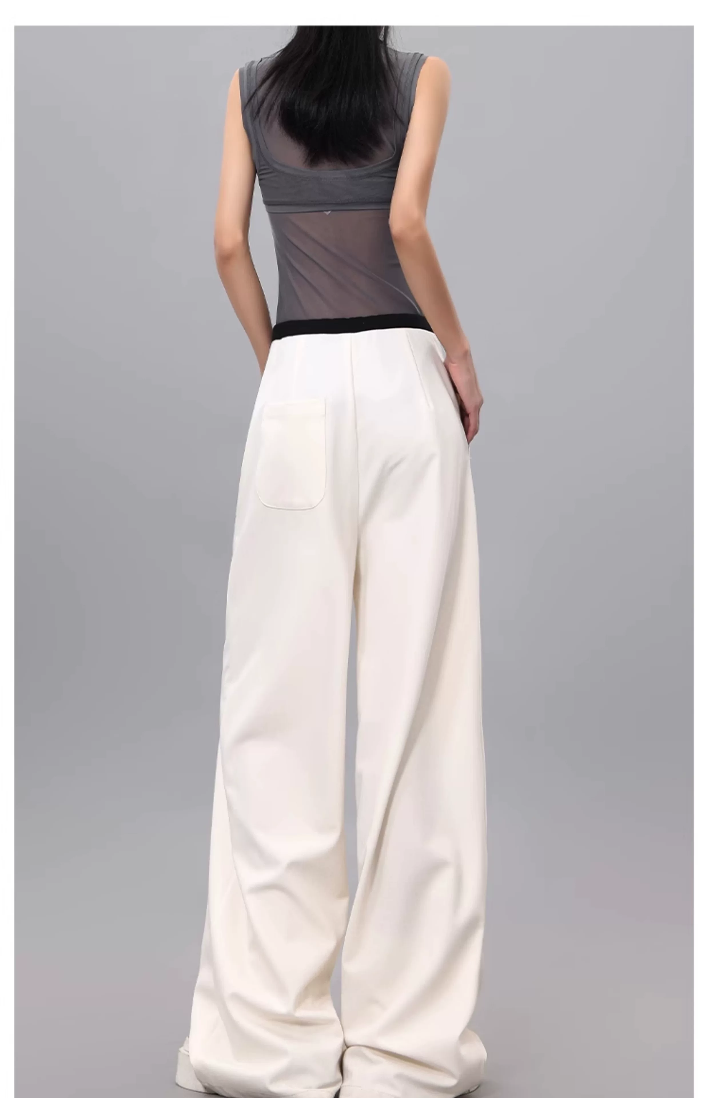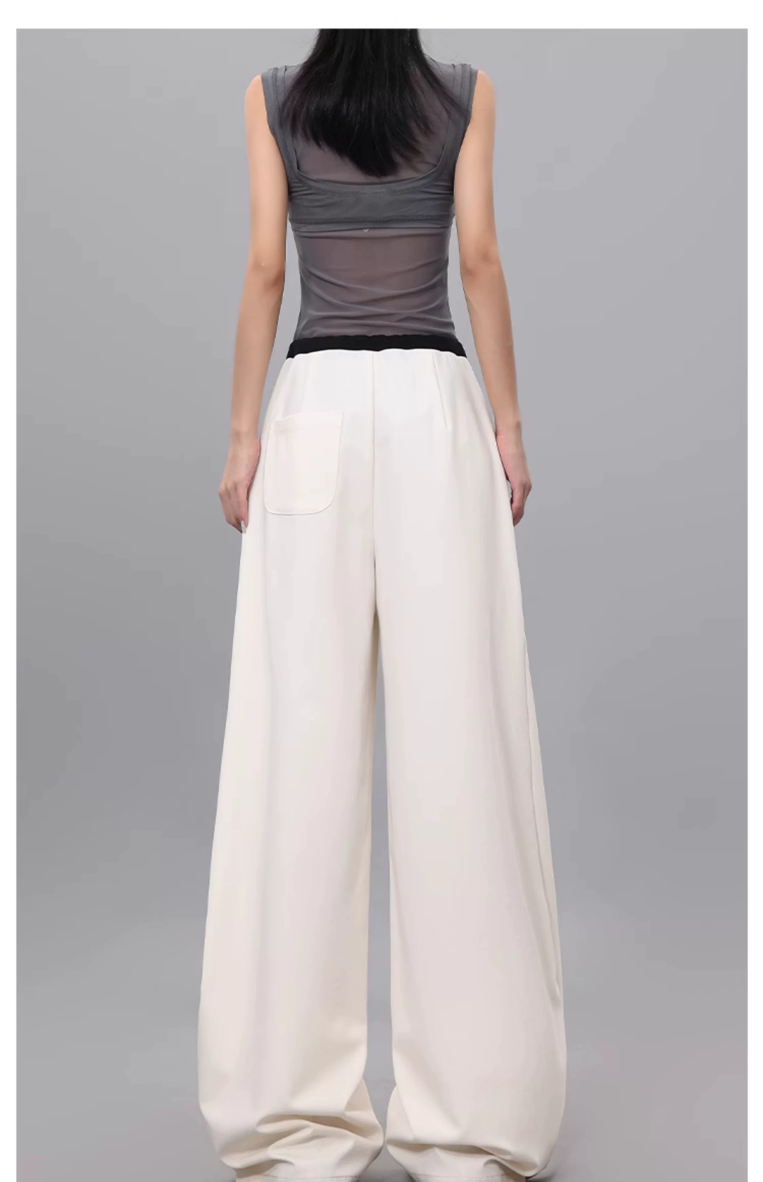 - Quần dài dây rút phối màu KEN STUDIO dành cho nữ, phong cách mùa hè mới, đa năng, dáng rộng, dáng rộng, quần ống rộng