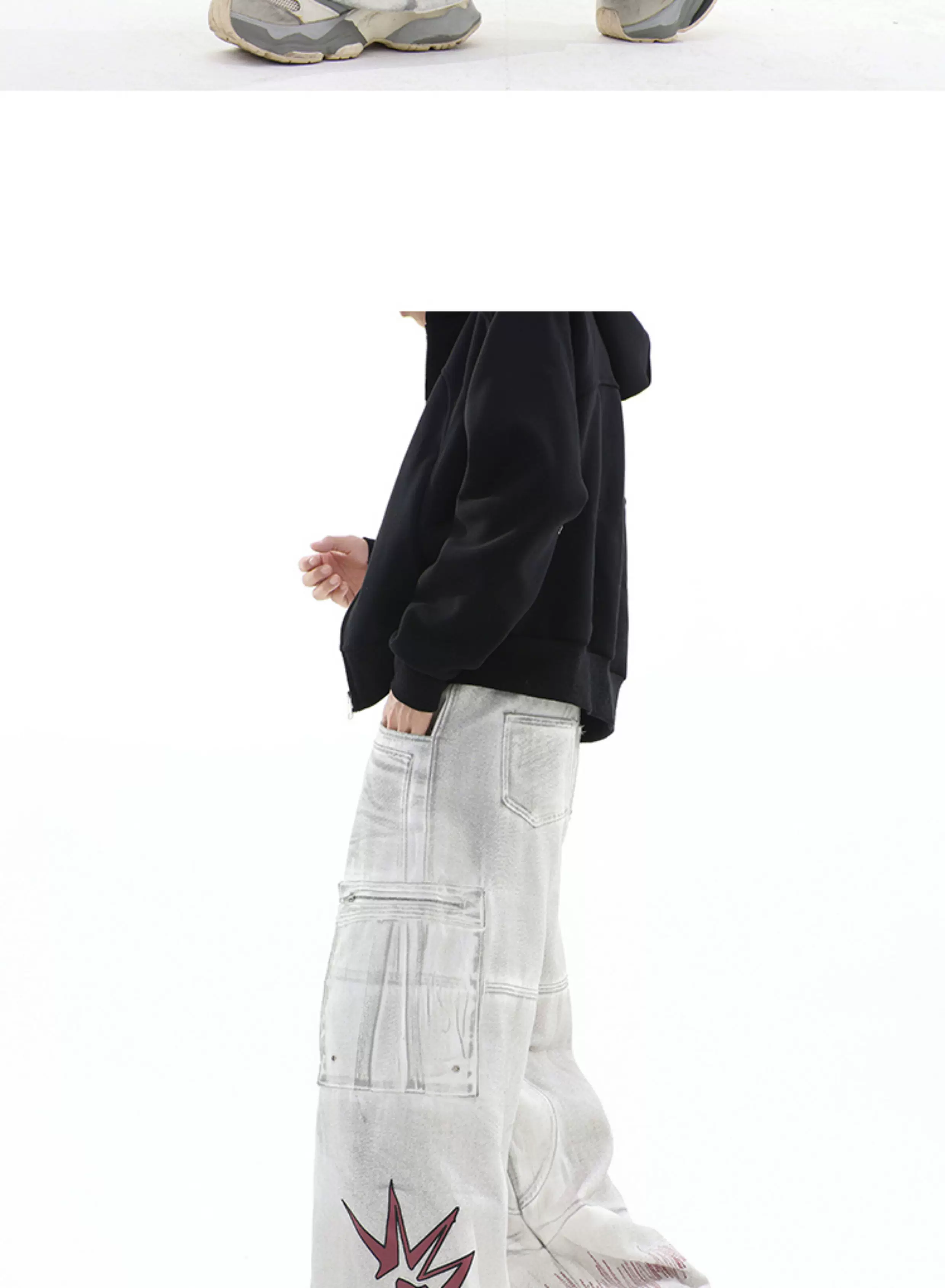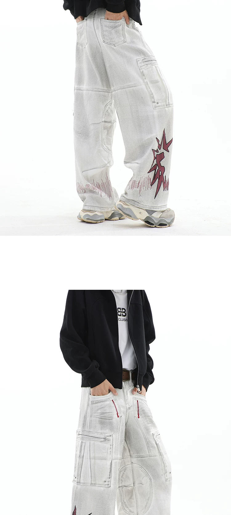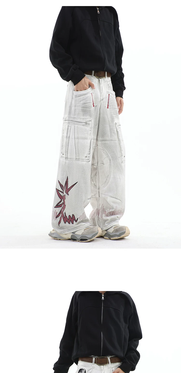 - Quần dài in họa tiết lửa retro Mỹ, thương hiệu thời trang, nhuộm màu cũ kỹ, dáng rộng, ống rộng, phong cách casual mùa thu dành cho nam