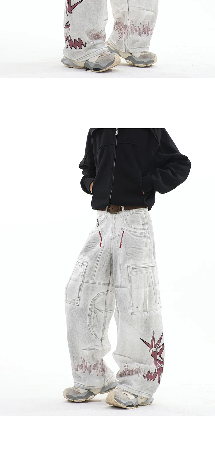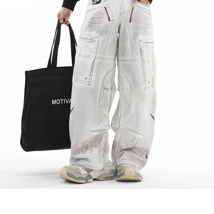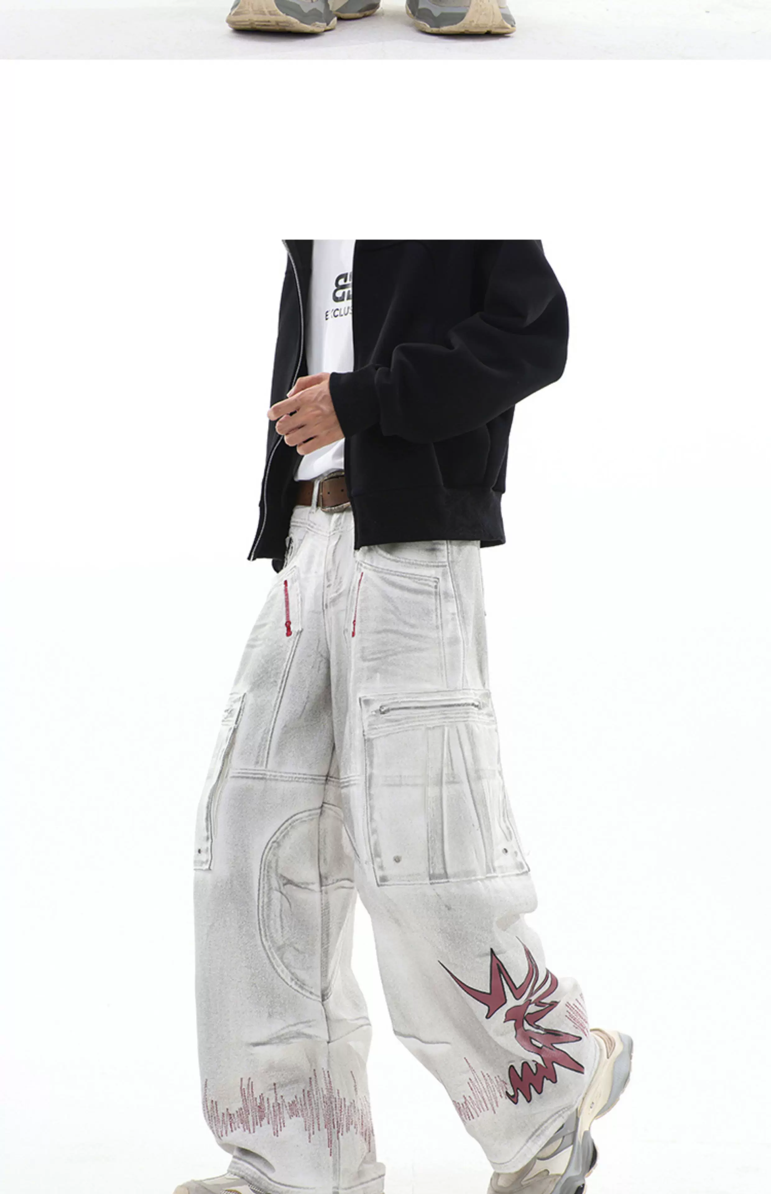 - Quần dài in họa tiết lửa retro Mỹ, thương hiệu thời trang, nhuộm màu cũ kỹ, dáng rộng, ống rộng, phong cách casual mùa thu dành cho nam