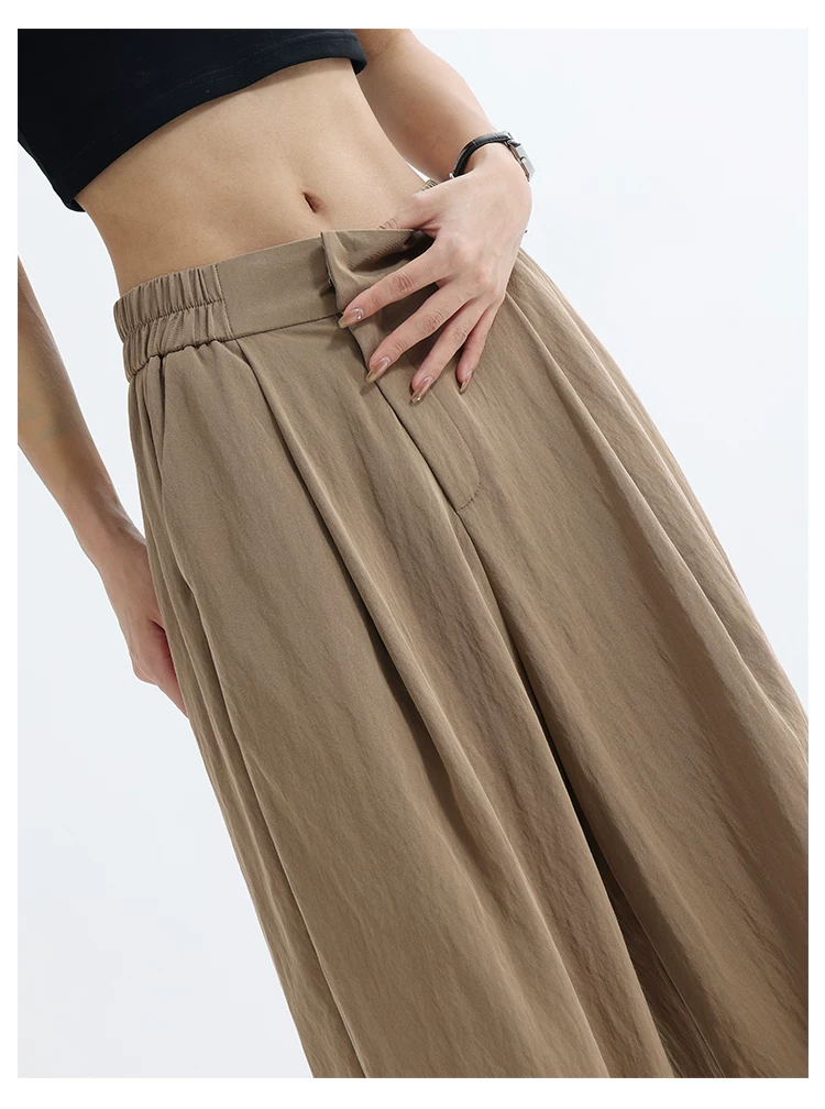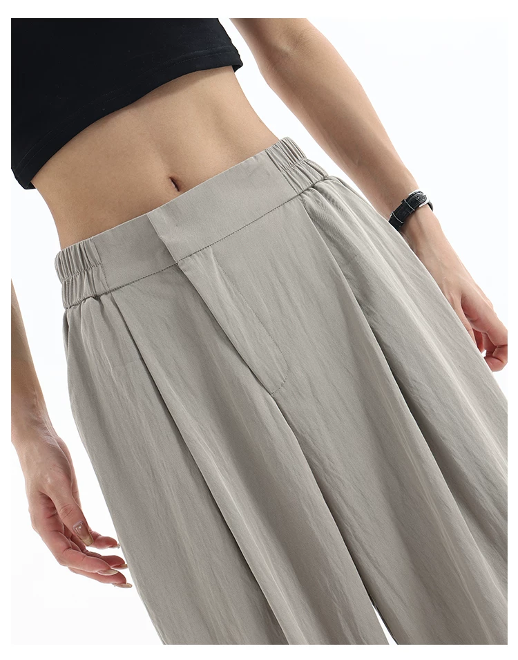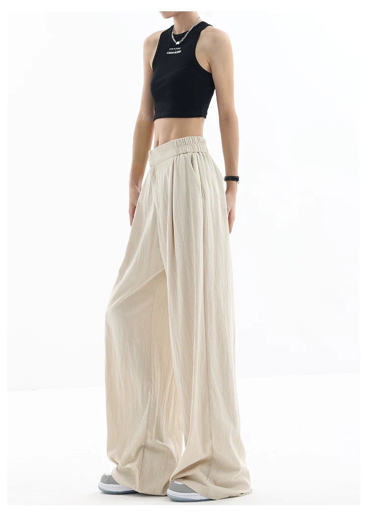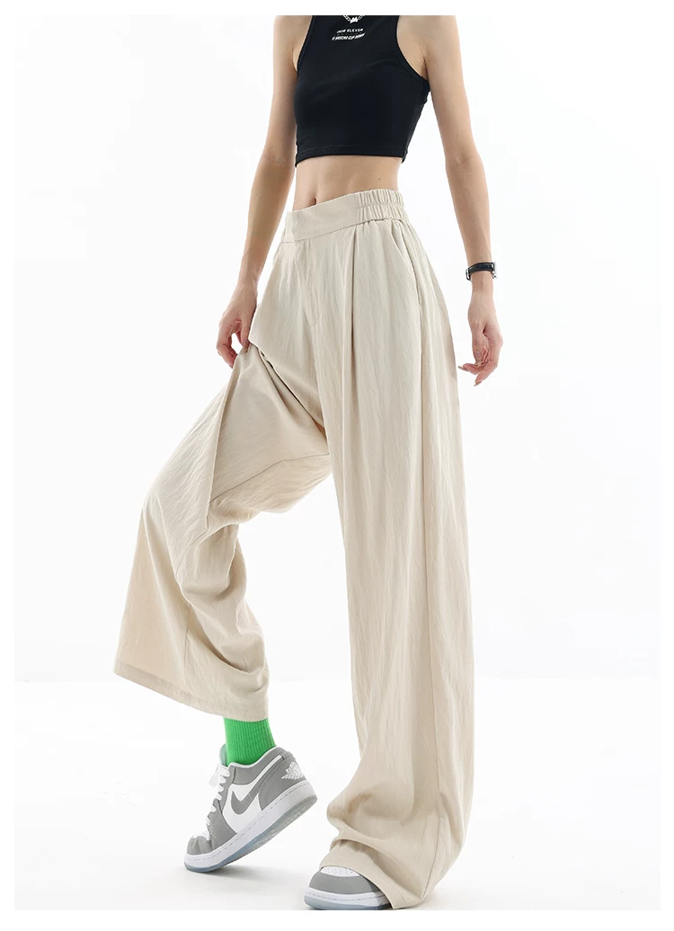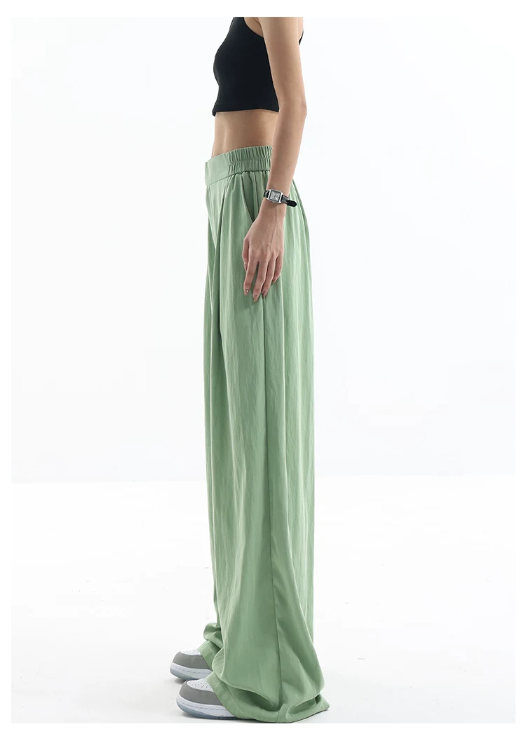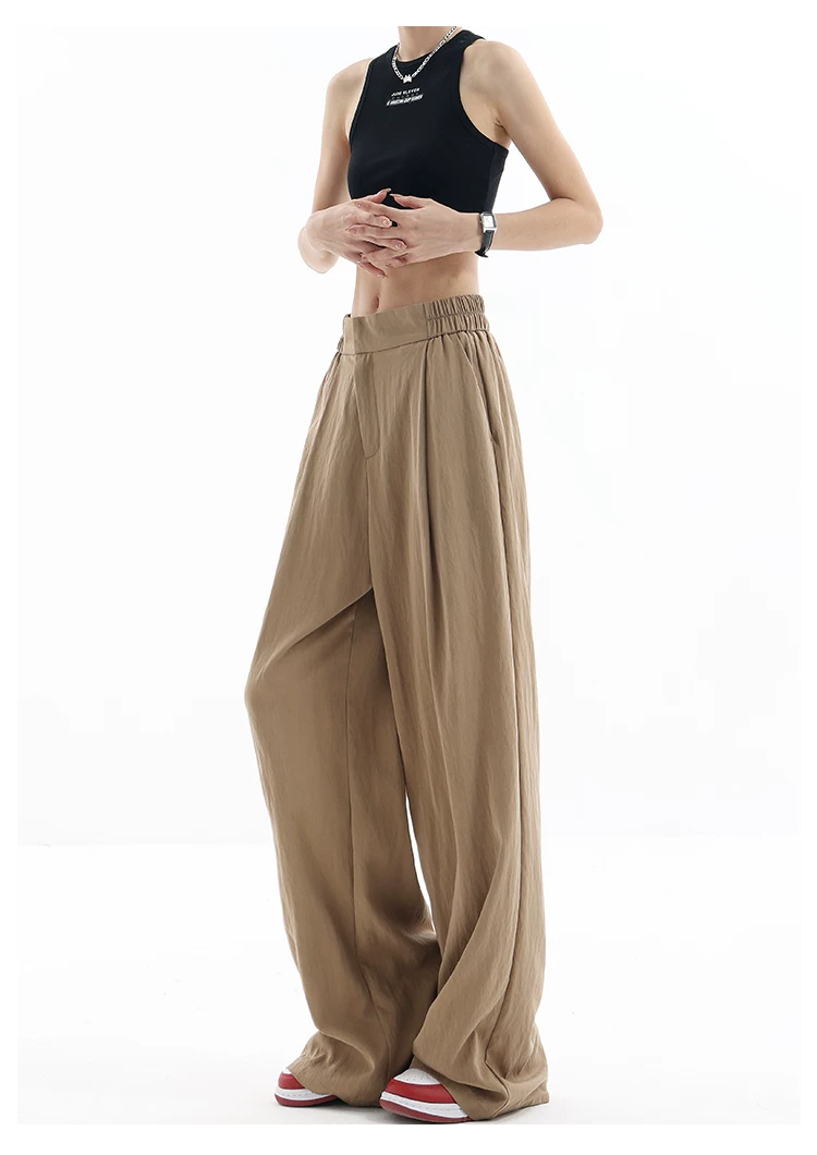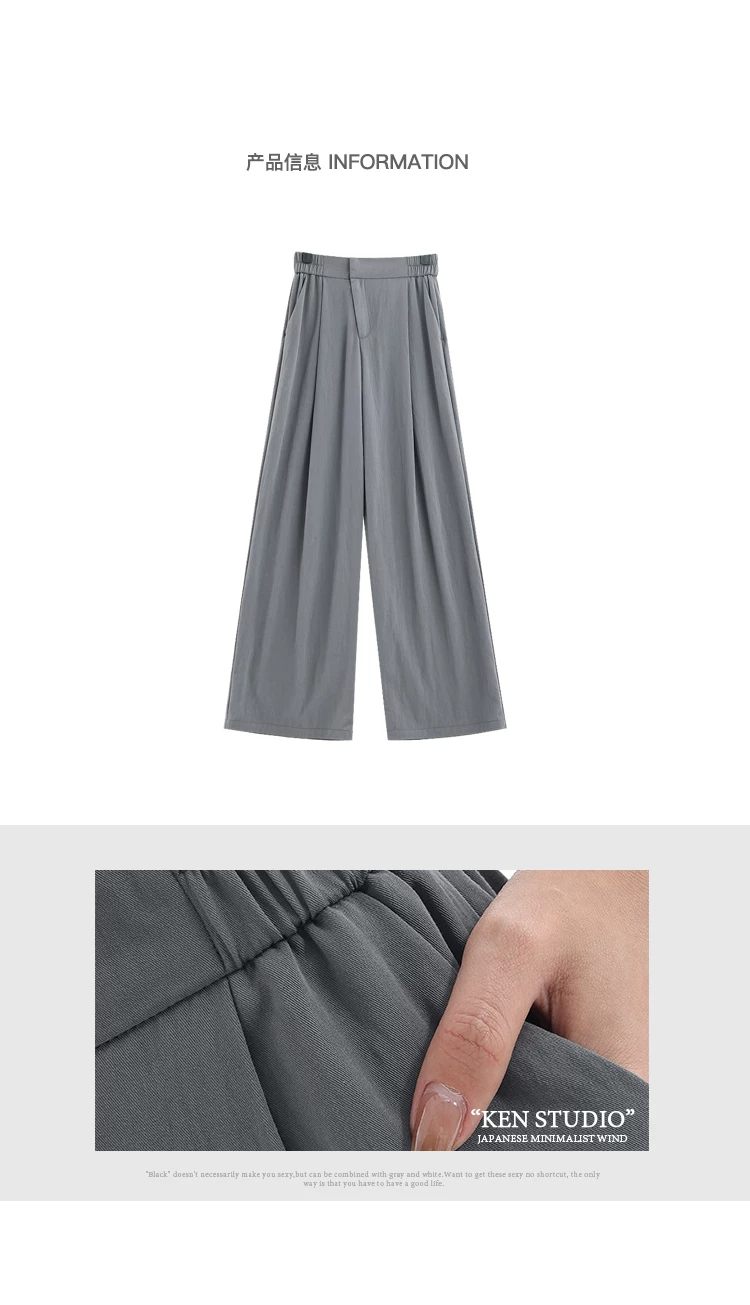 Quần dài lụa băng siêu mềm mùa hè của KEN STUDIO dành cho nữ với thiết kế lưng thun, quần ống rộng dáng rộng