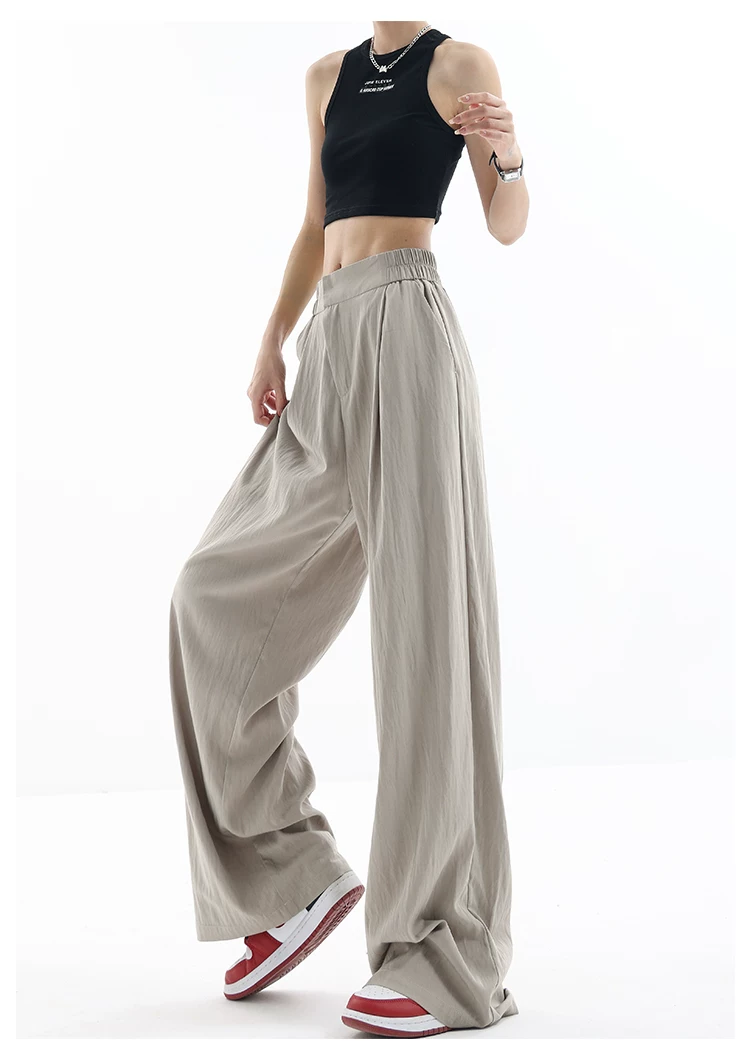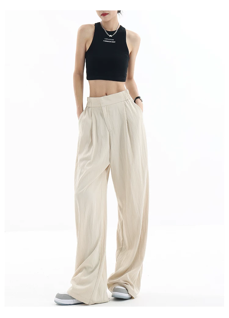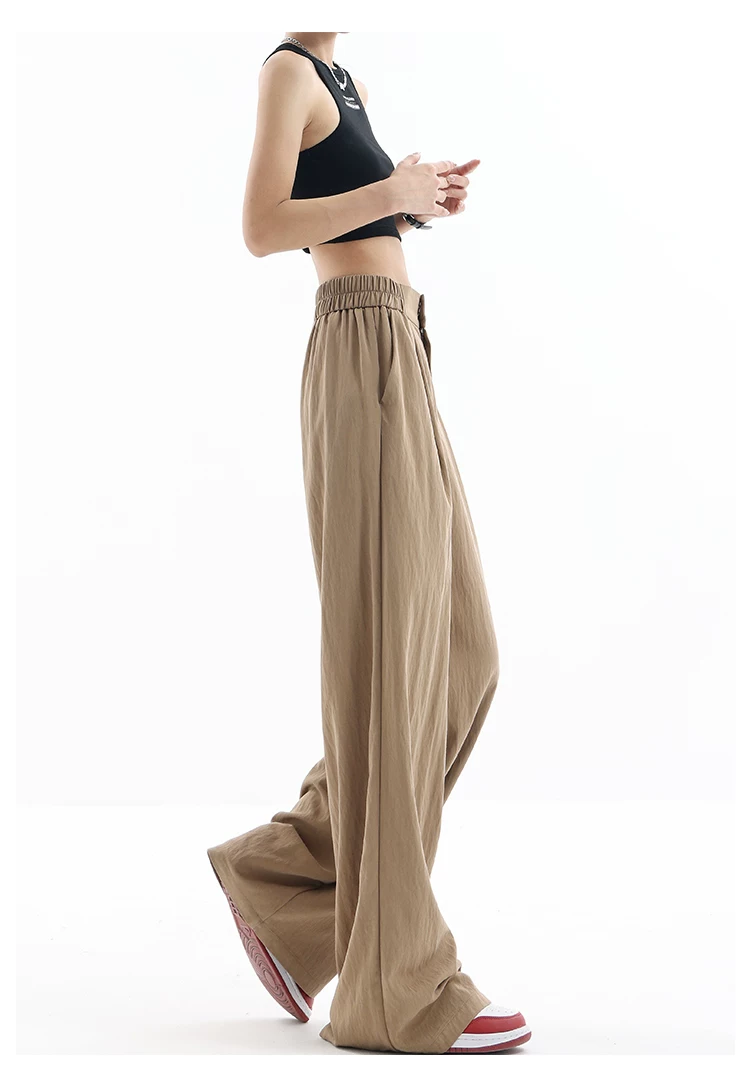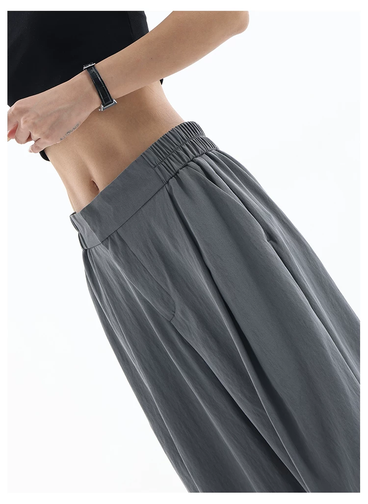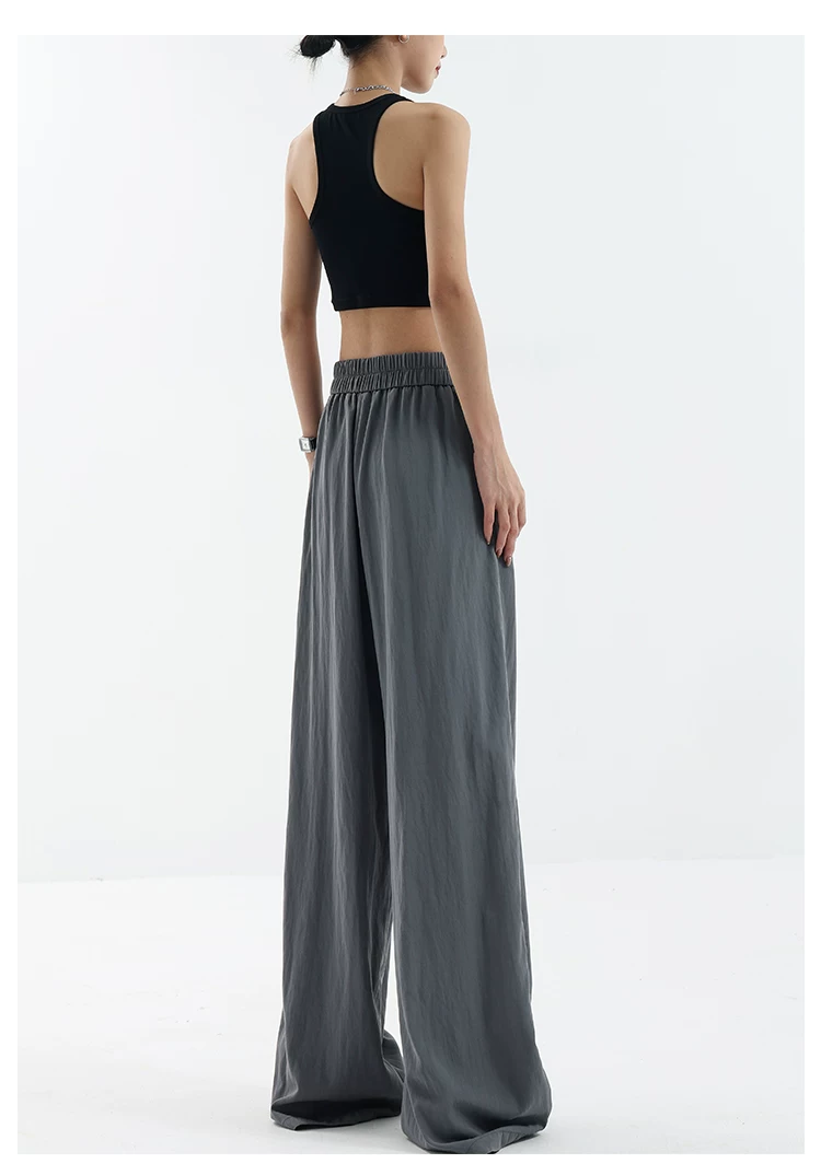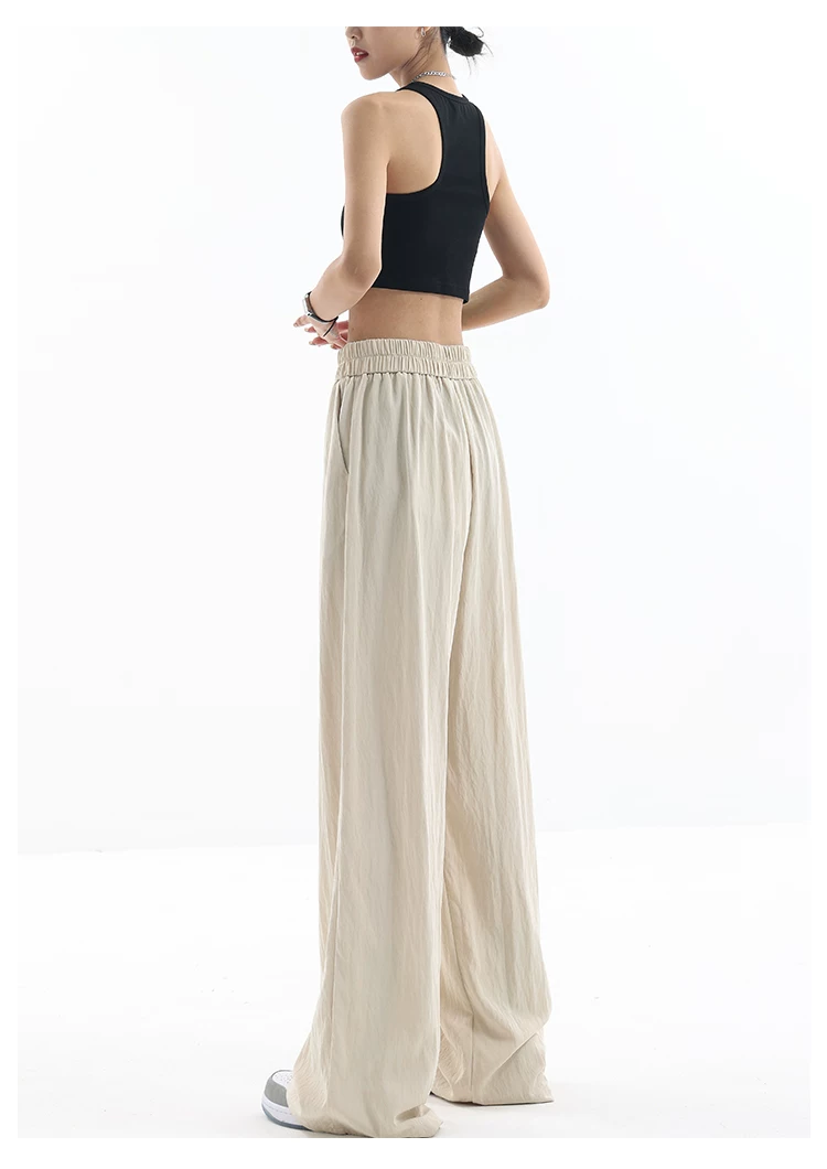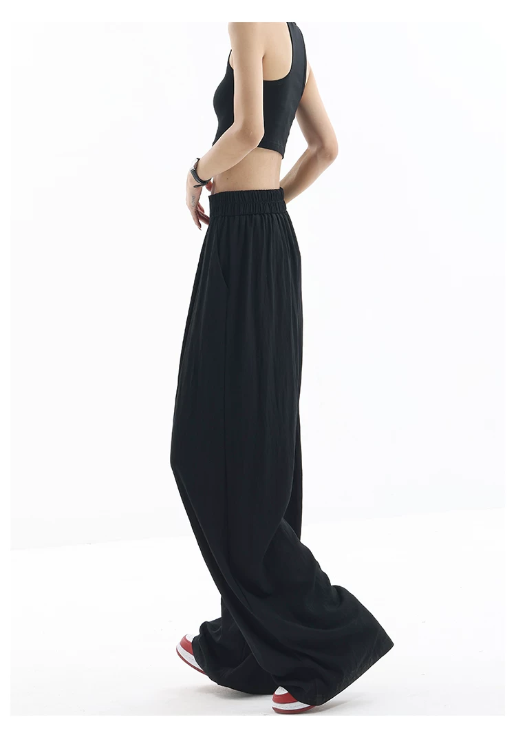 Quần dài lụa băng siêu mềm mùa hè của KEN STUDIO dành cho nữ với thiết kế lưng thun, quần ống rộng dáng rộng