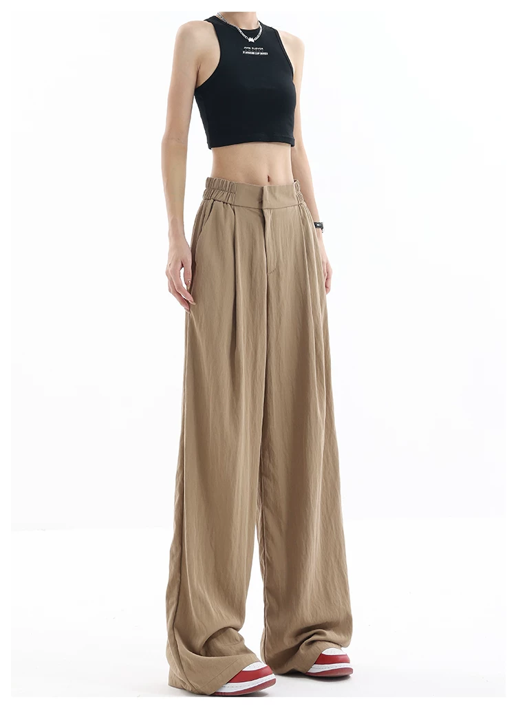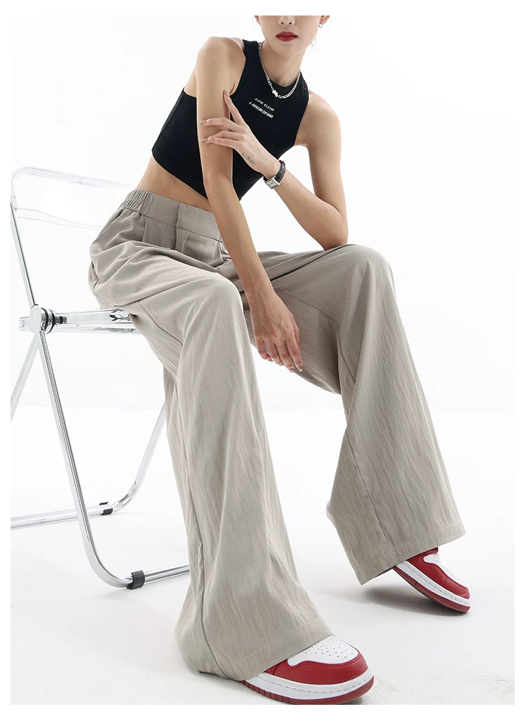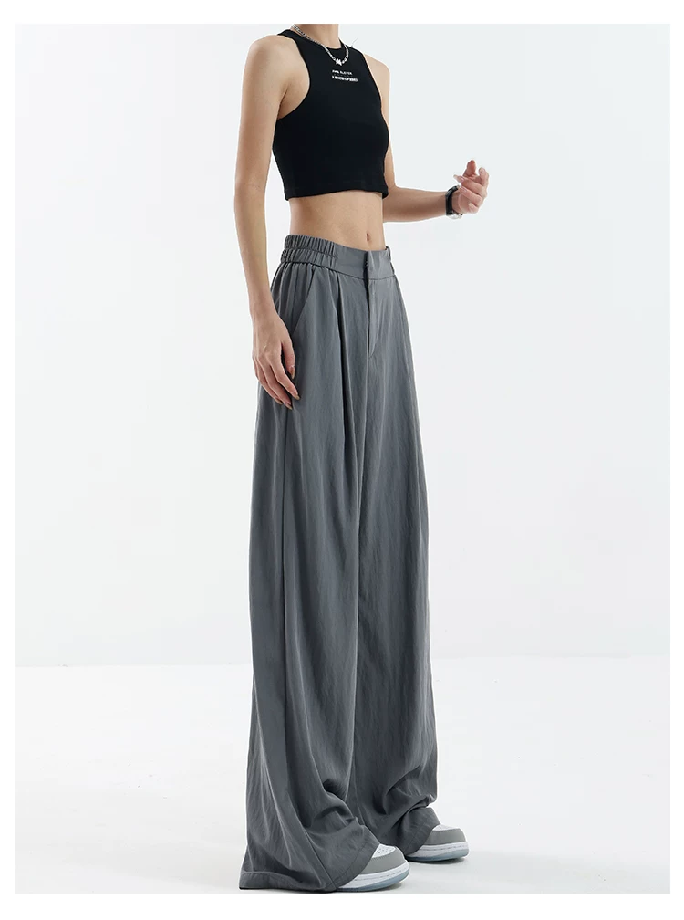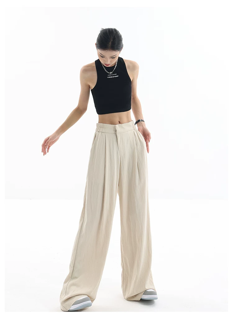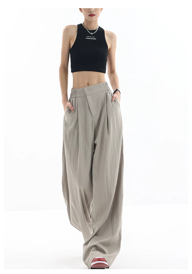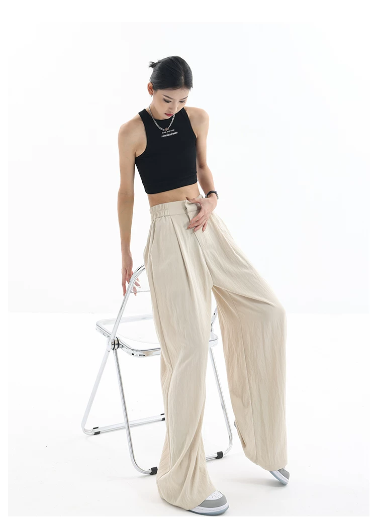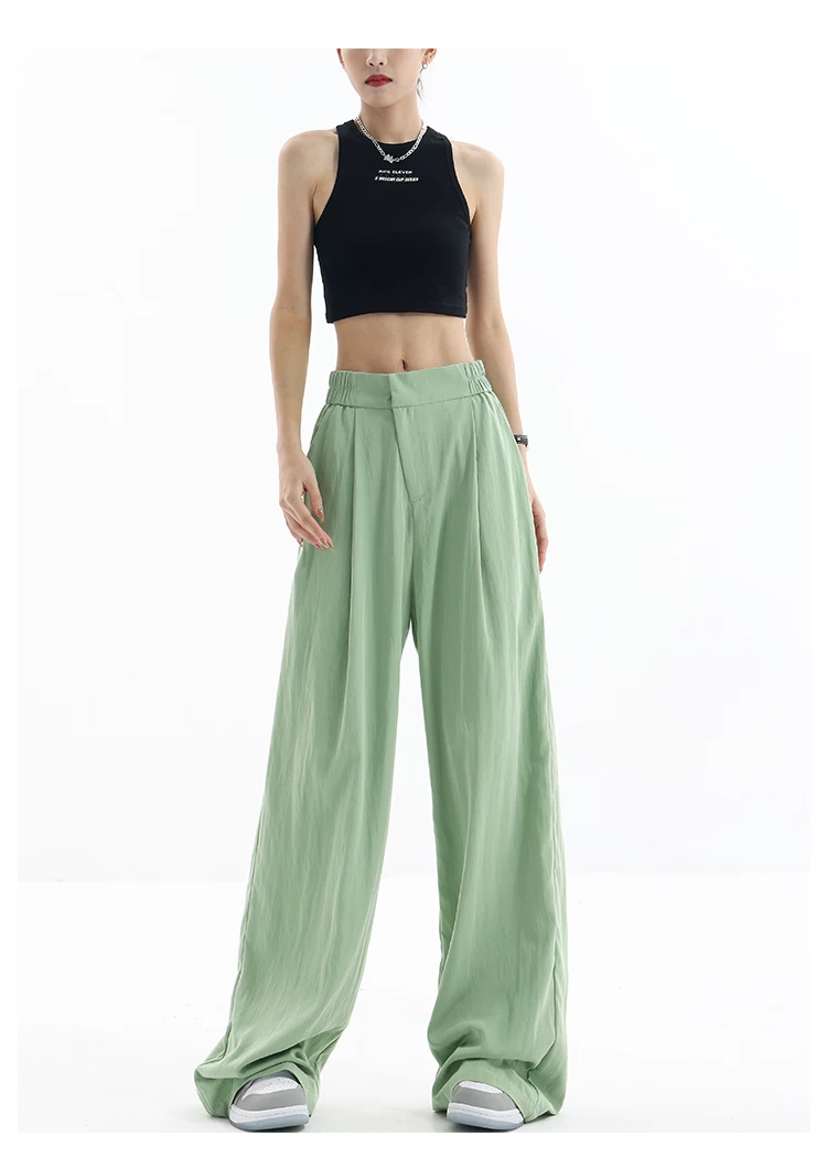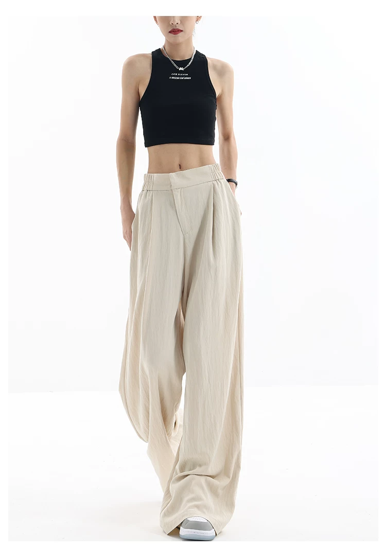 Quần dài lụa băng siêu mềm mùa hè của KEN STUDIO dành cho nữ với thiết kế lưng thun, quần ống rộng dáng rộng