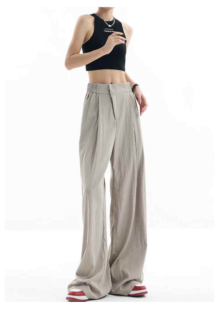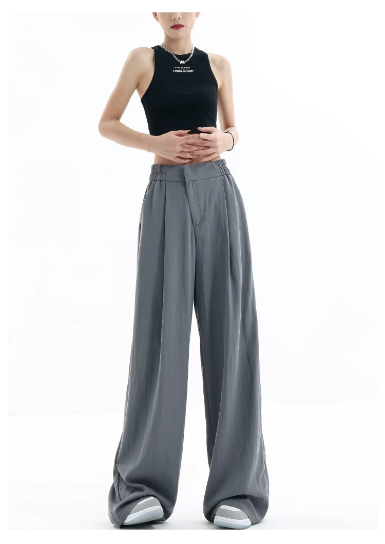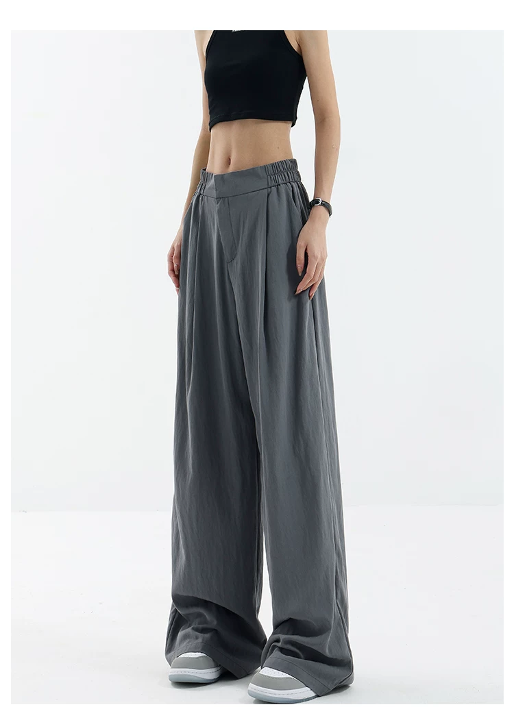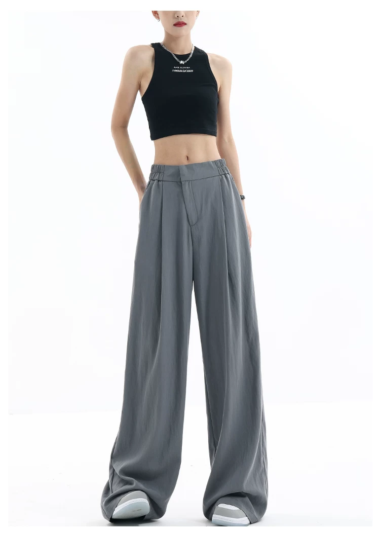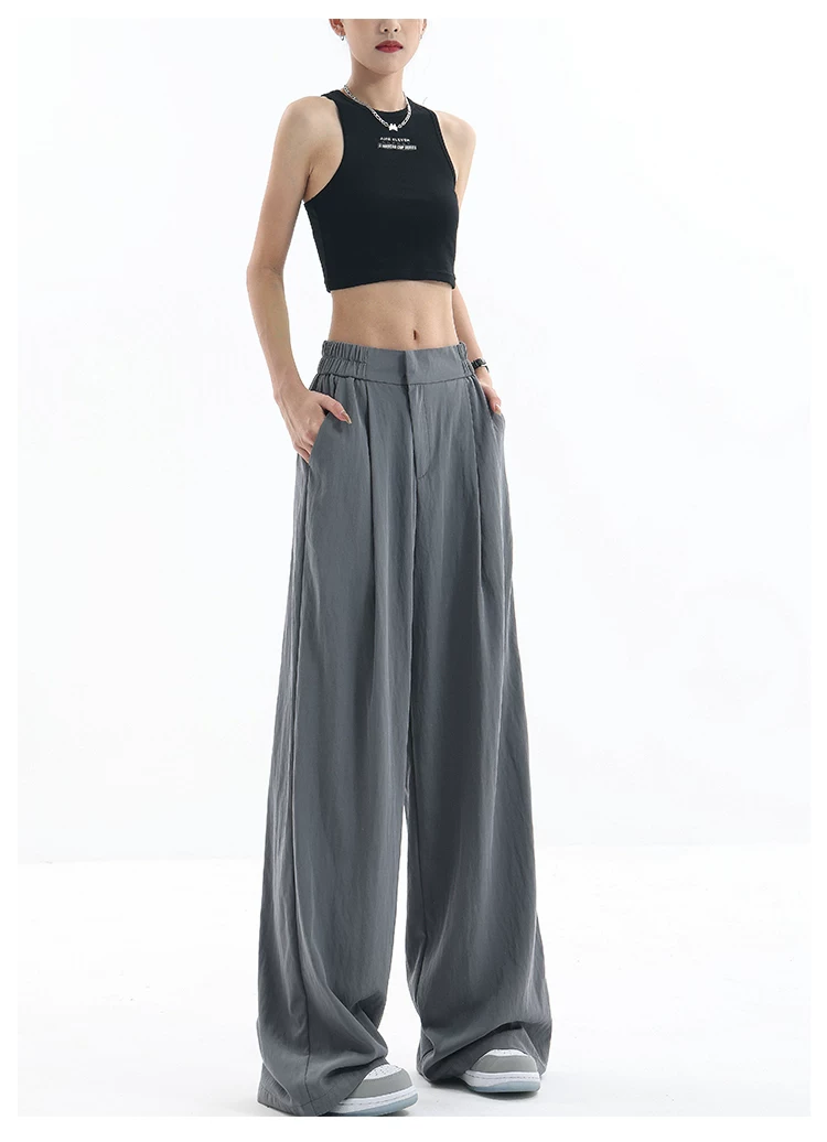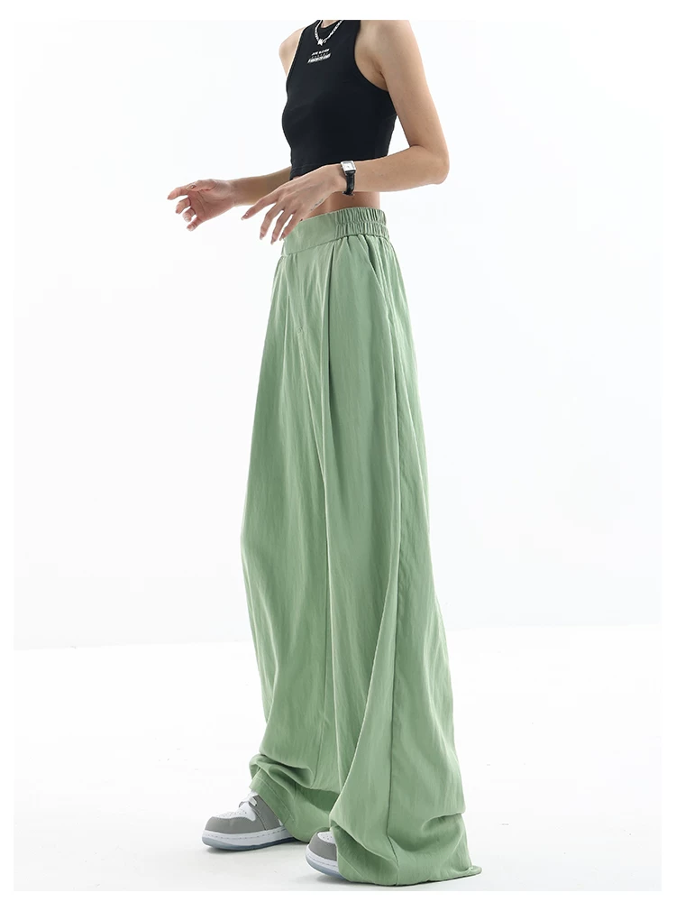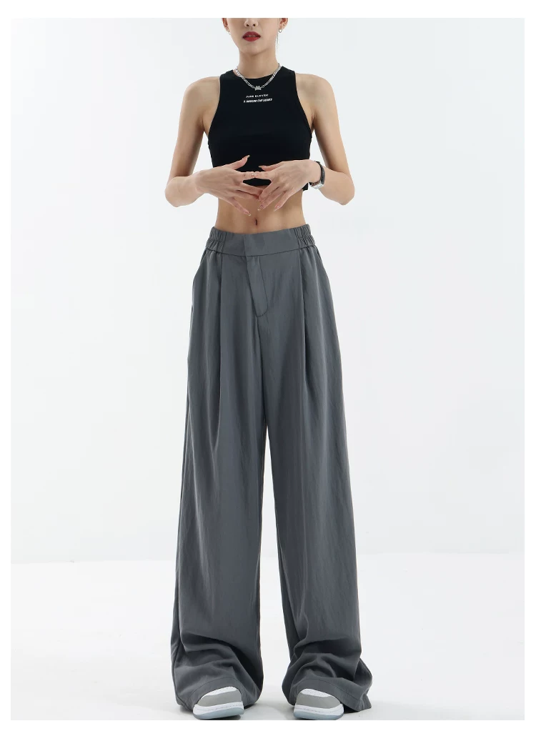 Quần dài lụa băng siêu mềm mùa hè của KEN STUDIO dành cho nữ với thiết kế lưng thun, quần ống rộng dáng rộng