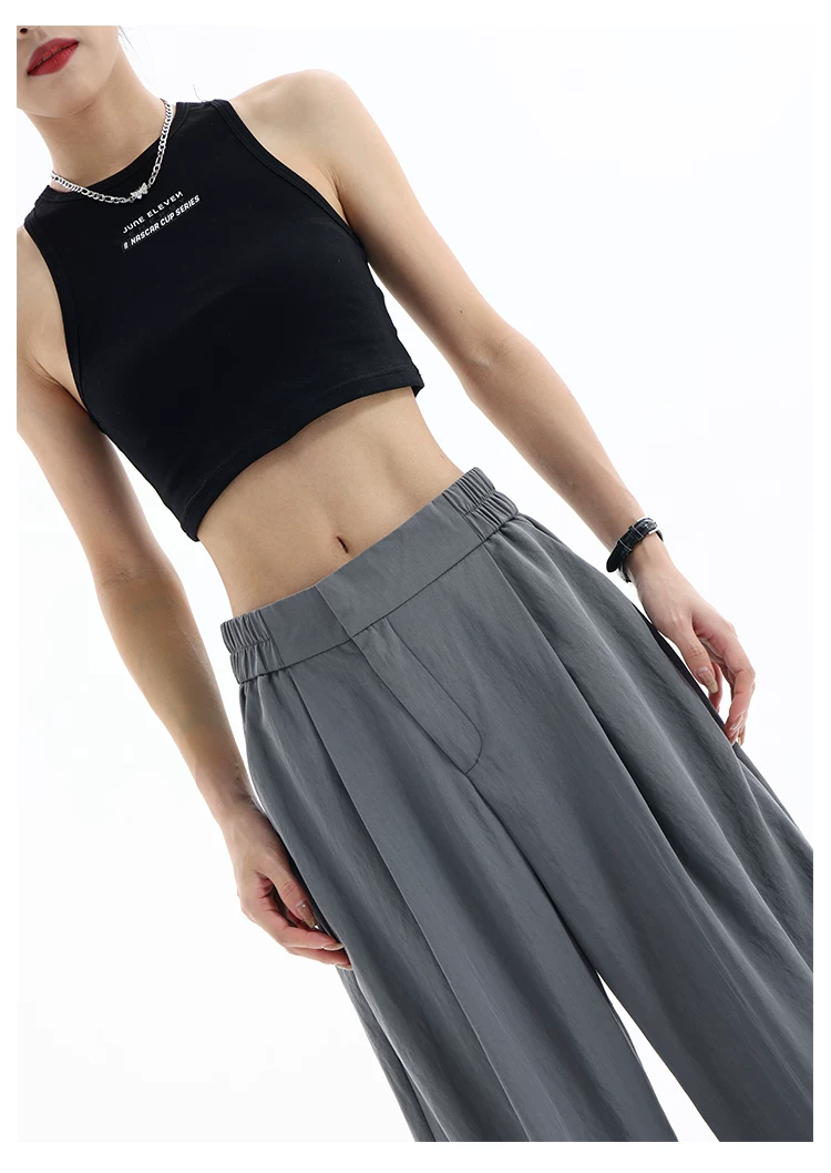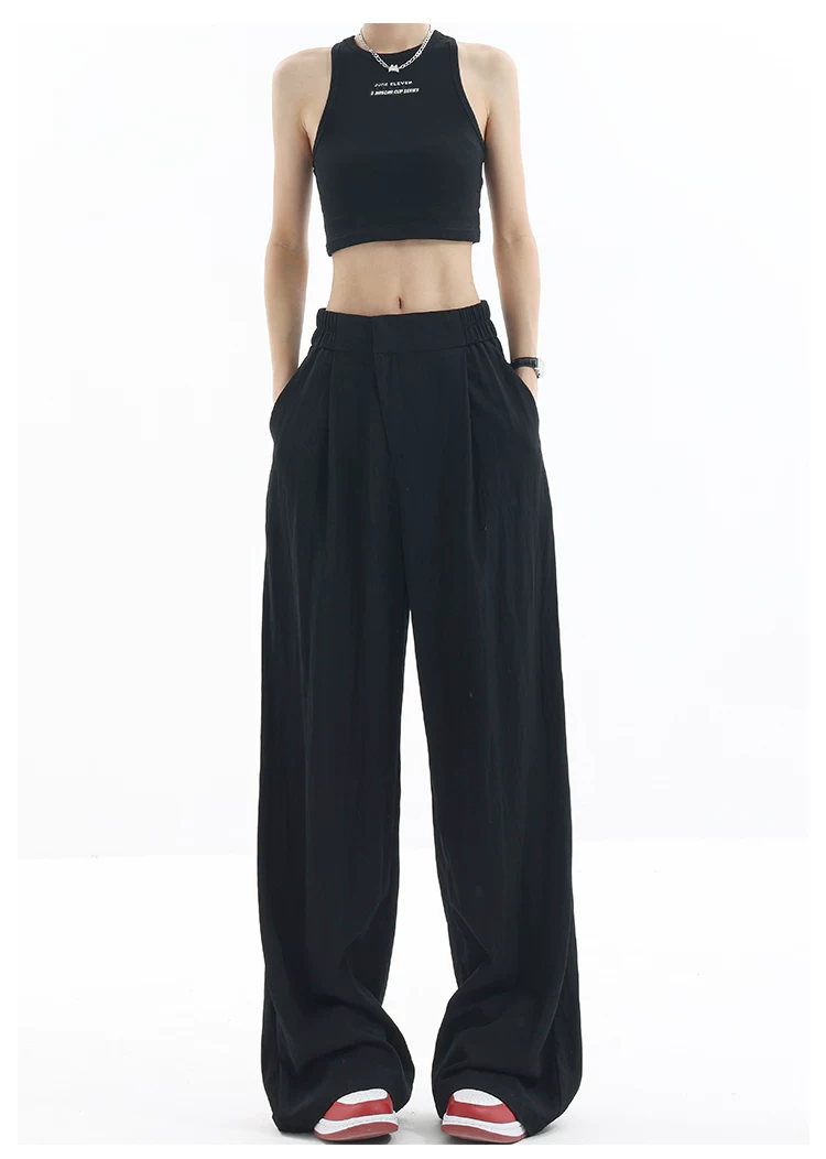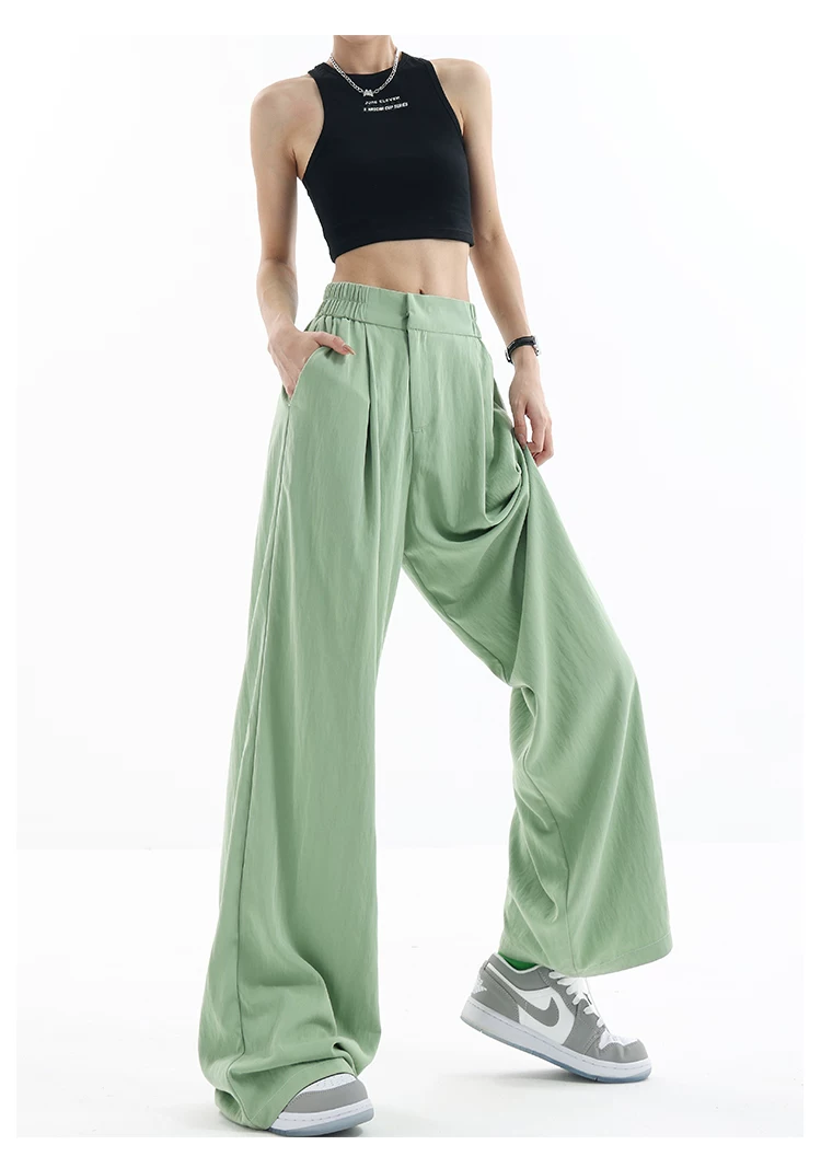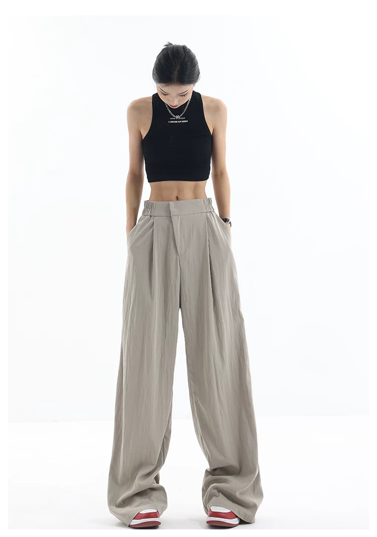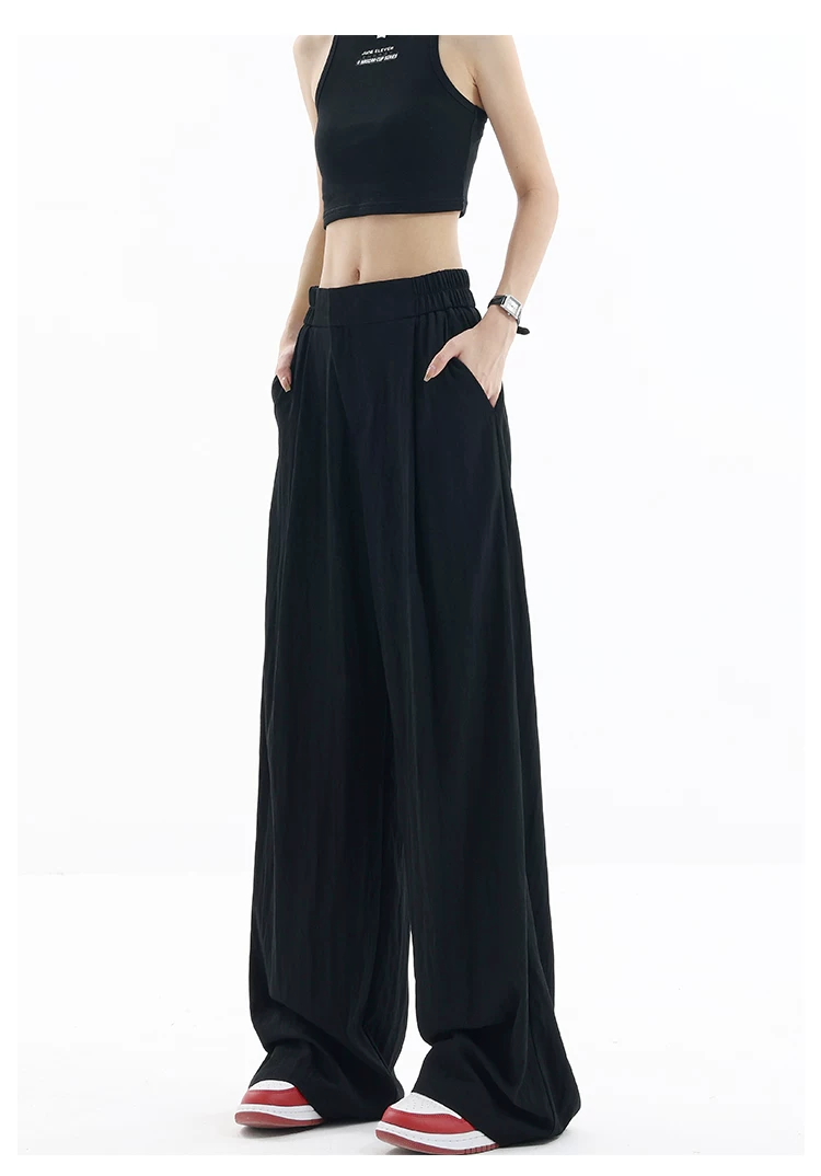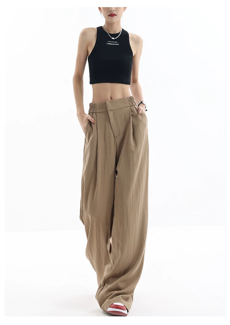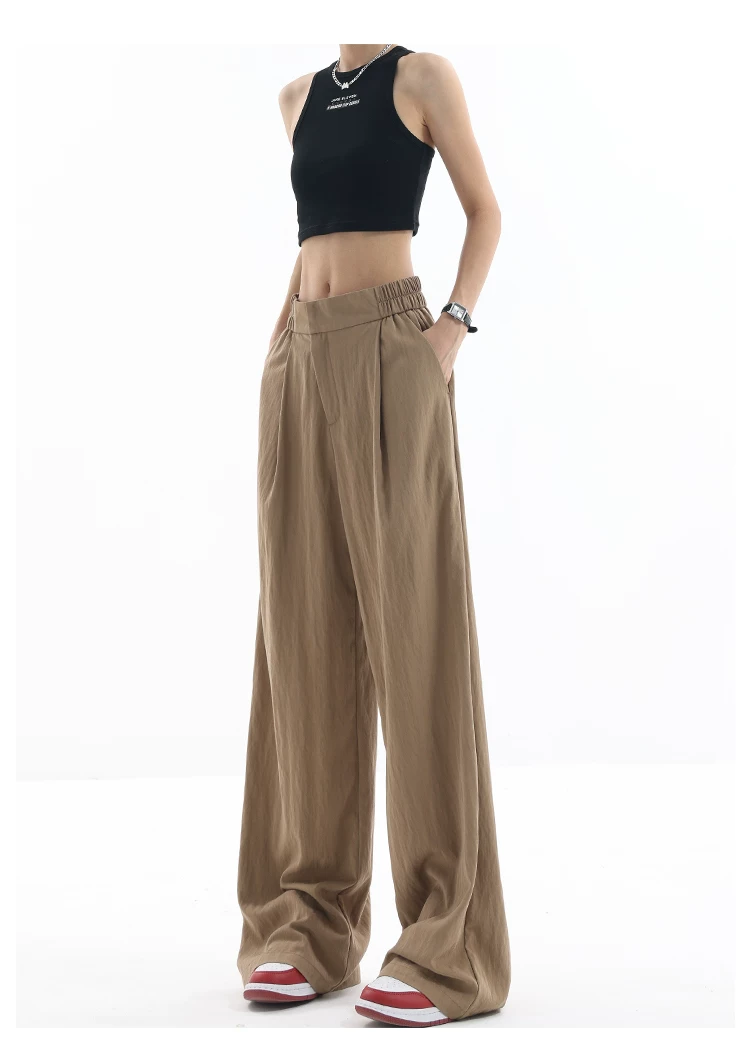 Quần dài lụa băng siêu mềm mùa hè của KEN STUDIO dành cho nữ với thiết kế lưng thun, quần ống rộng dáng rộng