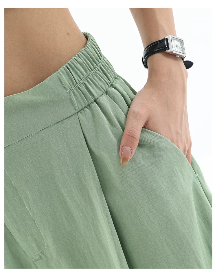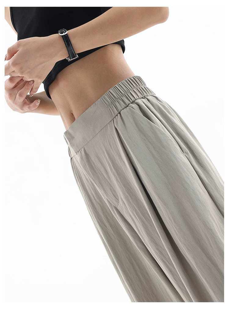 - Quần dài lụa băng siêu mềm mùa hè của KEN STUDIO dành cho nữ với thiết kế lưng thun, quần ống rộng dáng rộng