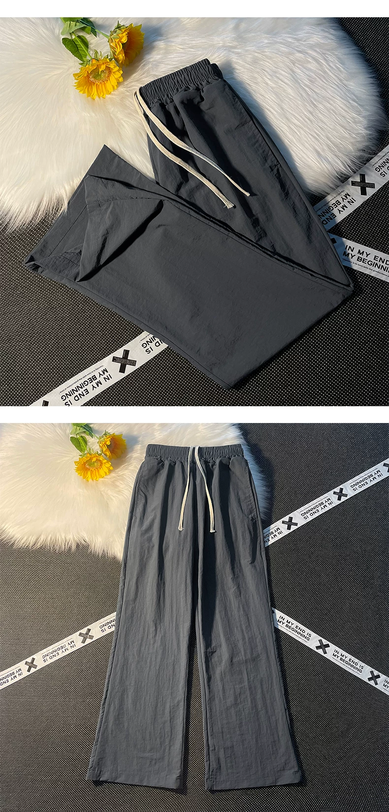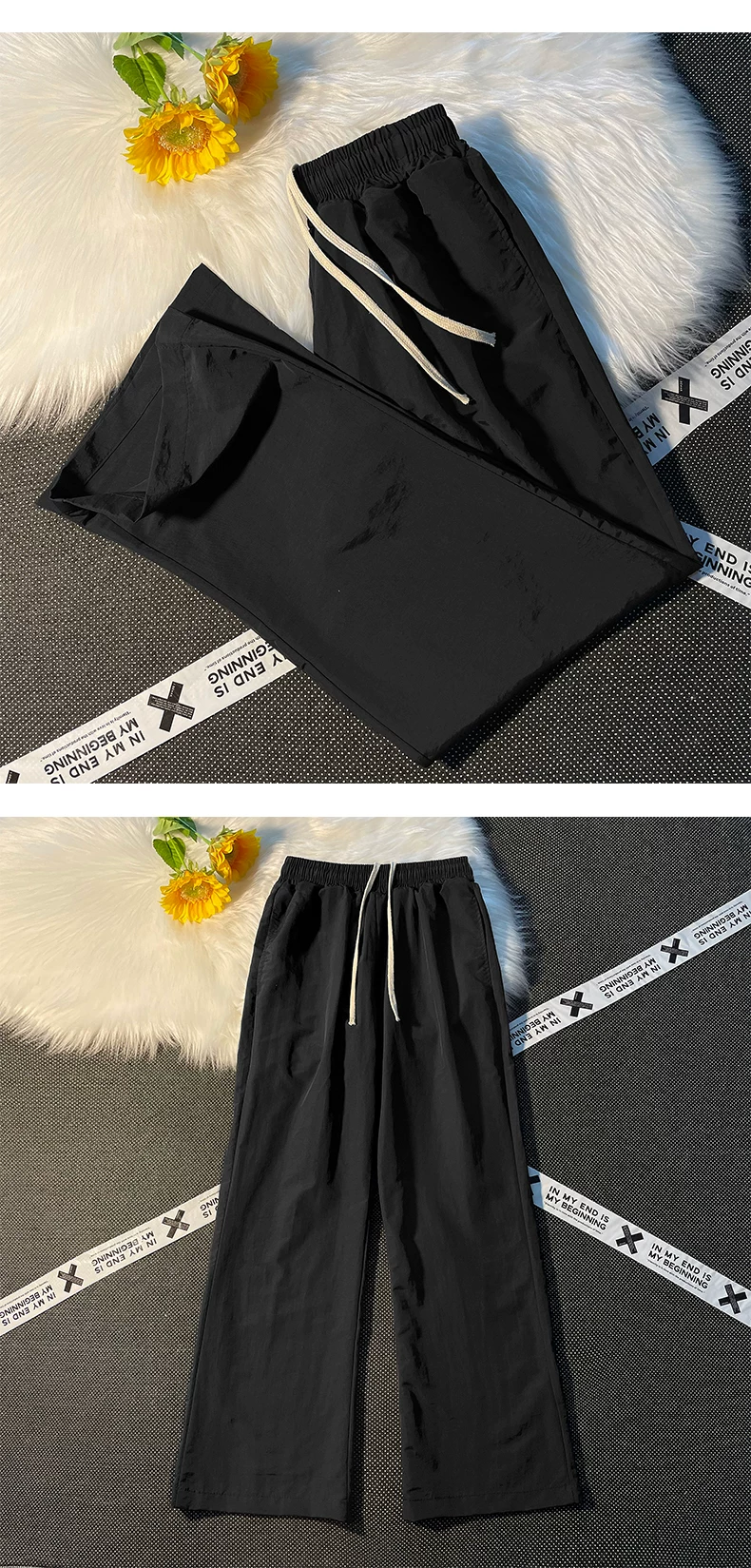 - Quần dài mùa hè mỏng, nhanh khô, kiểu dáng thường ngày dành cho nam, dáng rộng, hơi loe, phong cách thời thượng, quần dù thể thao đường phố.