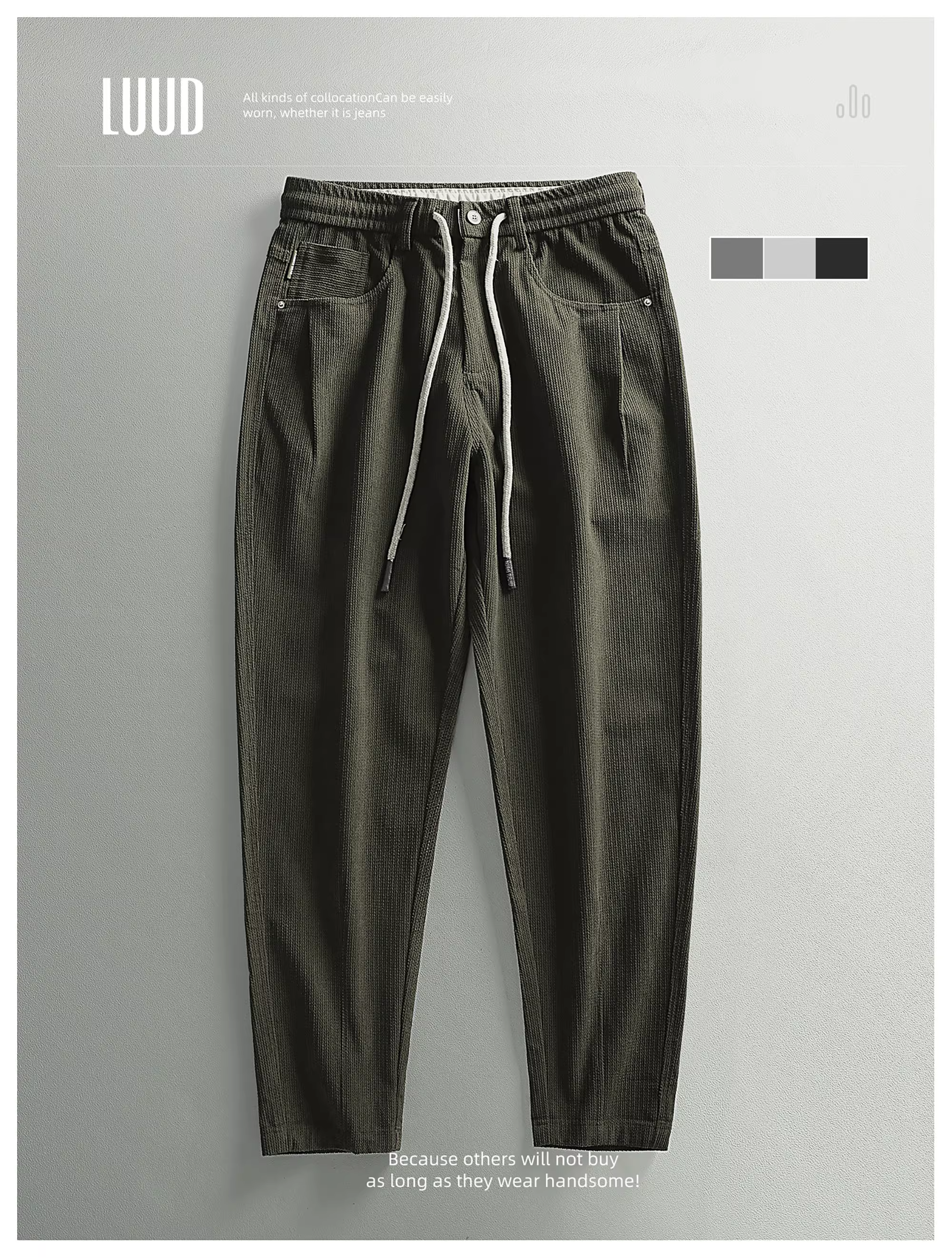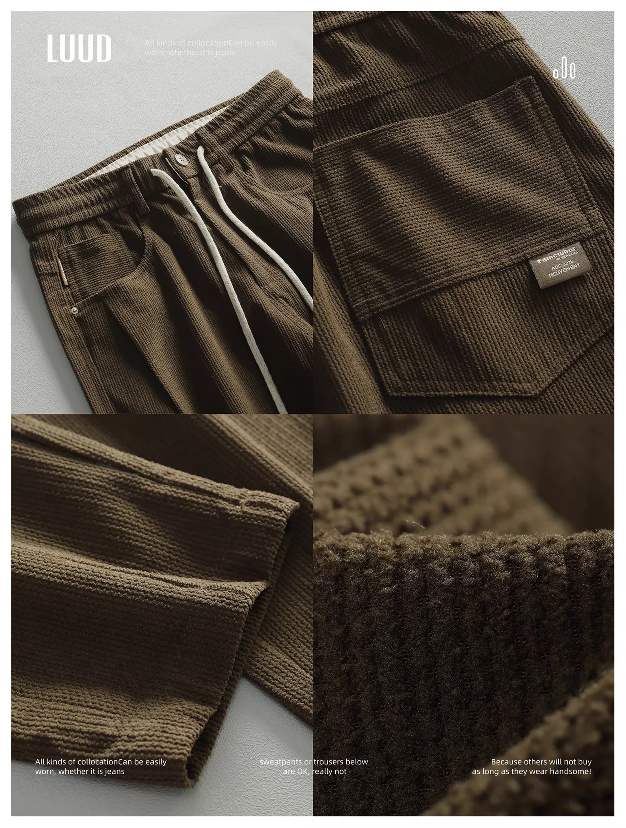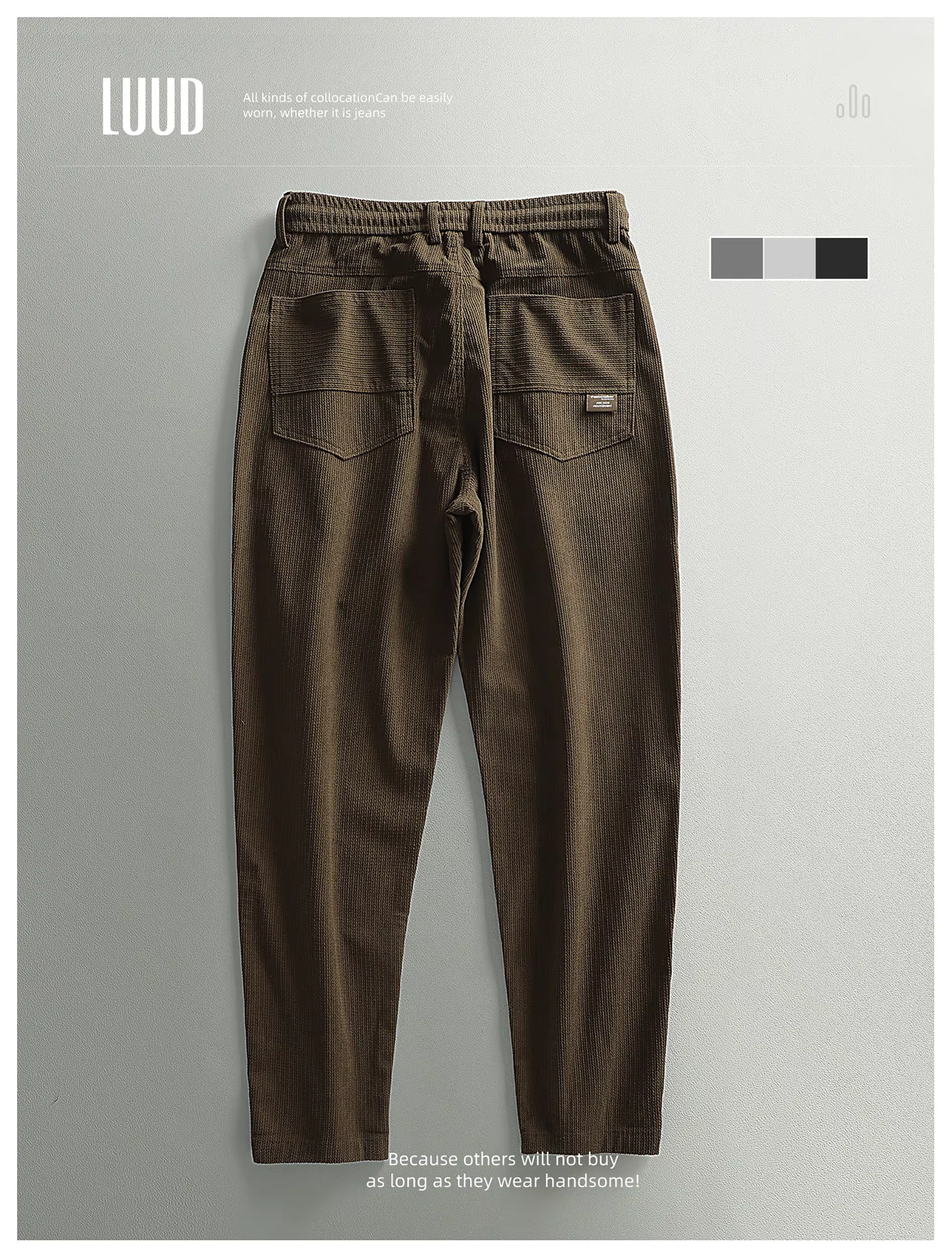 - Quần dài nam LUUD phong cách retro sang trọng nhẹ nhàng, thời trang, đa năng, dáng ôm, chất liệu nhung ấm áp.