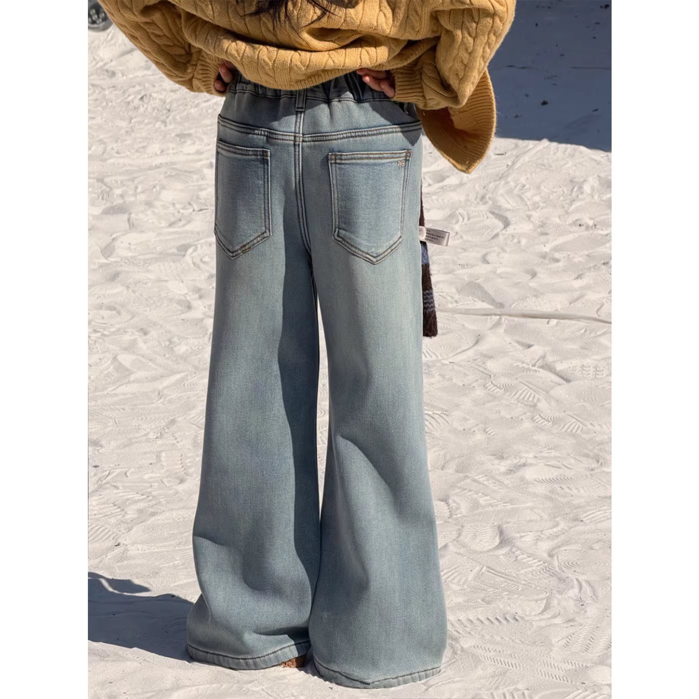 - Quần dài ống đứng lót lông cừu cho bé gái, trang phục mùa đông có mặt dây chuyền KT, lông cừu tích hợp dày dặn, quần dài dáng rộng thoải mái cho trẻ em, kiểu dáng thời trang