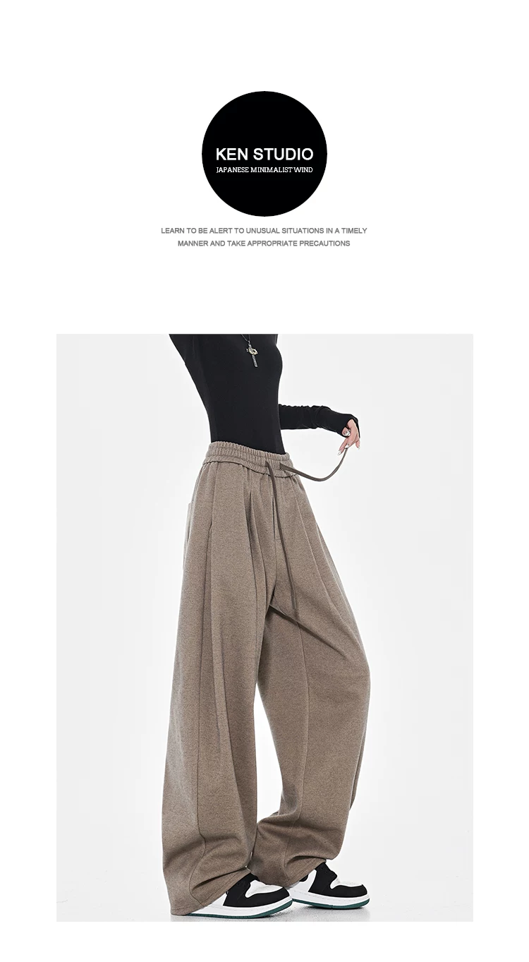 Quần dài ống rộng chất liệu dày dặn kiểu dáng lười biếng mùa thu đông của KEN STUDIO dành cho nữ