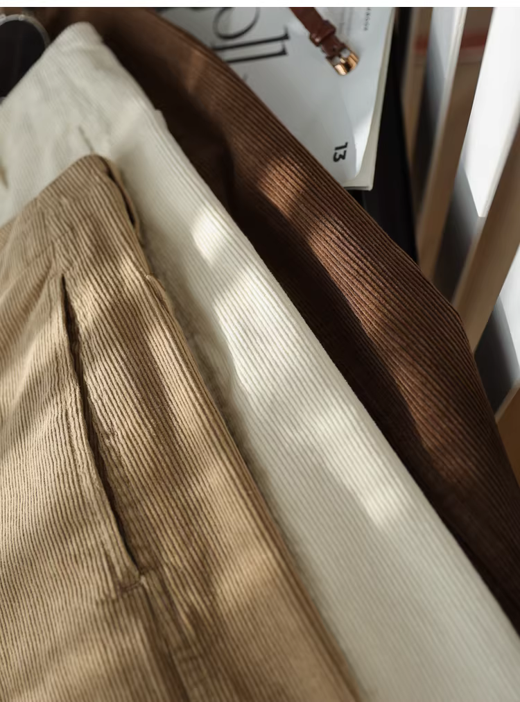 - Quần dài vải nhung cotton nguyên chất thời trang cổ điển mùa thu đông dáng rộng dáng rộng giảm béo quần ống rộng thẳng lưng cao dành cho nữ phong cách mới