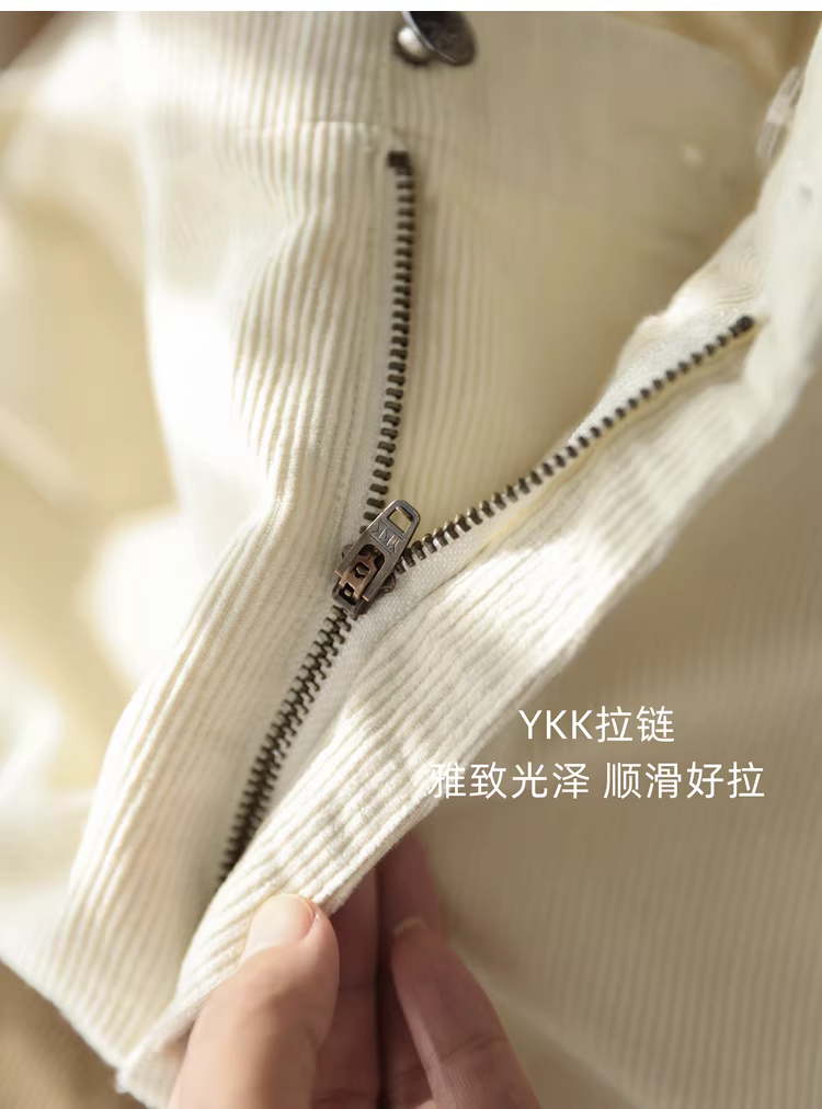 条绒的纹理很清晰,布面有温暖的绒感,时髦又显瘦