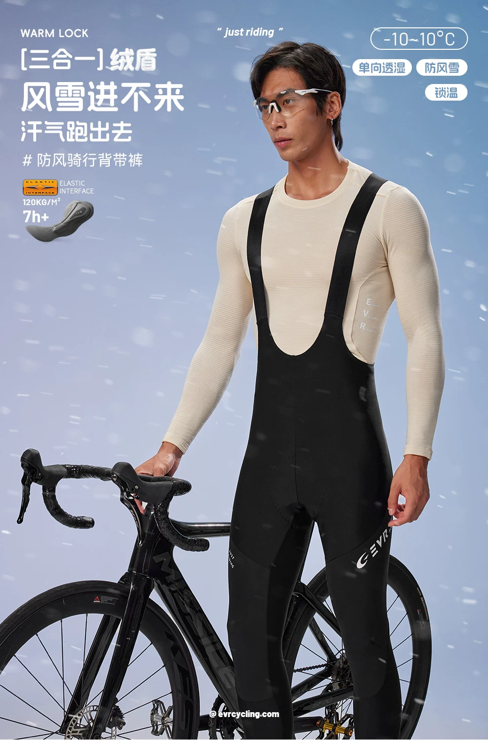 - Quần đạp xe EVR Double Arrow dành cho nam, mùa đông, lót lông cừu, giữ ấm, chống gió, chống lạnh, quần bib xe đạp đường trường, quần dài