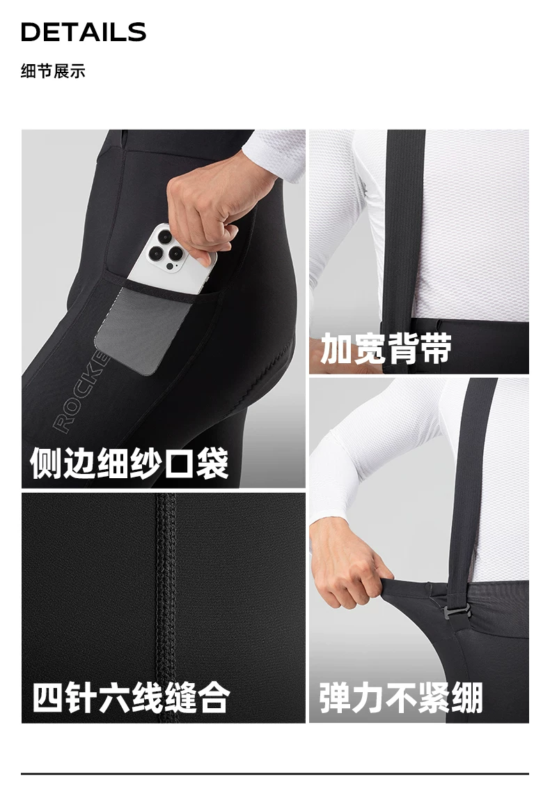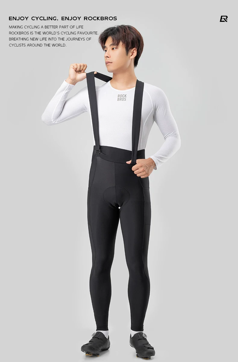 - Quần đạp xe Rock Brothers bib dành cho nam, chất liệu fleece giữ ấm, chống gió, thích hợp cho xe đạp đường trường, mùa thu đông, ngoài trời, quần dài.