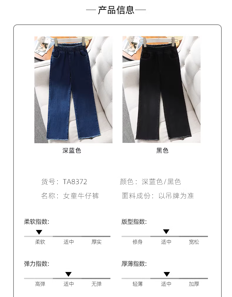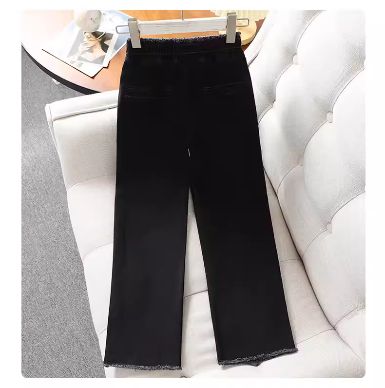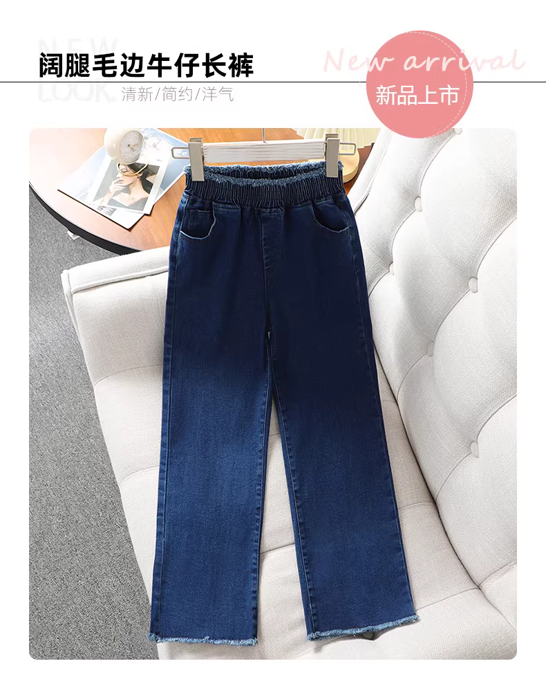 Quần denim ống rộng cho bé gái, sành điệu và thời trang cho mùa xuân, quần rộng cho bé gái cho mùa xuân và mùa thu, quần dài ống thẳng rộng rãi cho trẻ em.
