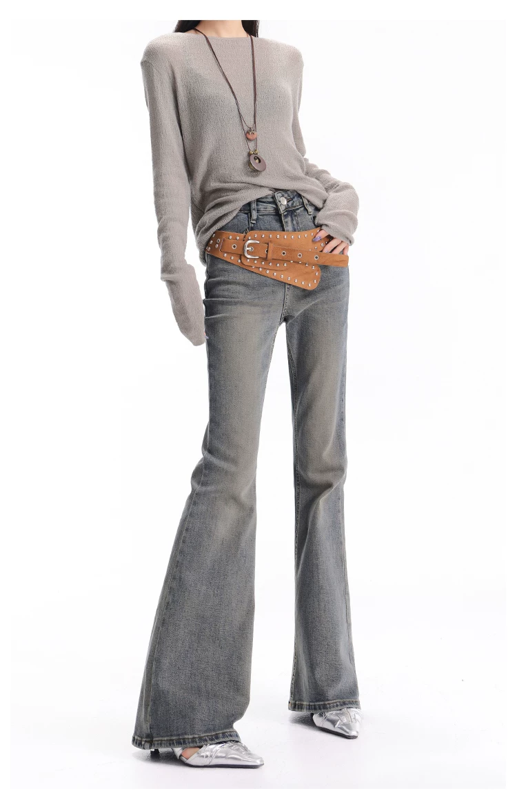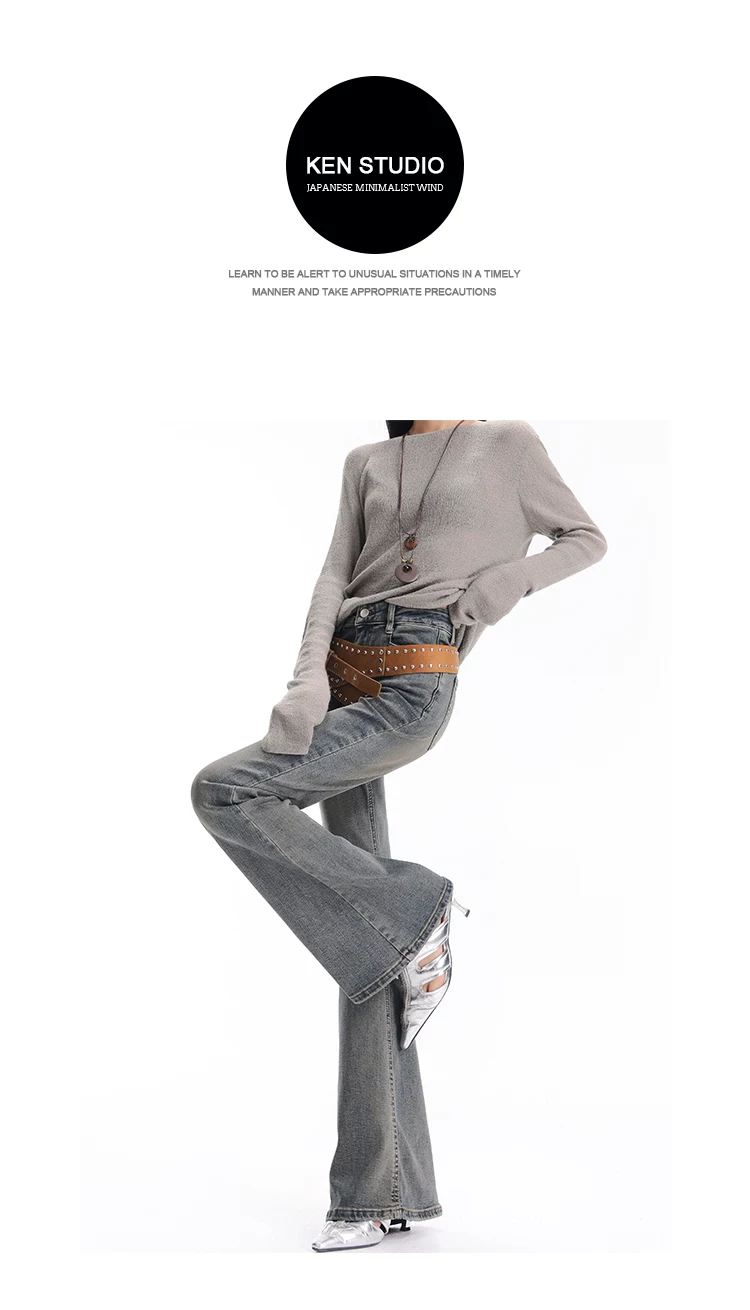 Quần jean bootcut màu xanh cổ điển thu đông của KEN STUDIO dành cho nữ, cạp cao, co giãn, ôm vừa vặn, quần kiểu móng ngựa thon gọn