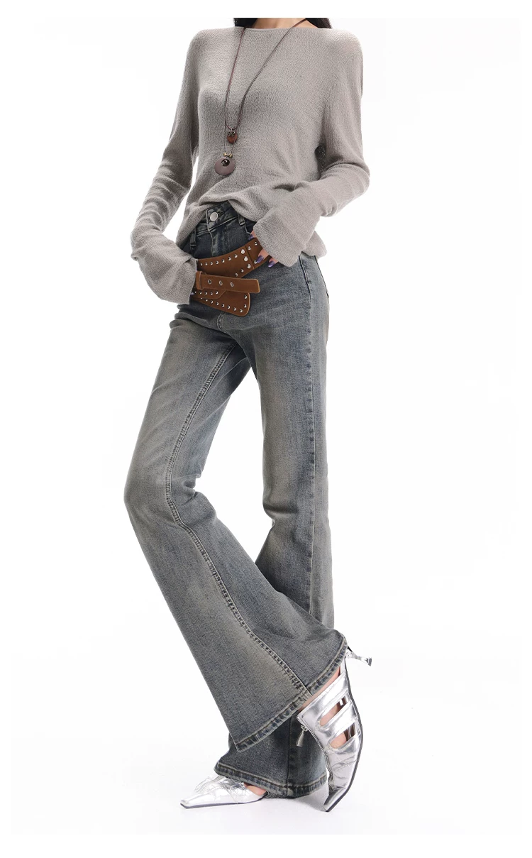 - Quần jean bootcut màu xanh cổ điển thu đông của KEN STUDIO dành cho nữ, cạp cao, co giãn, ôm vừa vặn, quần kiểu móng ngựa thon gọn
