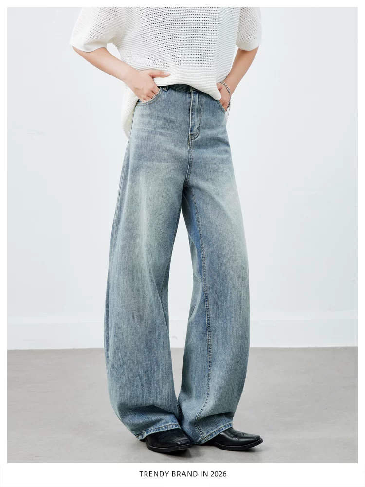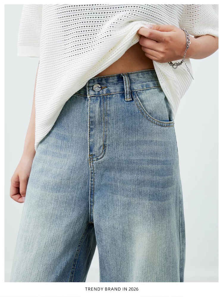 - Quần jean cổ điển kiểu Mỹ dành cho nam và nữ, quần ống cong thời trang mùa hè, quần dài chạm đất dáng rộng thoải mái.