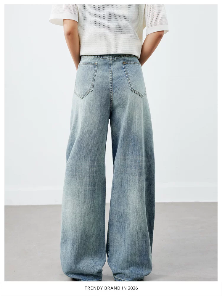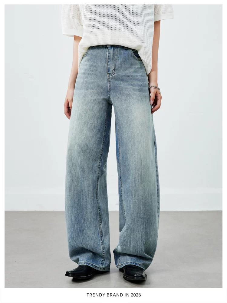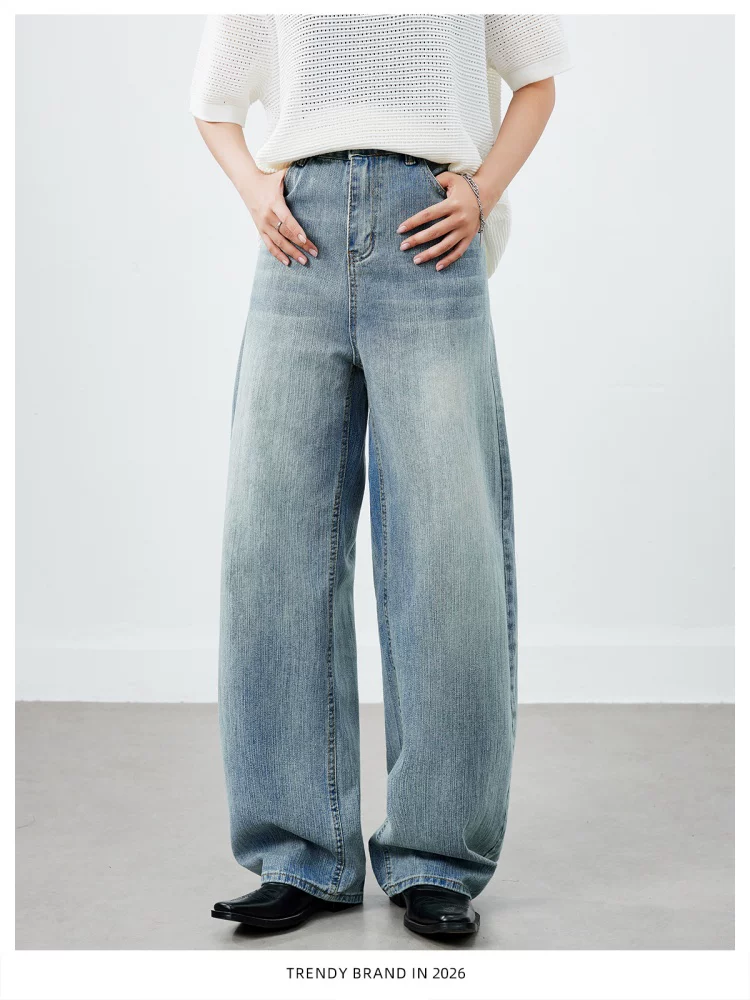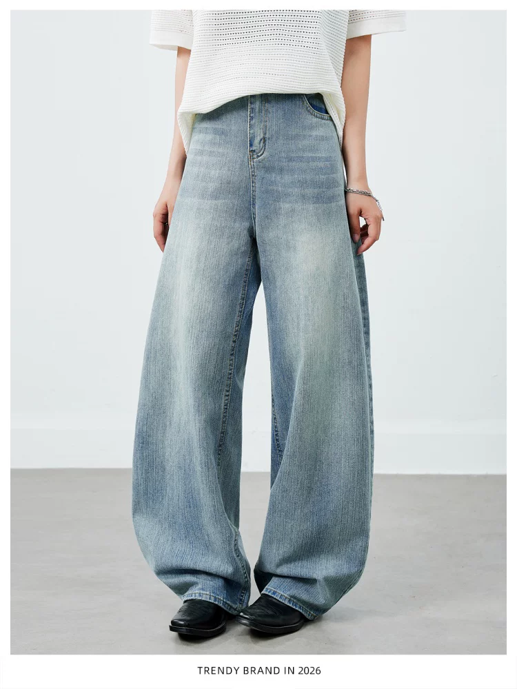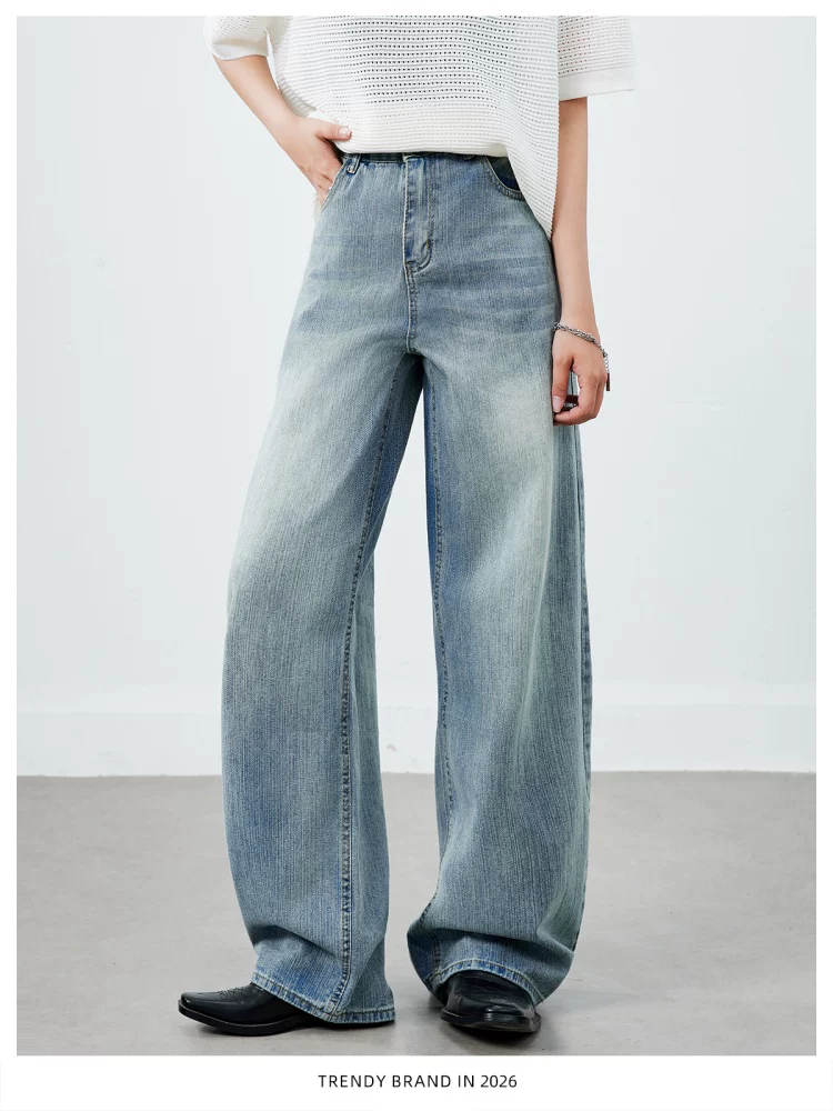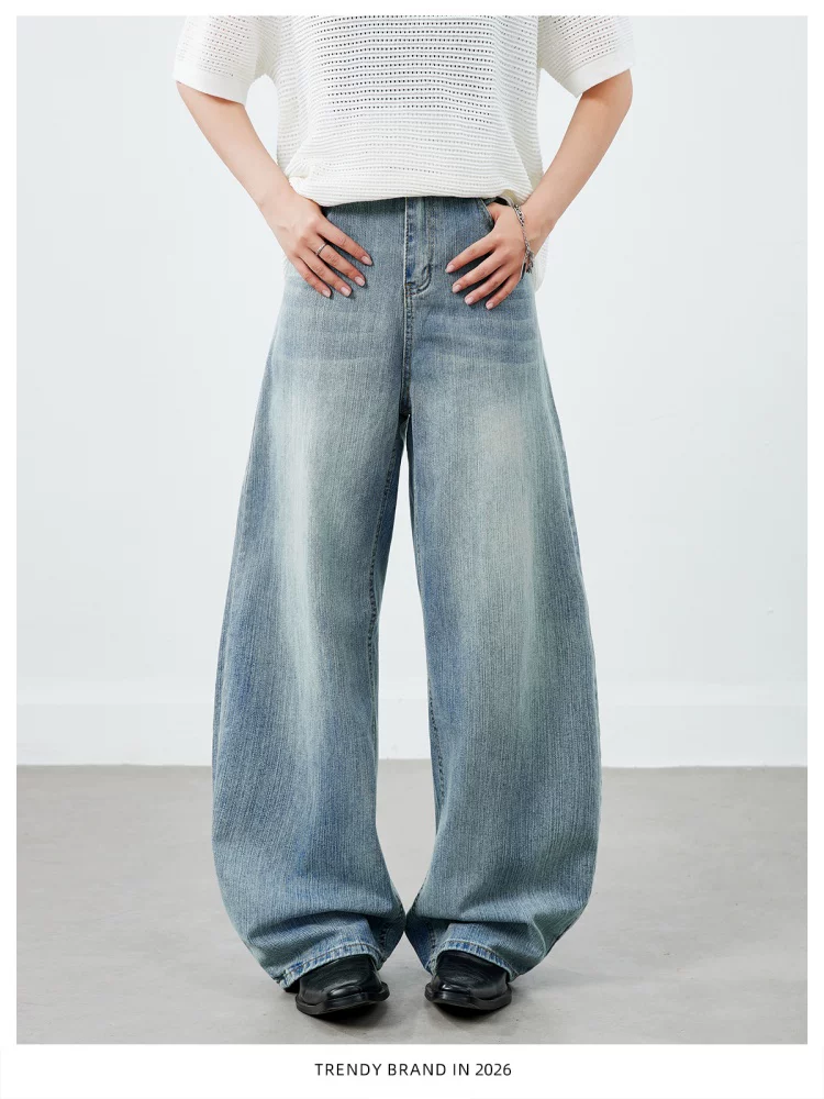 Quần jean cổ điển kiểu Mỹ dành cho nam và nữ, quần ống cong thời trang mùa hè, quần dài chạm đất dáng rộng thoải mái.