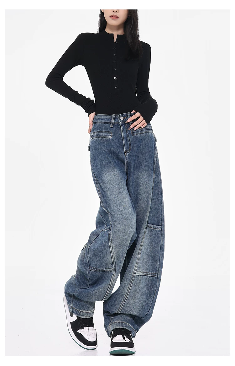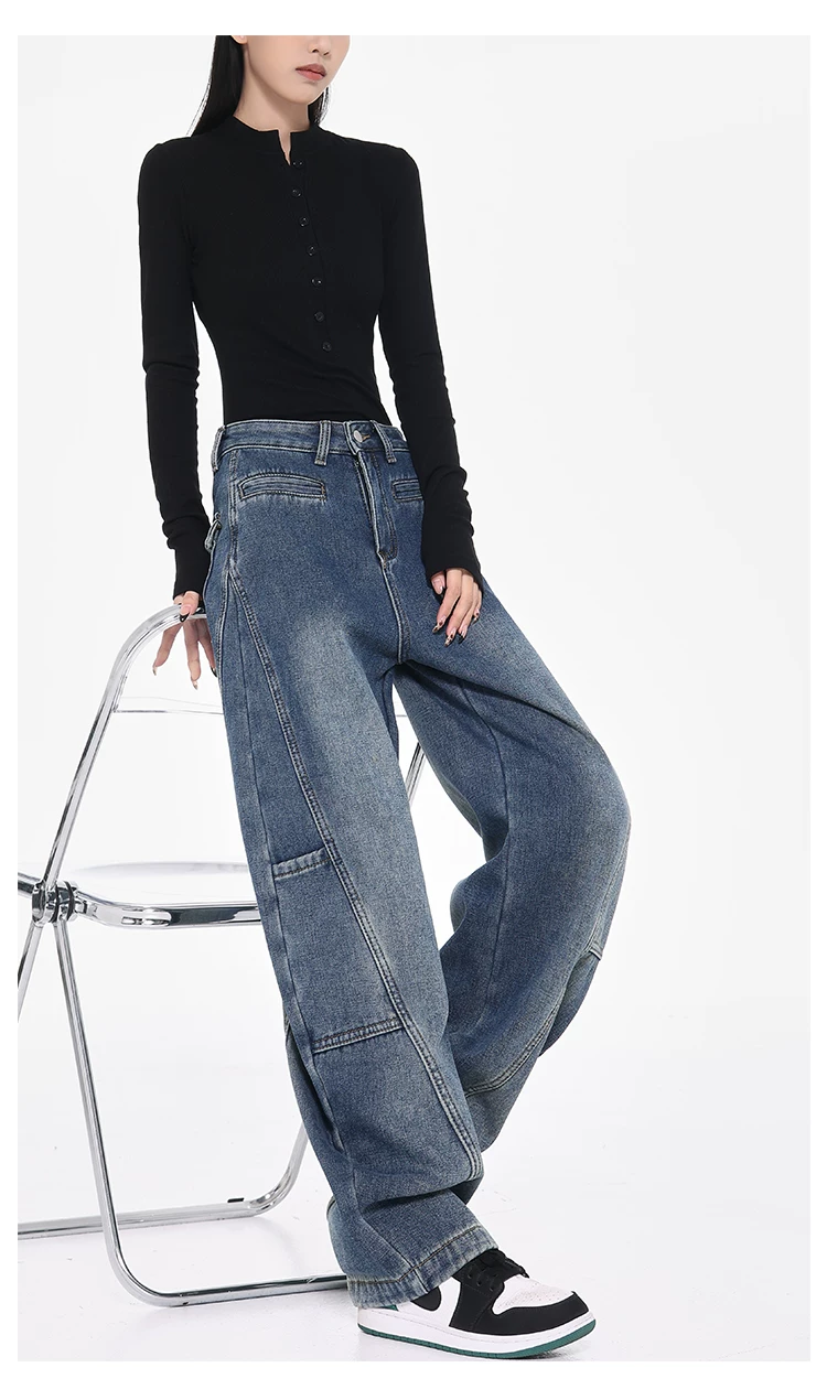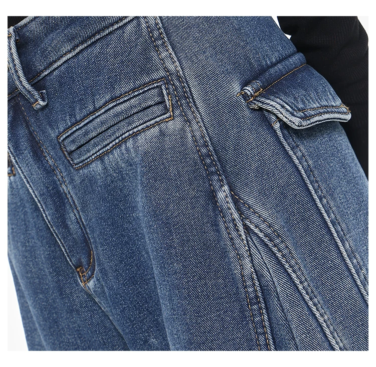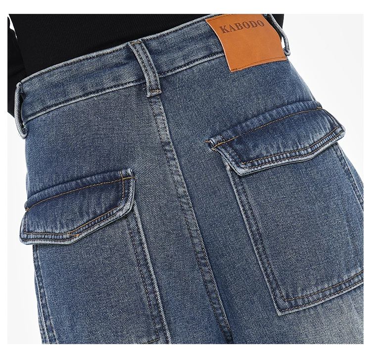 - Quần jean công sở cổ điển KEN STUDIO dành cho nữ, quần ống rộng lót lông cừu mùa thu đông, quần hình lưỡi liềm, quần chuối, quần dài đến sàn