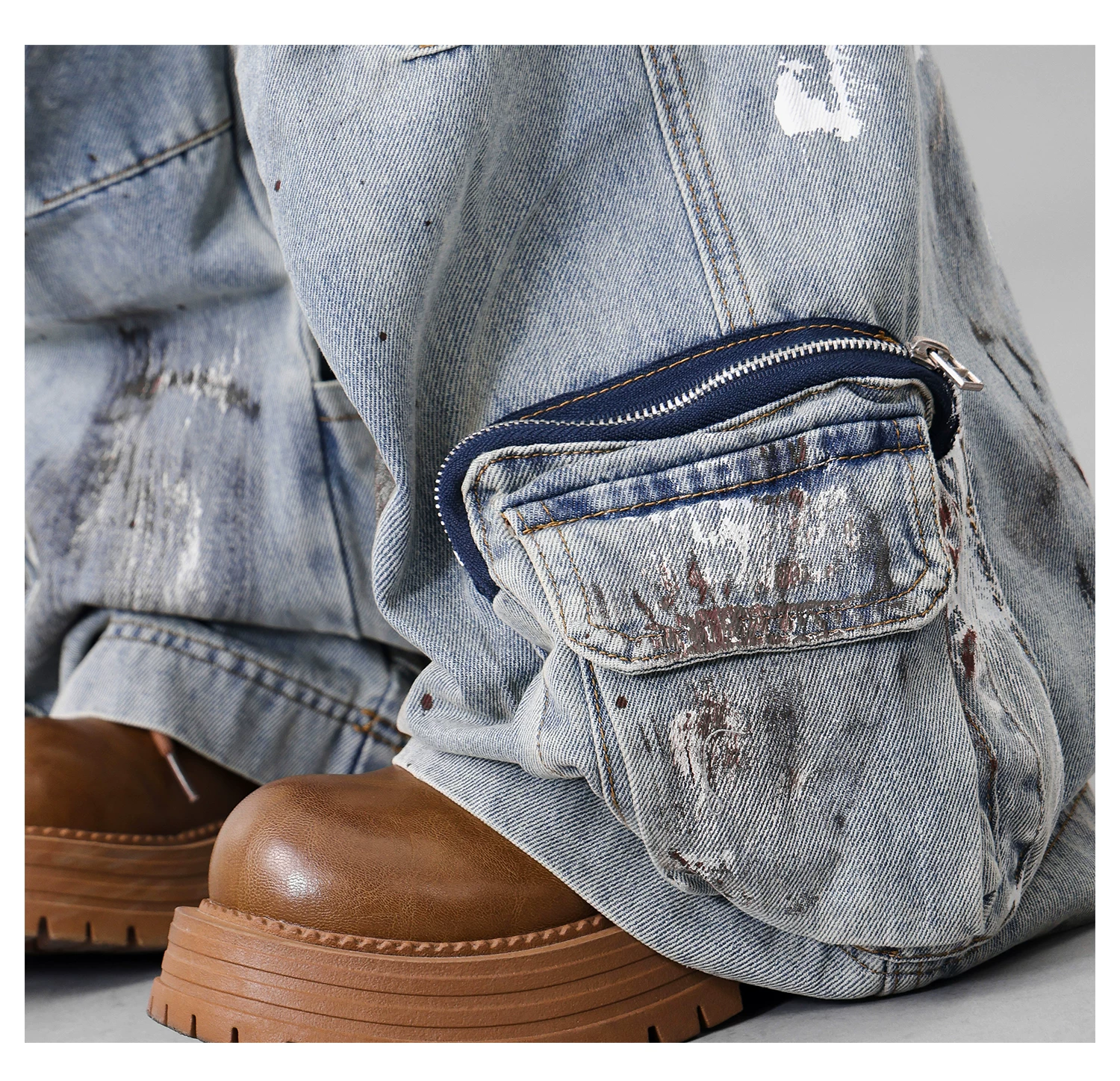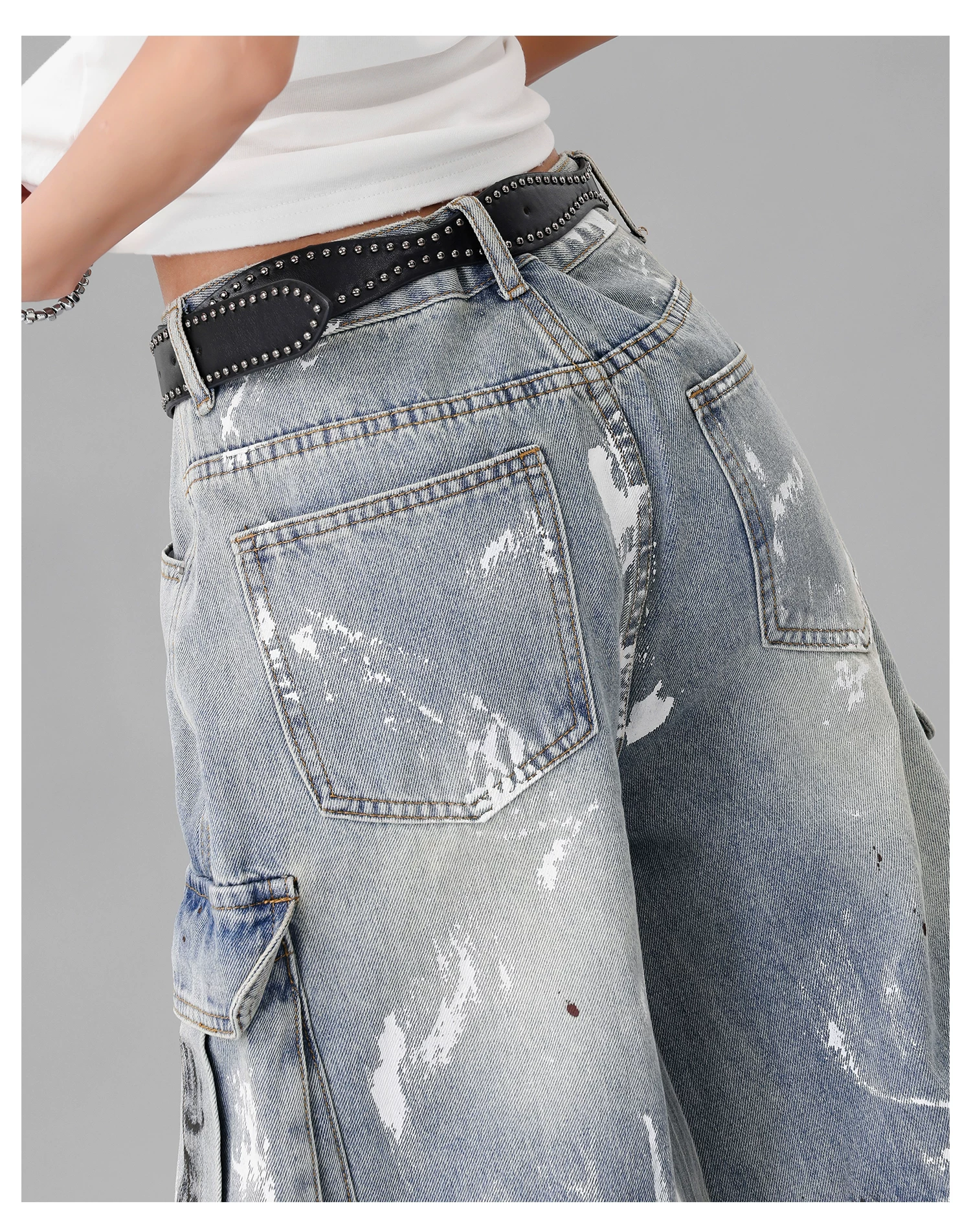 - Quần jean công sở thiết kế nhiều túi sơn kiểu cổ điển của KEN STUDIO dành cho nữ, quần ống rộng lưng cao mùa hè