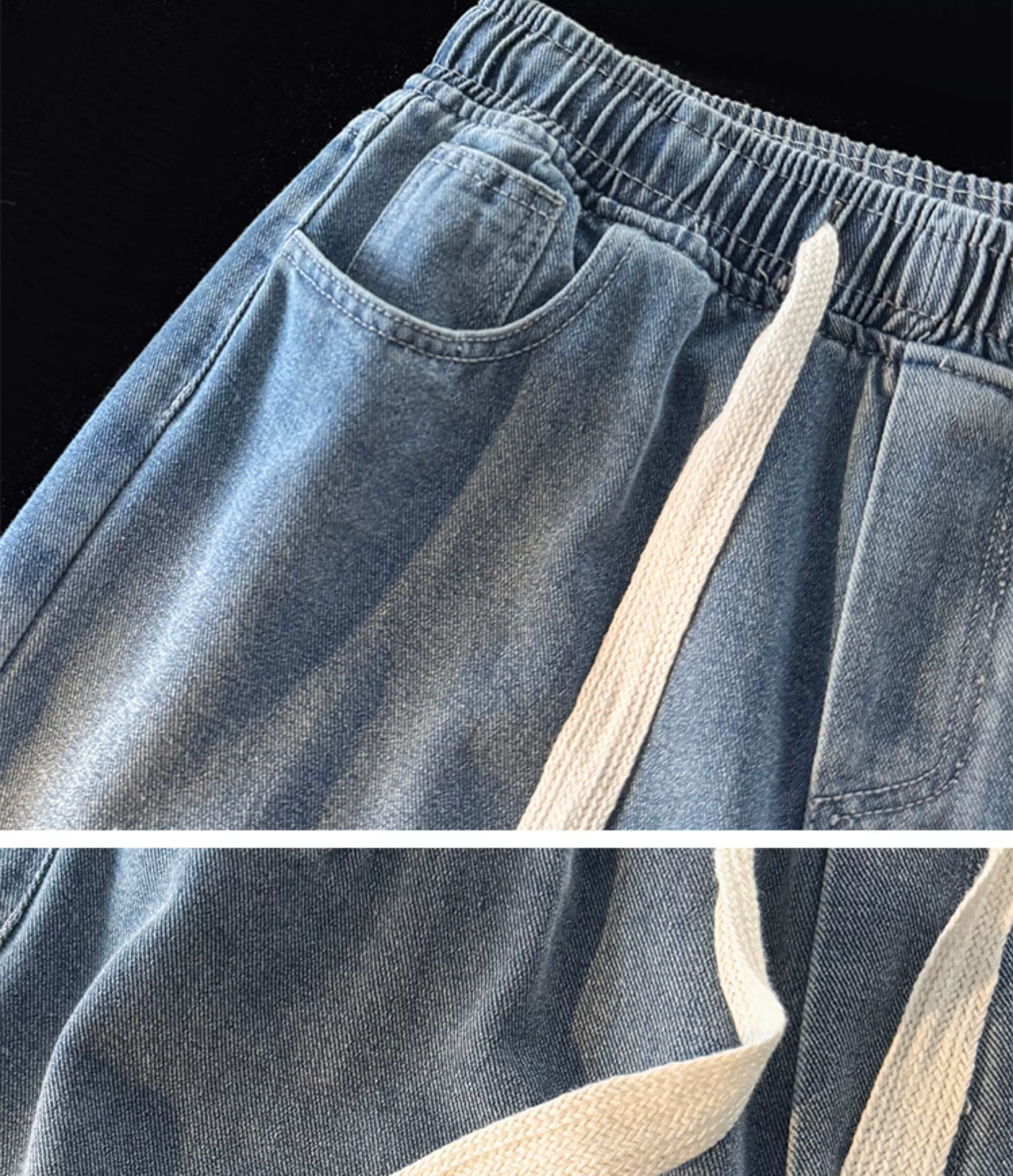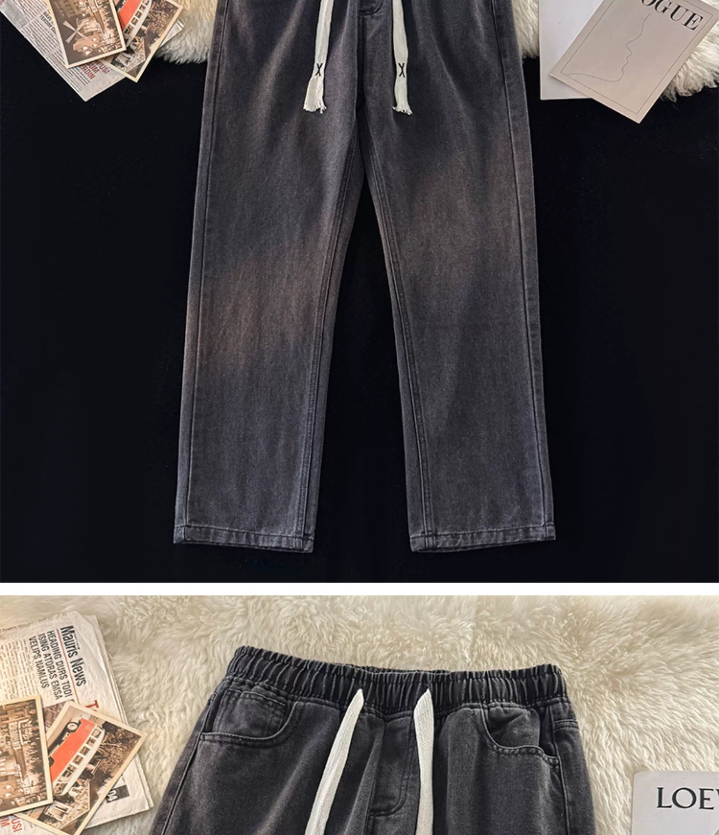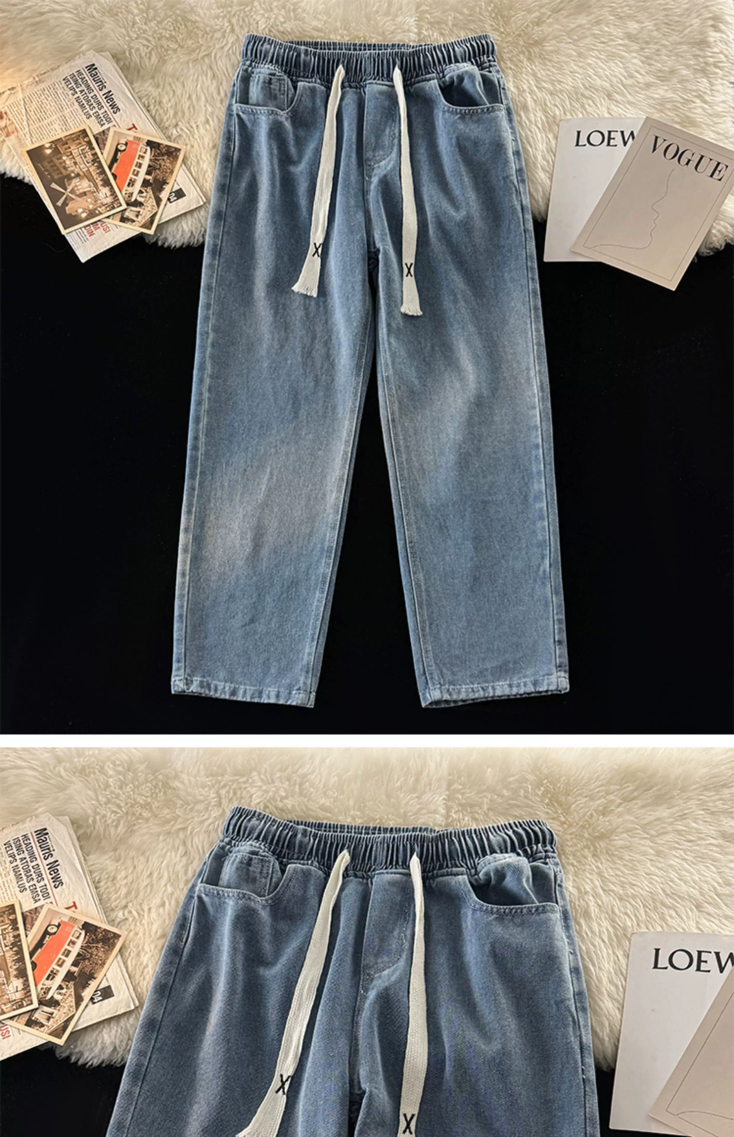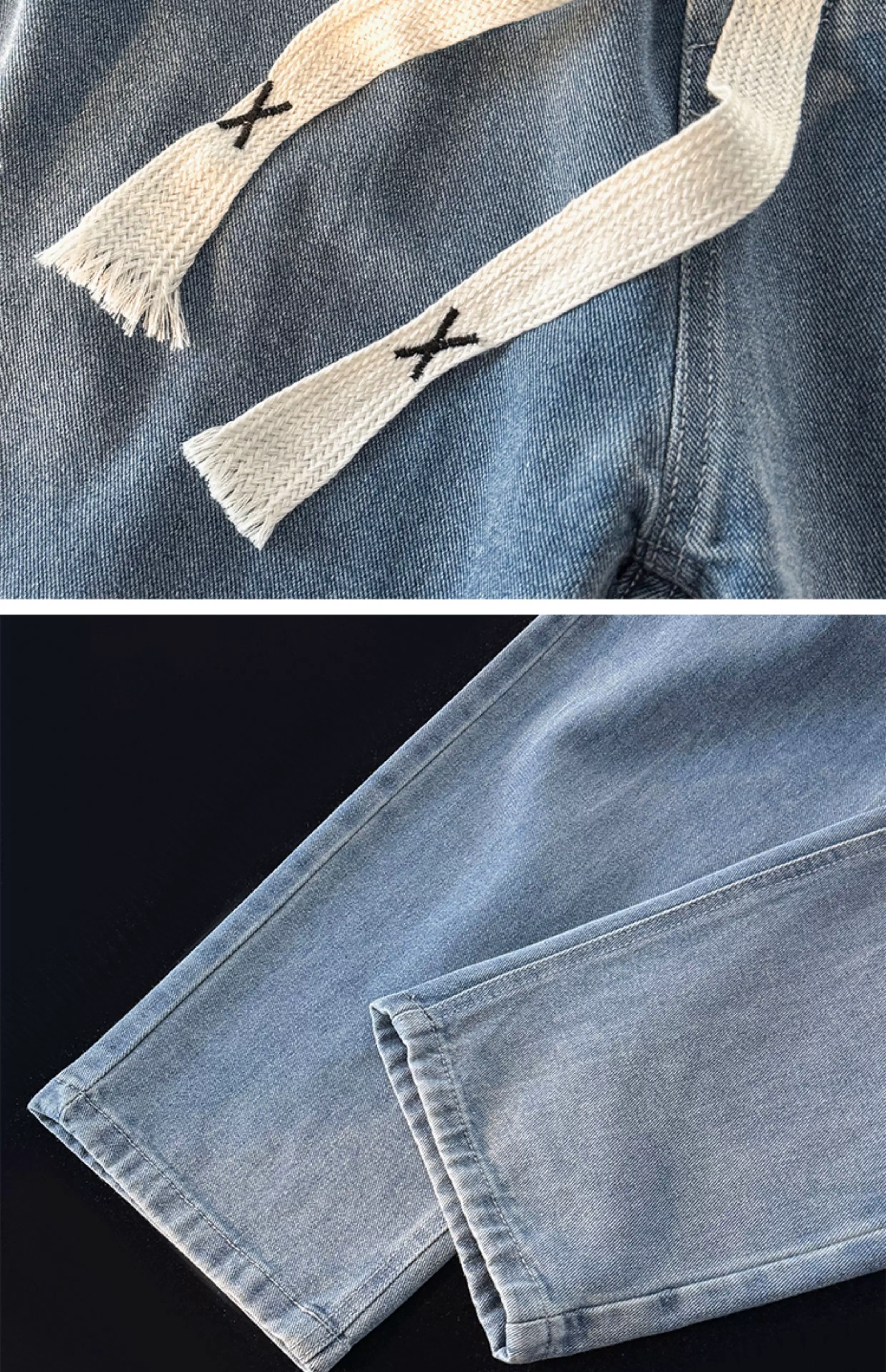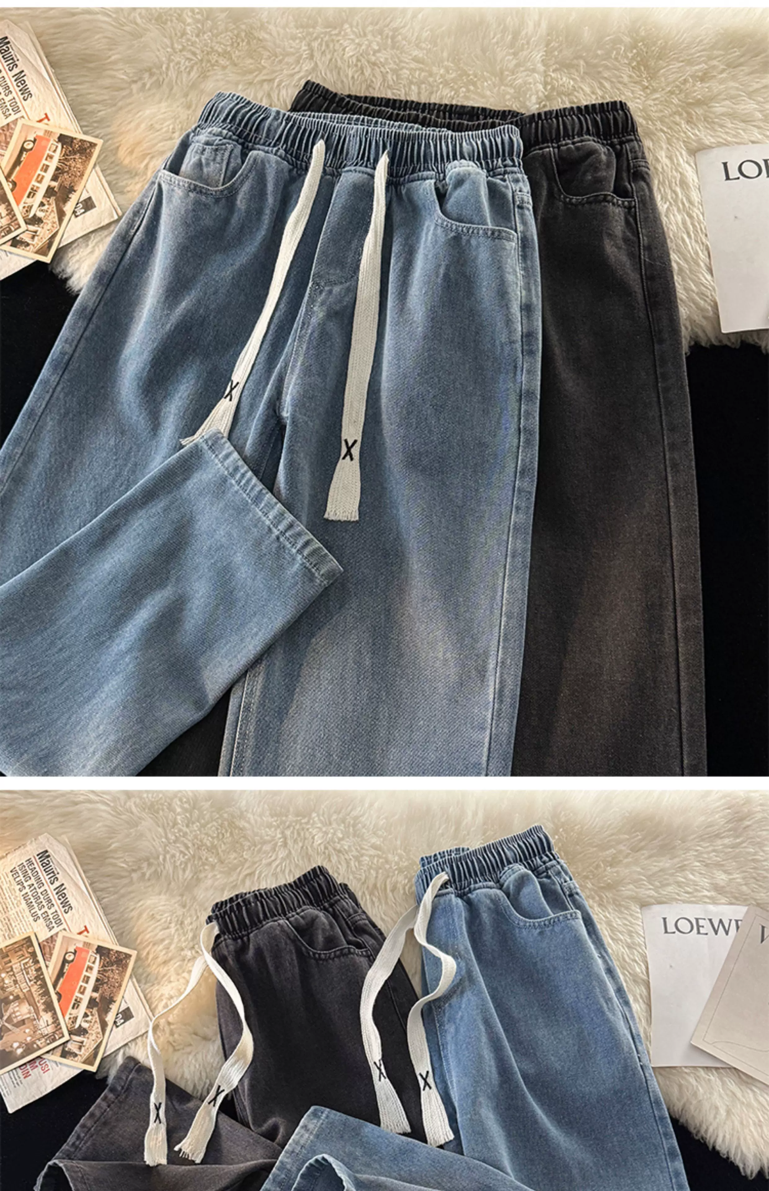 Quần jean dây rút xuân thu cho nam, phong cách thời thượng, lưng thun, quần ống đứng, phong cách Nhật Bản và Mỹ, quần dài ống rộng dáng rộng.
