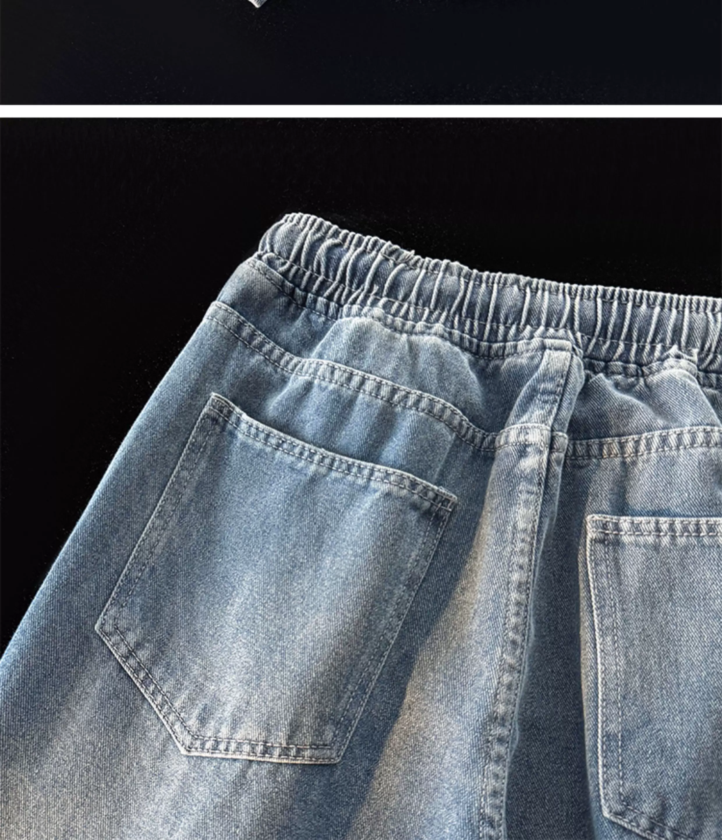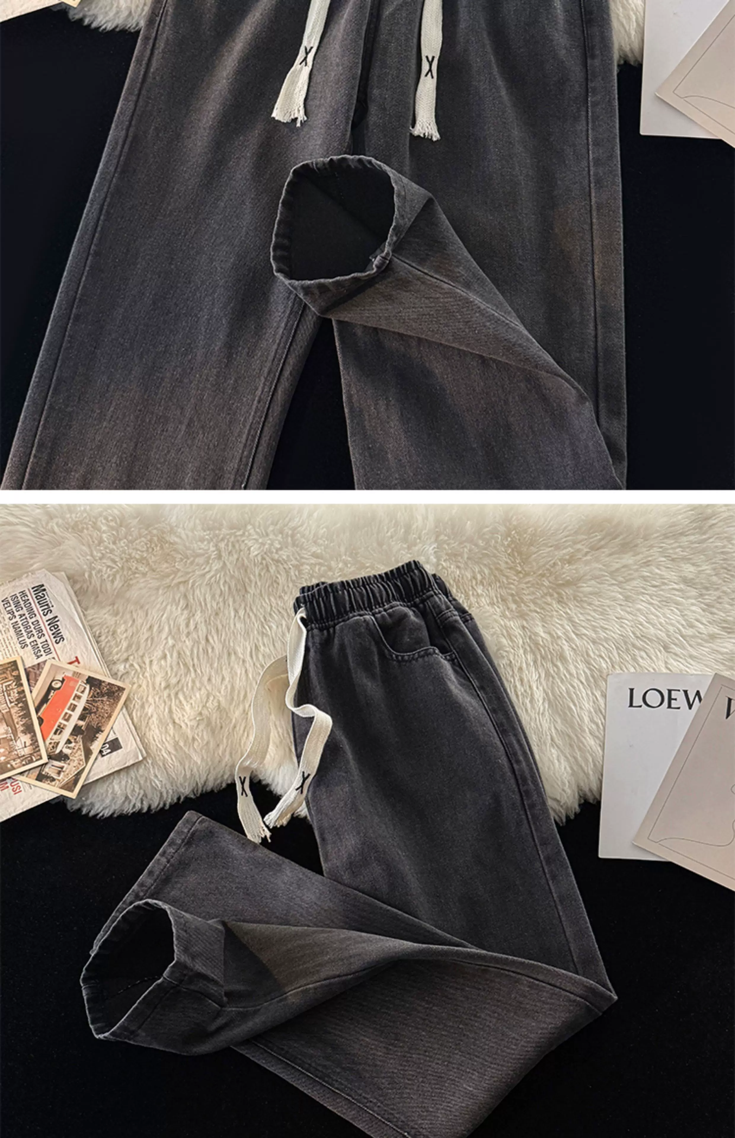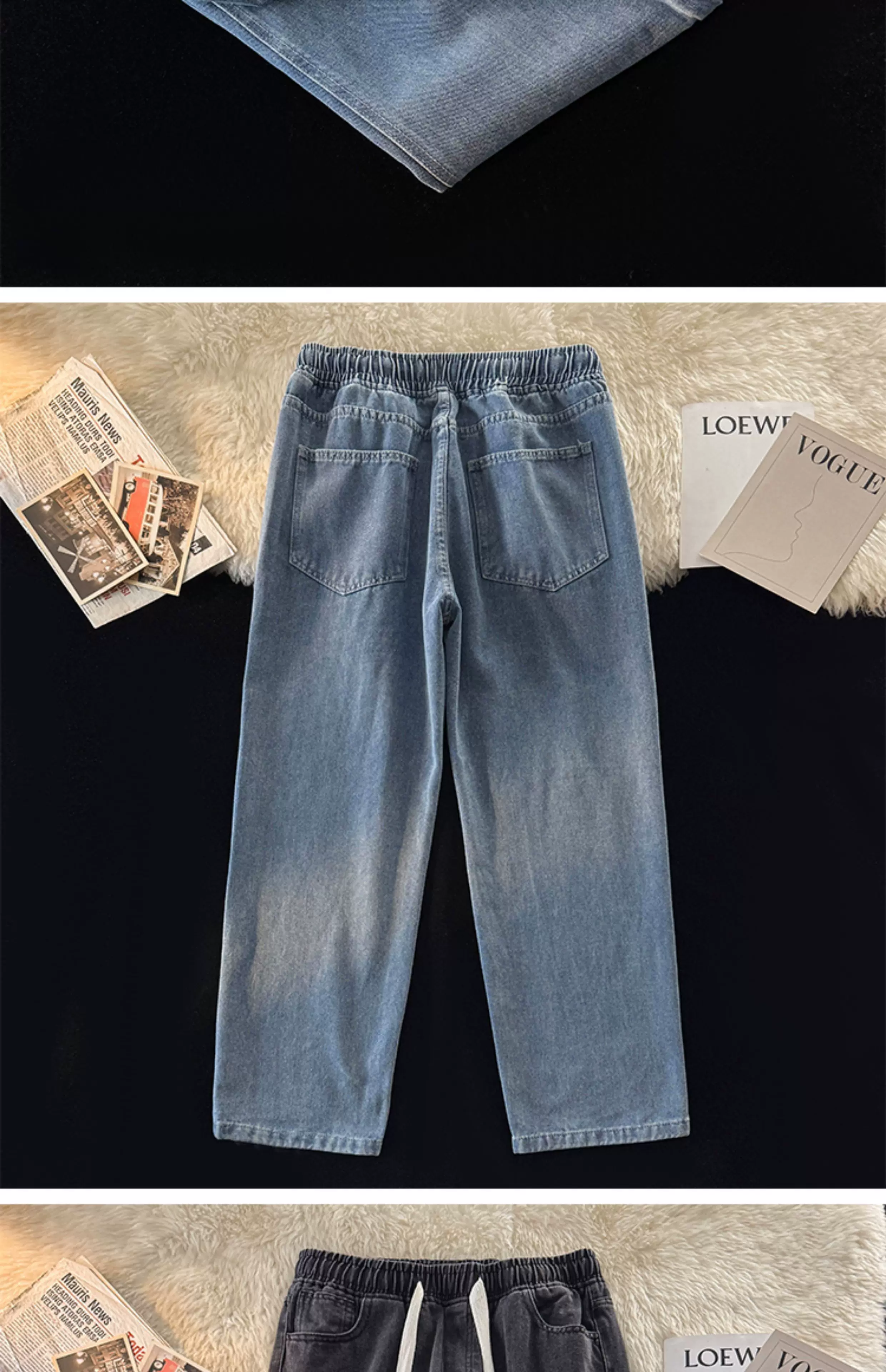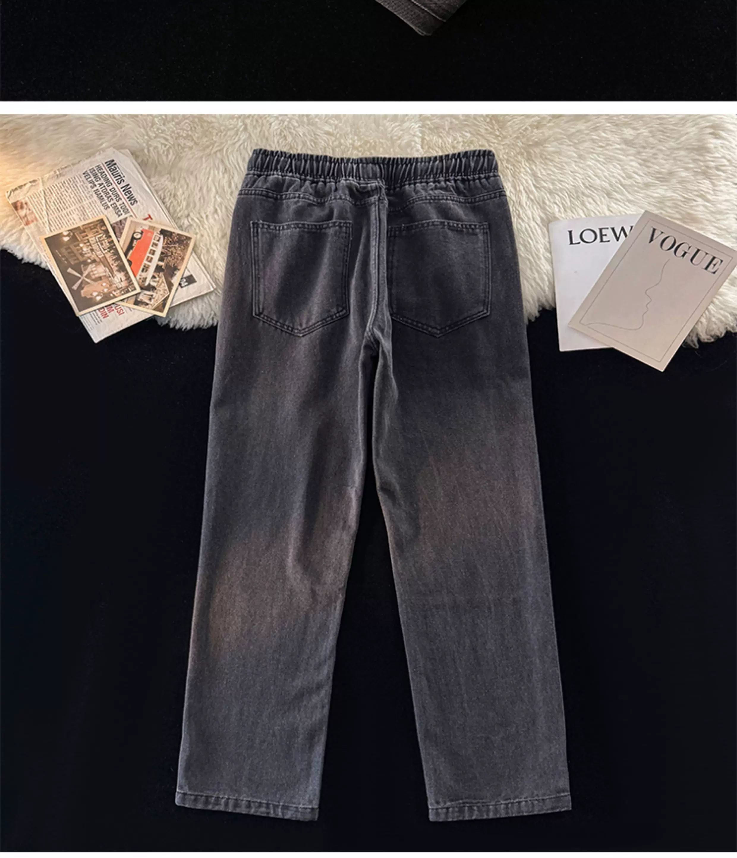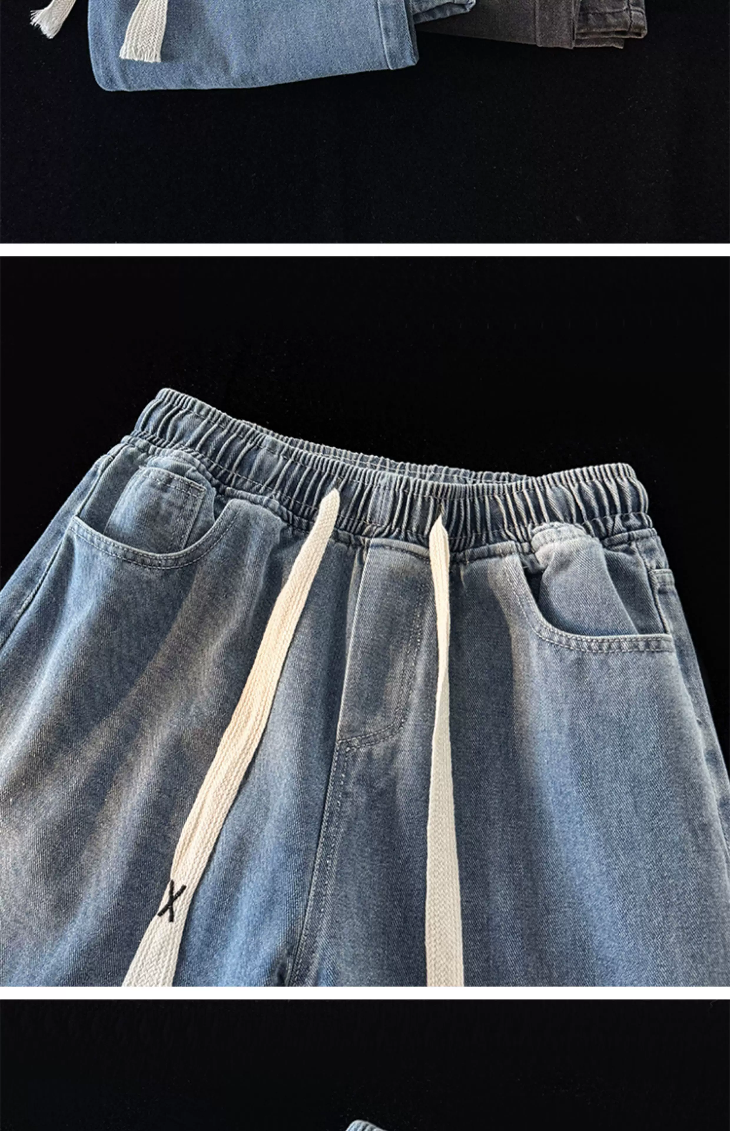 Quần jean dây rút xuân thu cho nam, phong cách thời thượng, lưng thun, quần ống đứng, phong cách Nhật Bản và Mỹ, quần dài ống rộng dáng rộng.