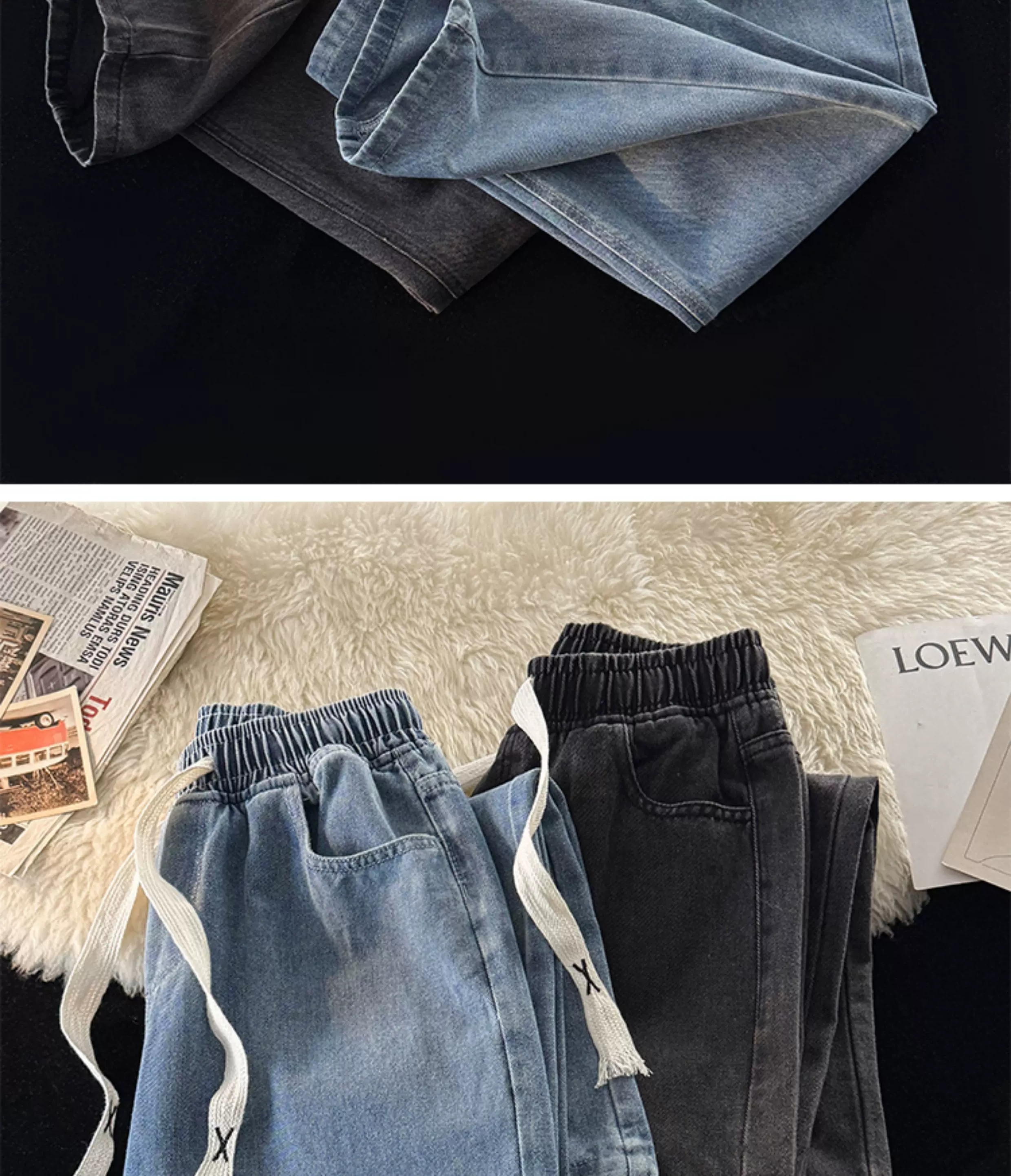- Quần jean dây rút xuân thu cho nam, phong cách thời thượng, lưng thun, quần ống đứng, phong cách Nhật Bản và Mỹ, quần dài ống rộng dáng rộng.