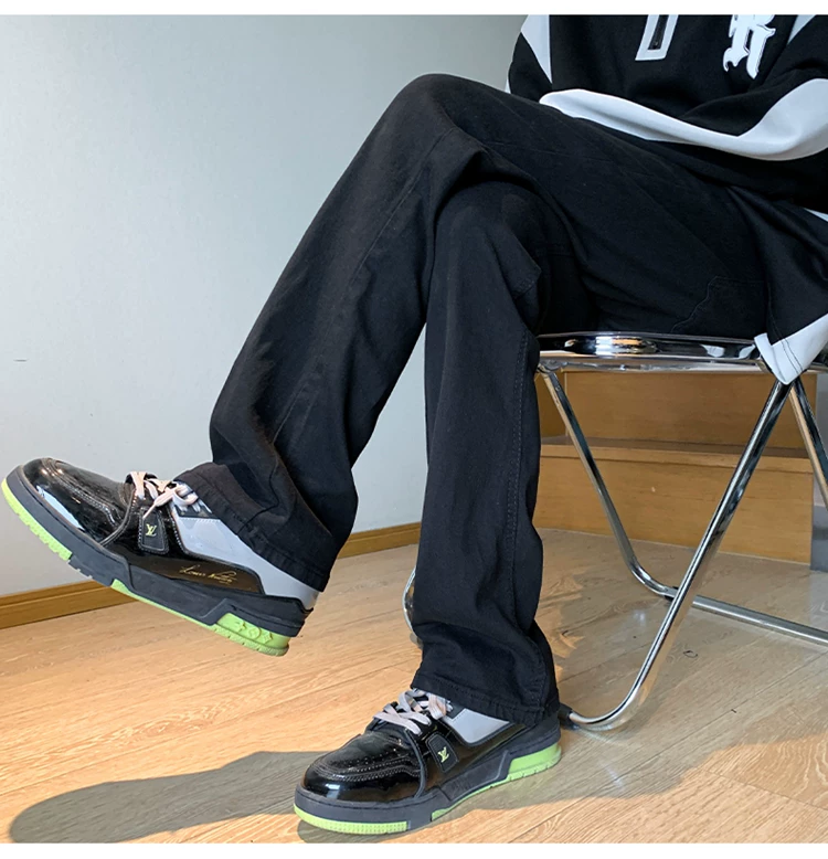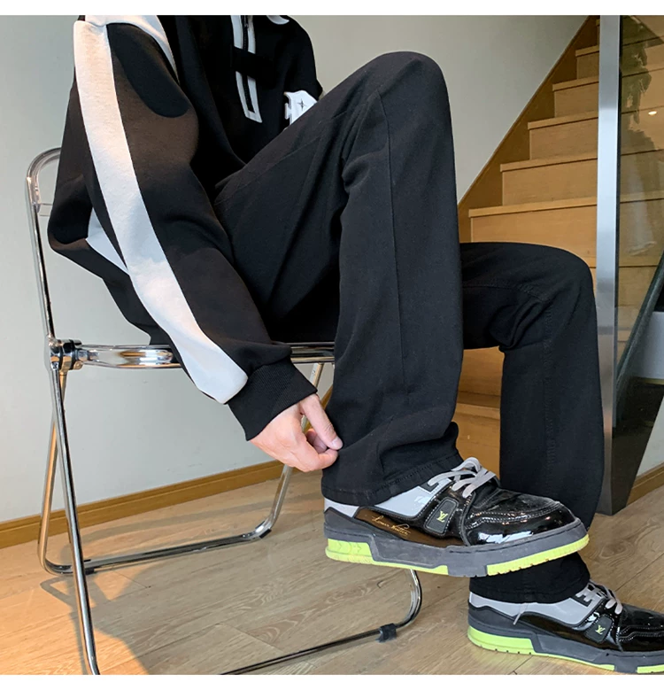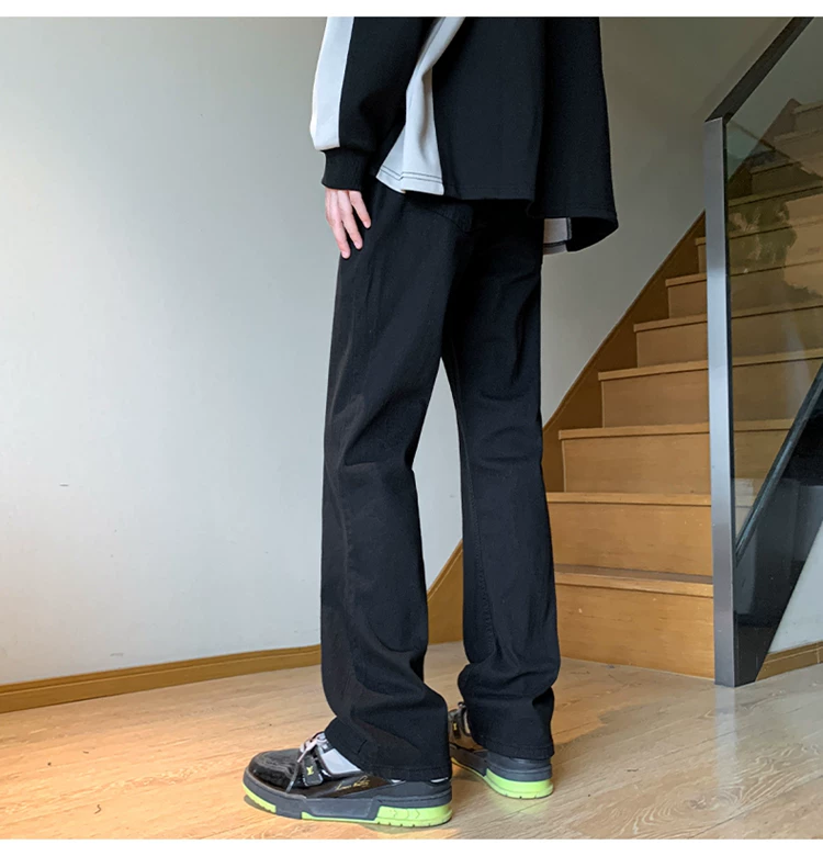 - Quần jean đen cho nam, kiểu dáng mỏng mùa hè, phong cách đường phố Mỹ, quần học sinh, dáng rộng, đa năng, thương hiệu thời thượng, quần dài ống thẳng.